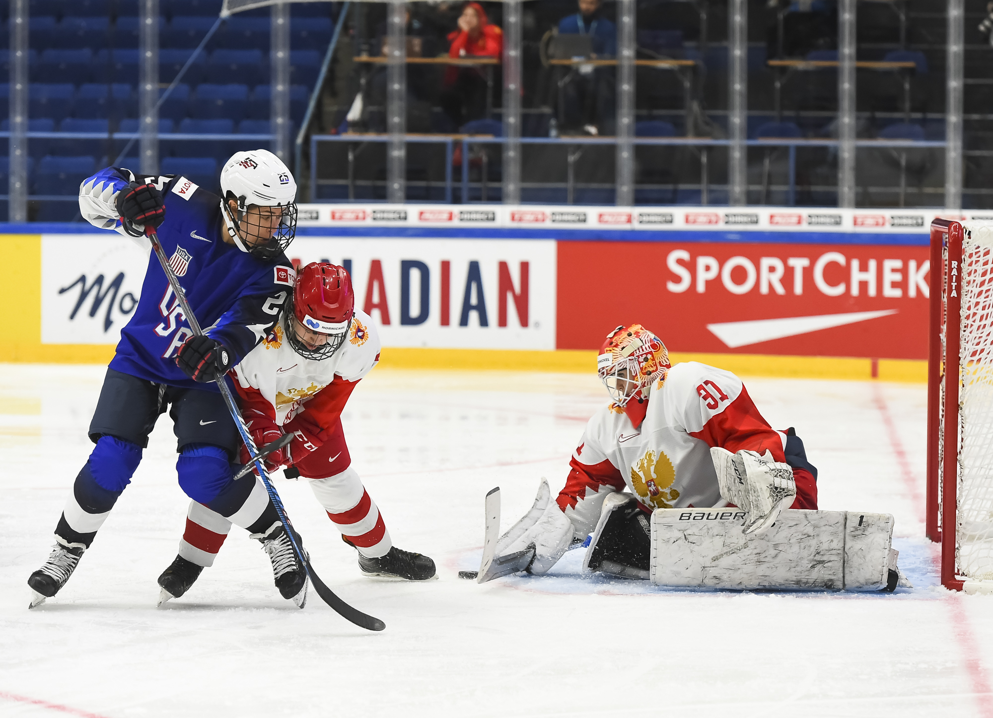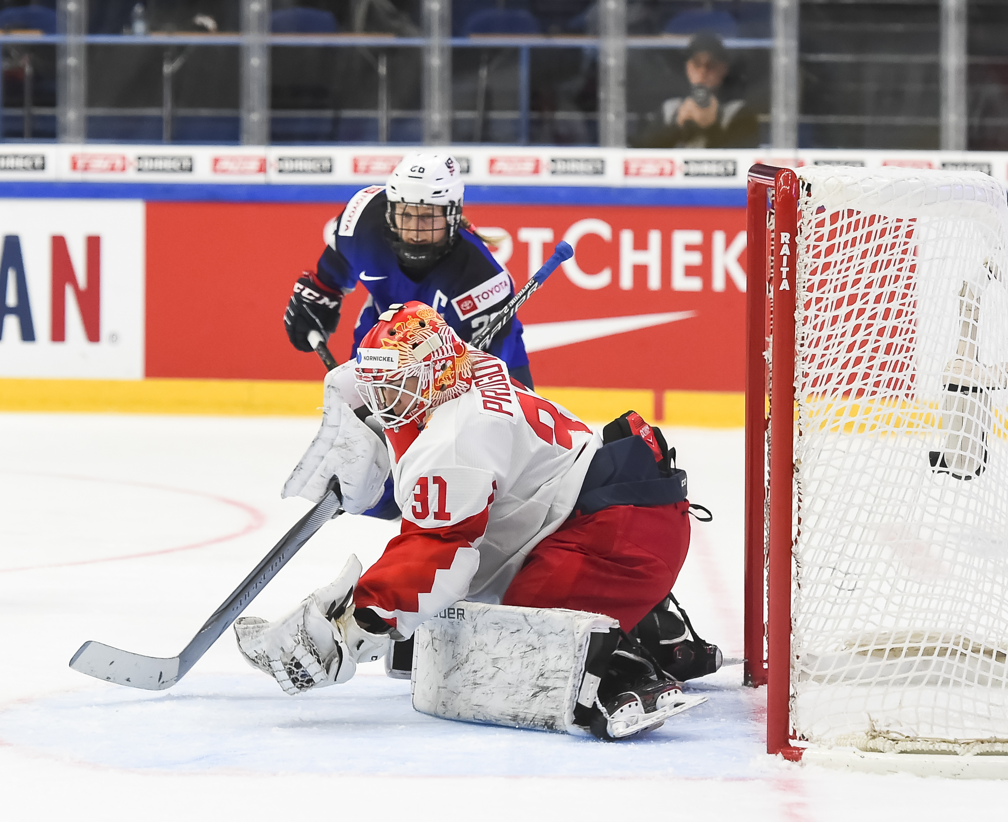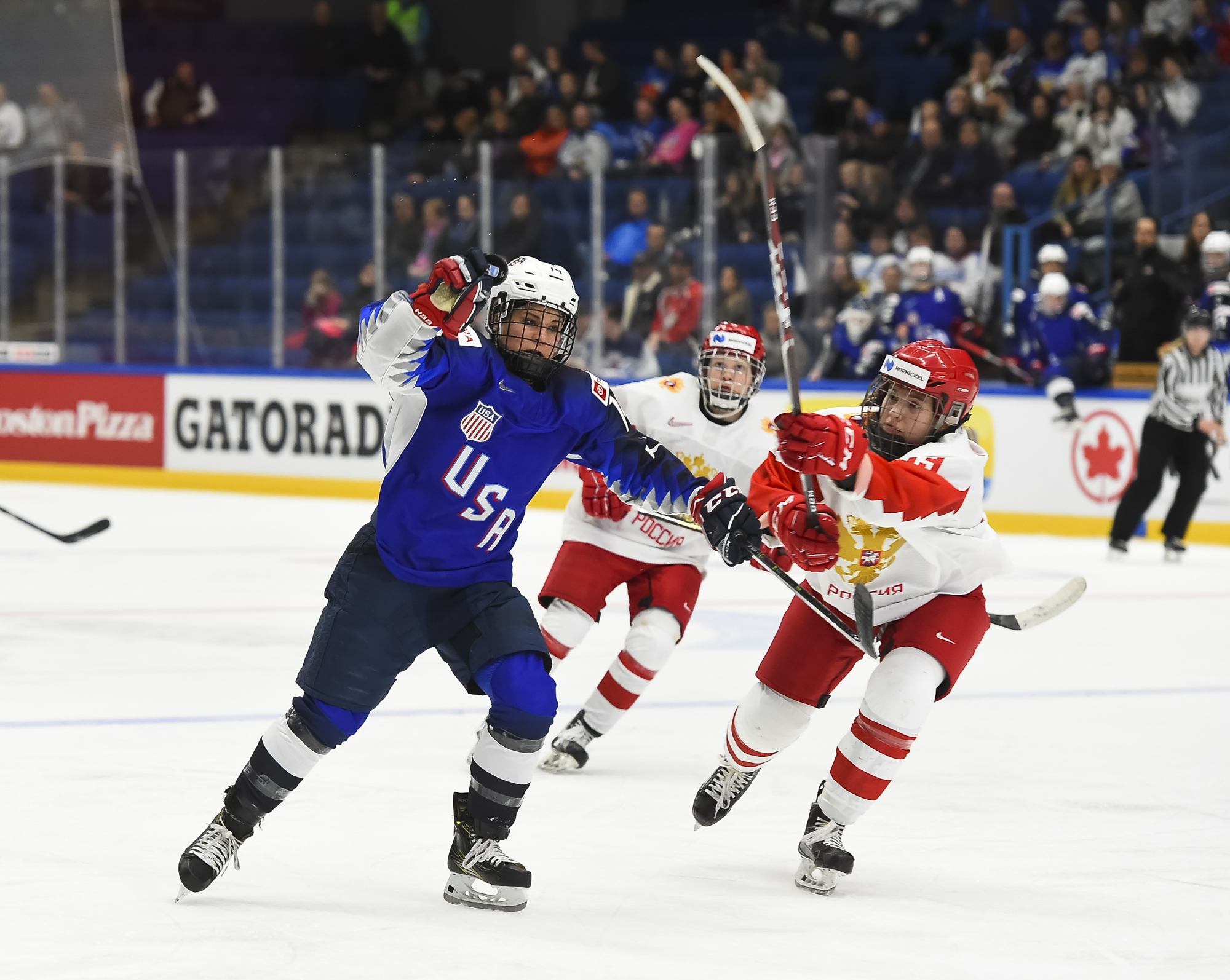 At 3:45 of the second period, Pankowski made it 2-0 when she muscled her way from the corner to the slot and scored with a floater through traffic. Knight dipsy-doodled past Russian defender Liana Ganeyeva and then centered it to a pinching Pfalzer for the 3-0 marker at 6:18.