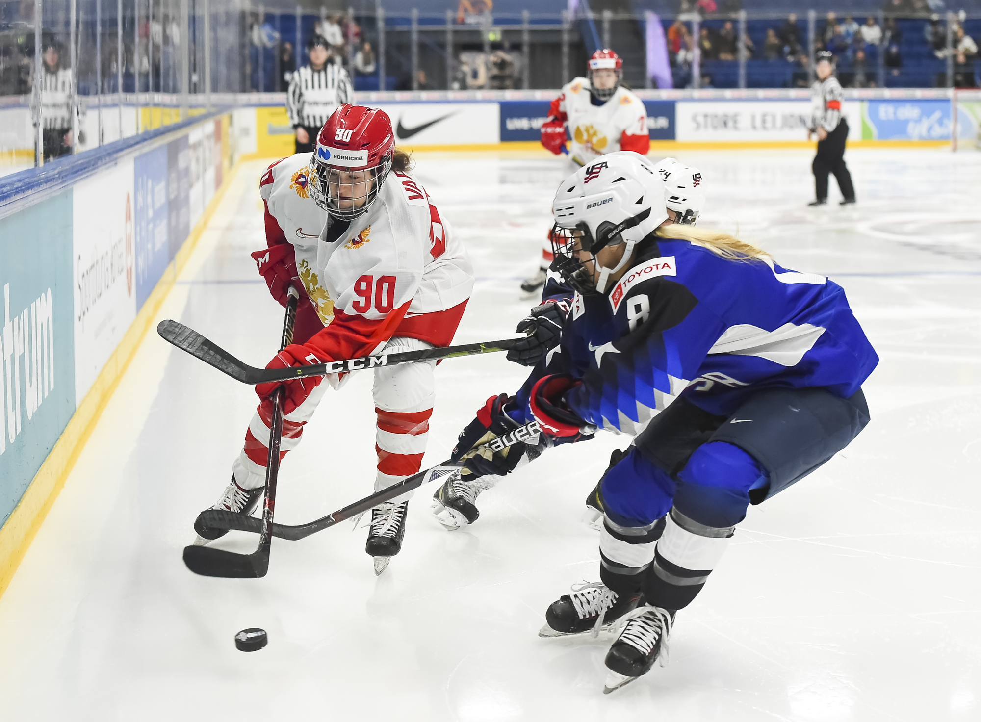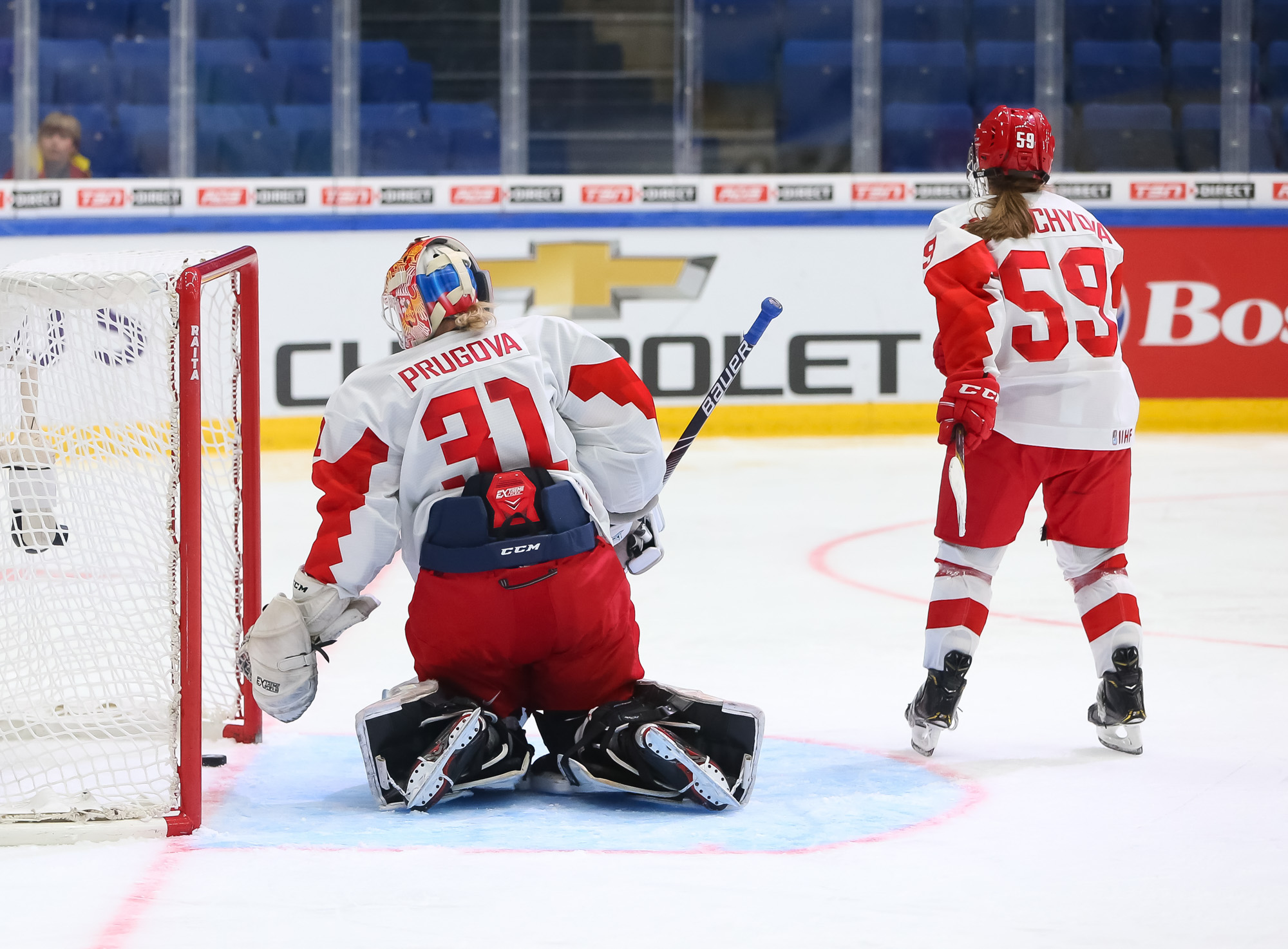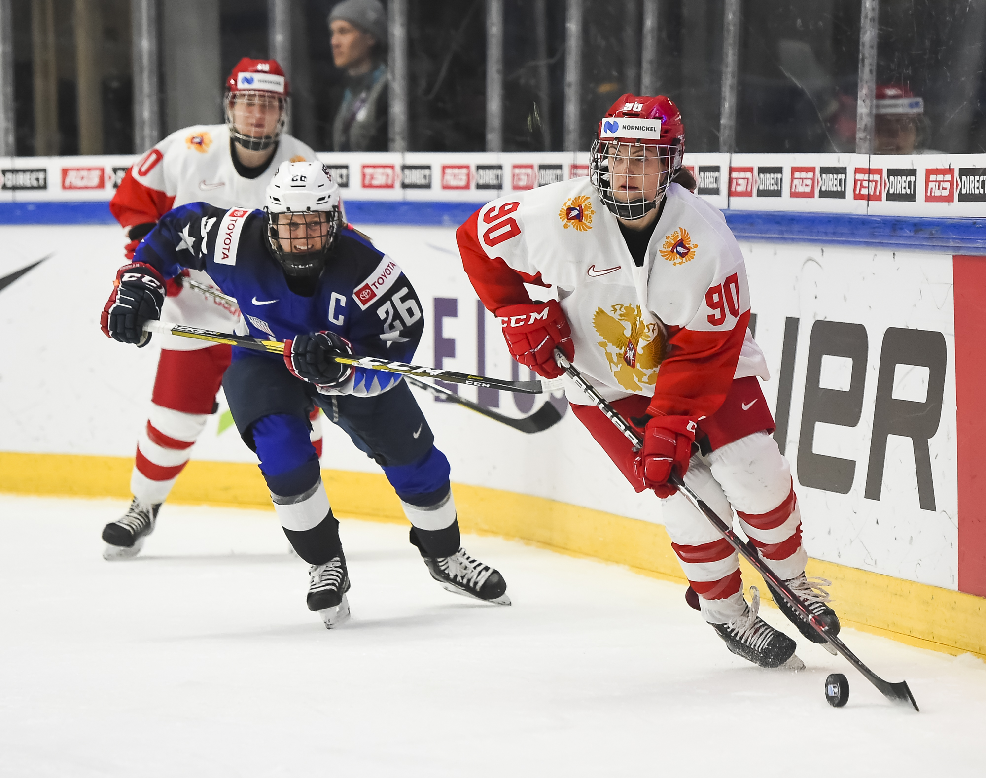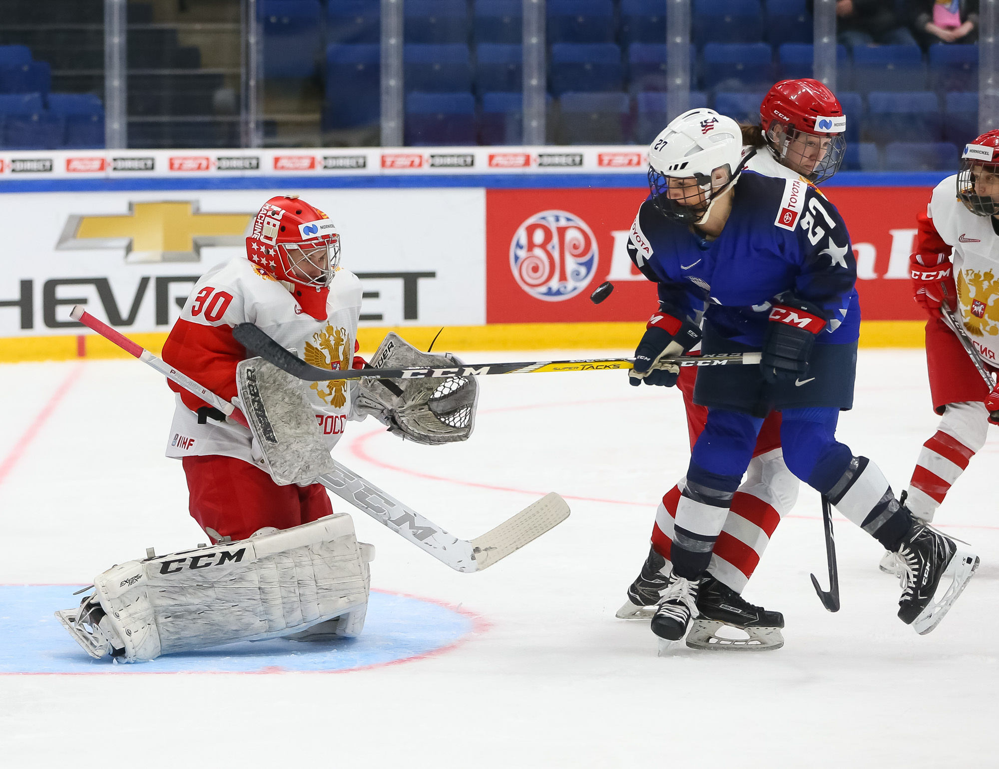 At 3:45 of the second period, Pankowski made it 2-0 when she muscled her way from the corner to the slot and scored with a floater through traffic. Knight dipsy-doodled past Russian defender Liana Ganeyeva and then centered it to a pinching Pfalzer for the 3-0 marker at 6:18.