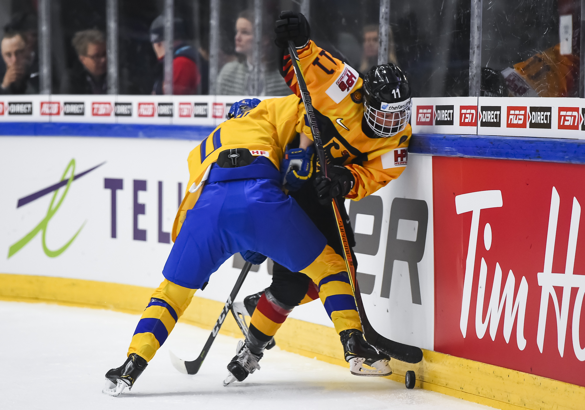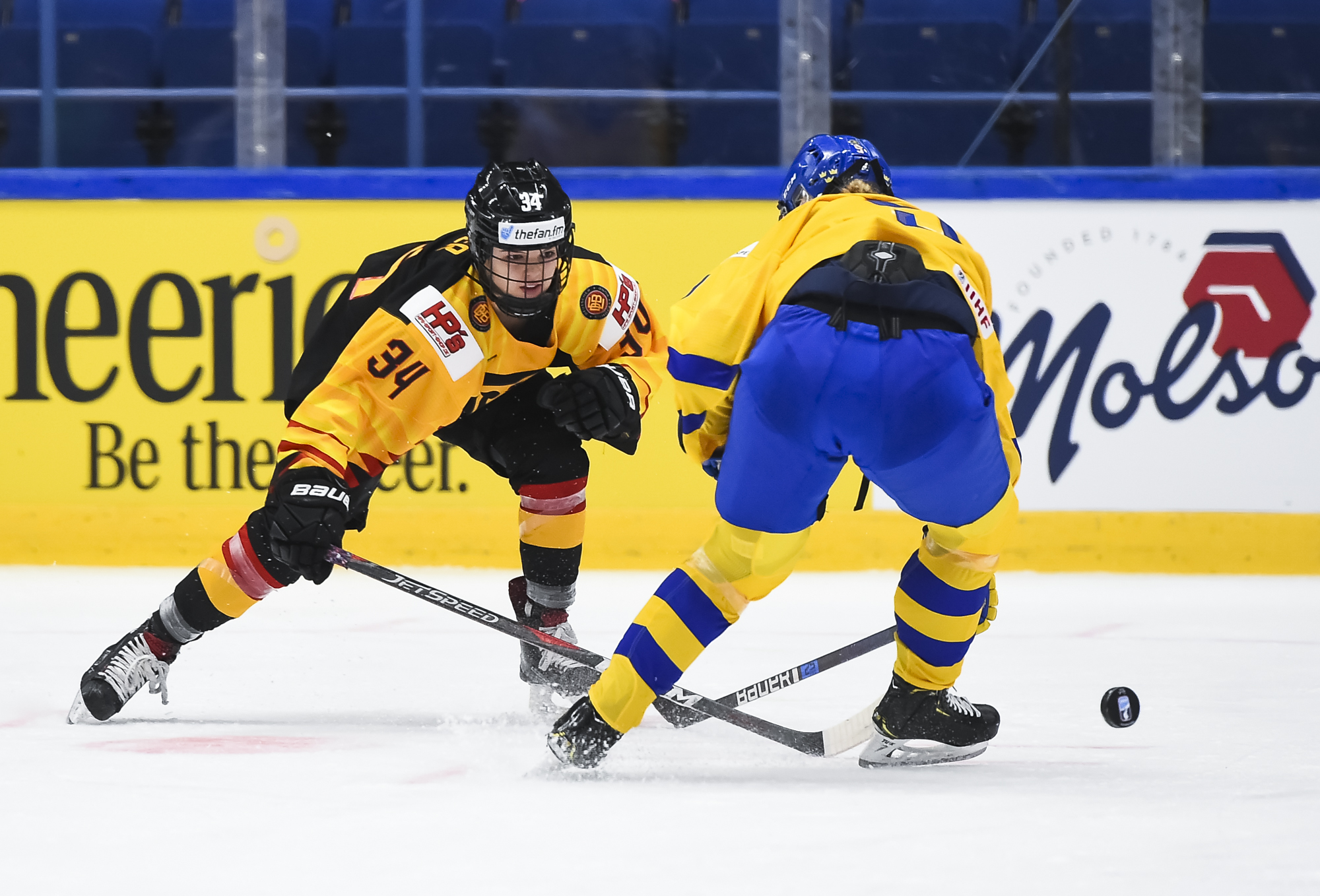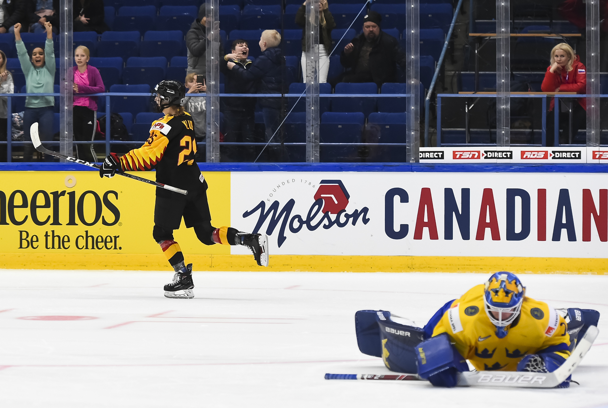 In a fast-paced, physical, but scoreless first period, Harss was the busier of the two goalies, as Sweden outshot rookie German head coach Christian Kunast's team 15-6.