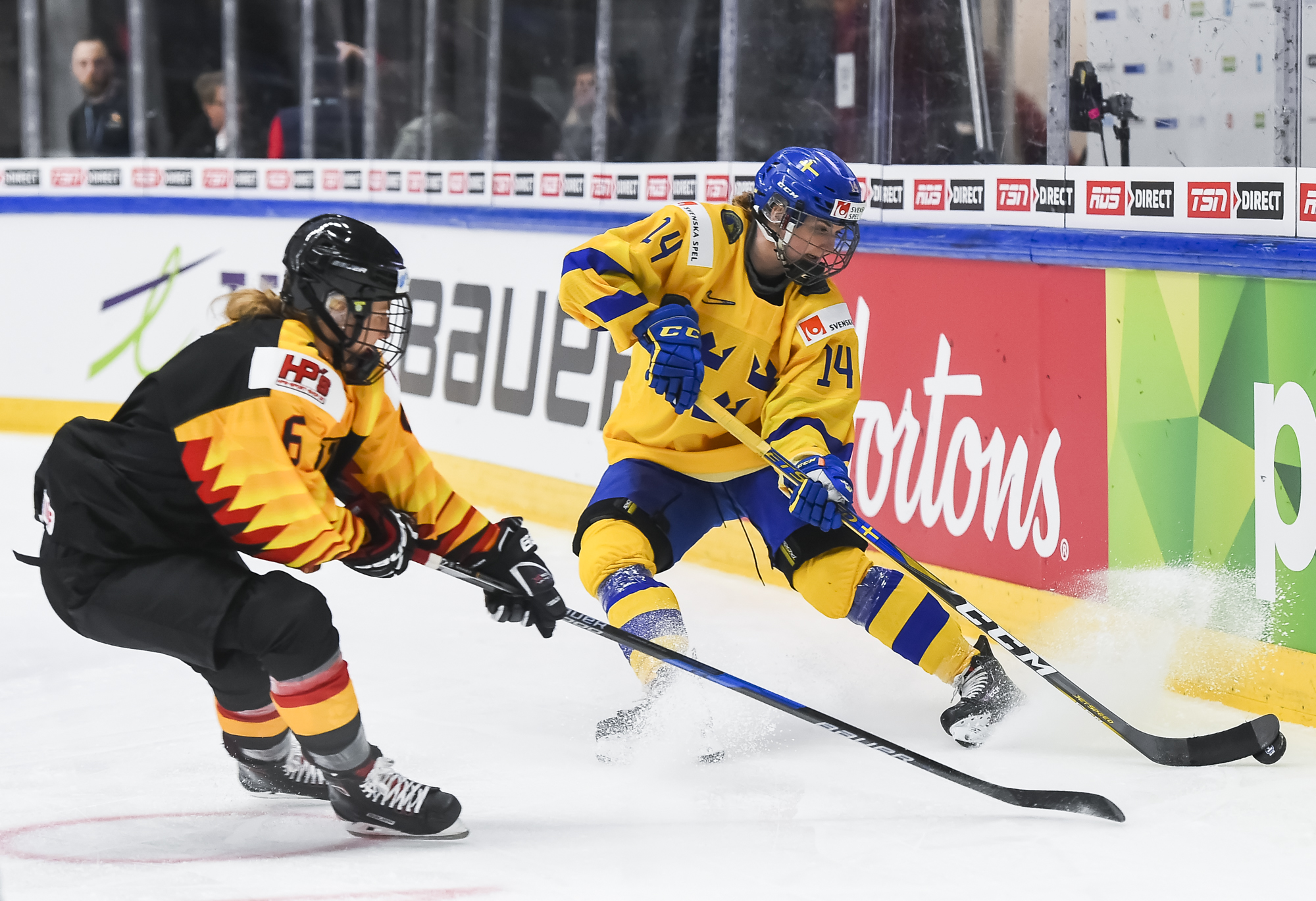 It was a battle between two experienced netminders. Sweden’s Sara Grahn, who made her Women’s Worlds debut in 2007, played her 28th career game at this tournament at age 30. Harss, who first saw the ice at the 2005 tournament in Sweden, got into her 19th Women’s Worlds game at age 31. Harss was named Germany's Player of the Game.