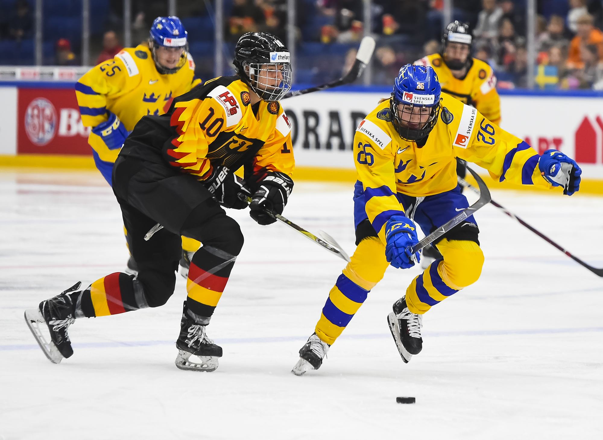With the teams at 3-on-3 in overtime after a penalty-laden third period, Sweden got an extra skater for a 4-on-3 power play when Germany's Marie Delarbre was sent off for tripping. Despite prolonged possession in the German end, there was nothing doing. Swedish captain Emma Nordin came calling in the dying seconds of the five-minute extra frame, but Harss shut the door.