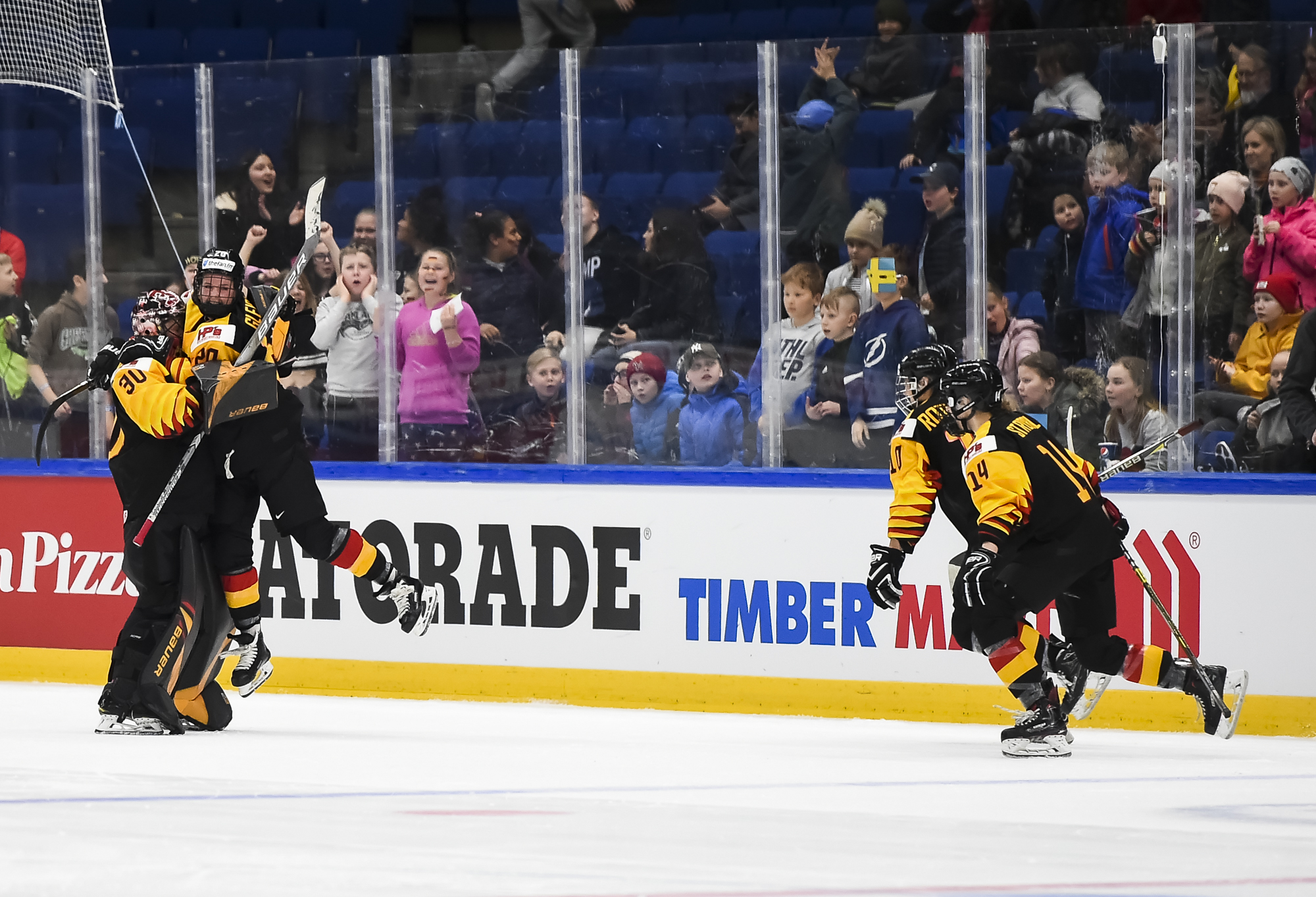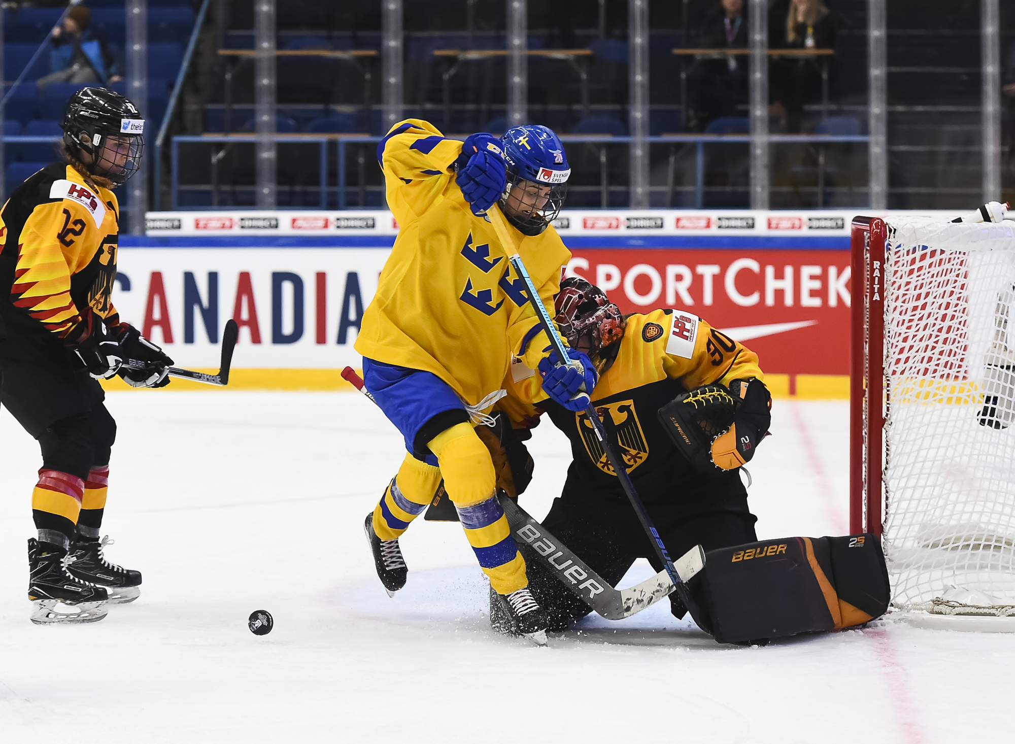 Kluge deked to the forehand and slid the puck home. It was sweet redemption after the second-time Women's Worlds participant, who plays for the NCAA's St. Cloud State University, took three minor penalties earlier in the game."I thought we played well," said German goalie Jennifer Harss, who was stellar as shots favoured Sweden 41-15. "The Swedes were pretty good. They came out strong and pressured us a lot, but I thought we stuck to our game plan for 60 minutes -- well, 65 minutes -- and in the end it paid off."