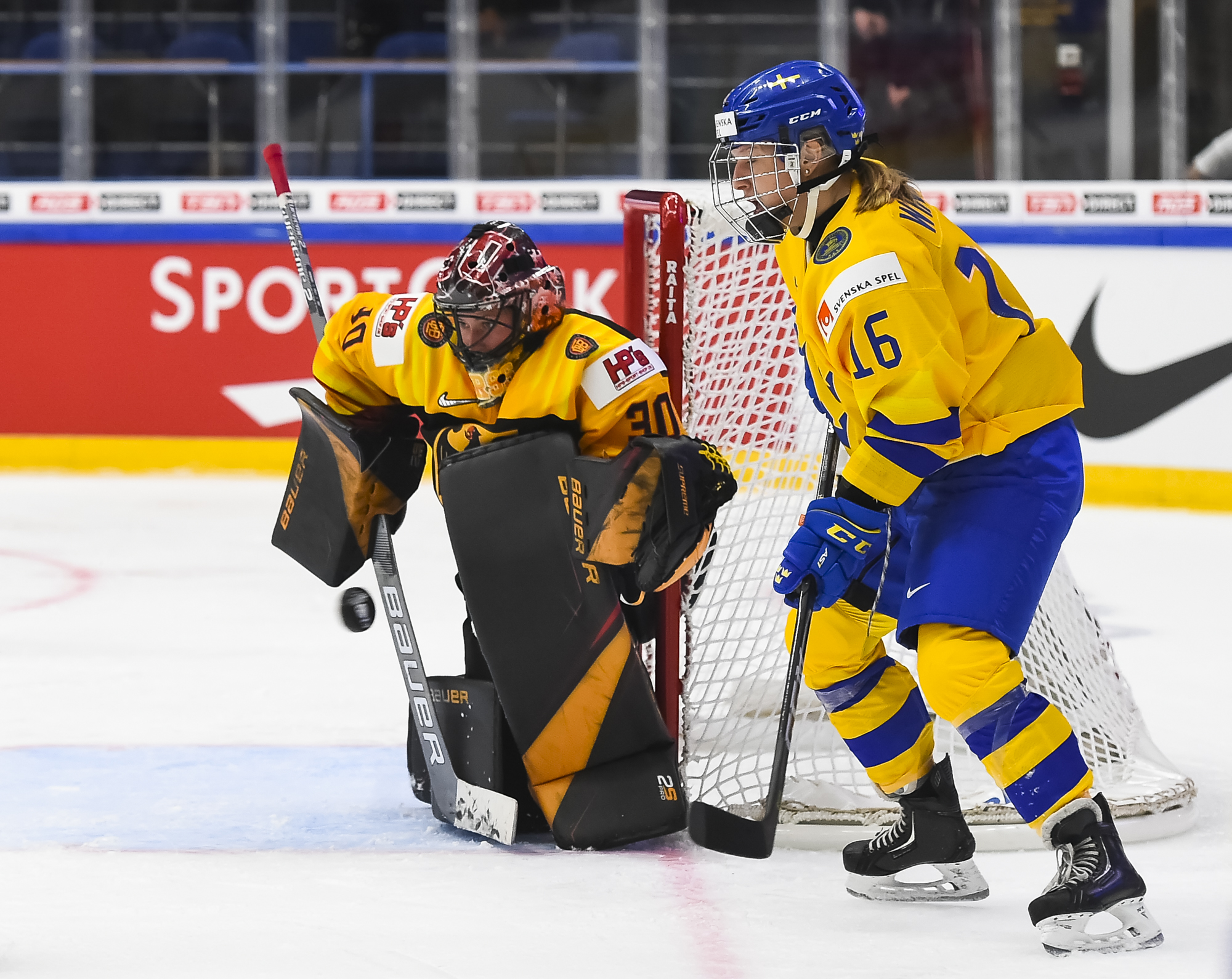At 9:53 of the second period, Engstrom opened the scoring for Sweden. Harss foiled Hanna Olsson after she split the German defence and Melinda Olsson (no relation) on the first rebound, but she couldn’t stop Engstrom from banging in the second rebound. It was the first career Women's Worlds goal for the 30-year-old Leksands IF blueliner, whose lone previous IIHF experience was at the 2014 Olympics.