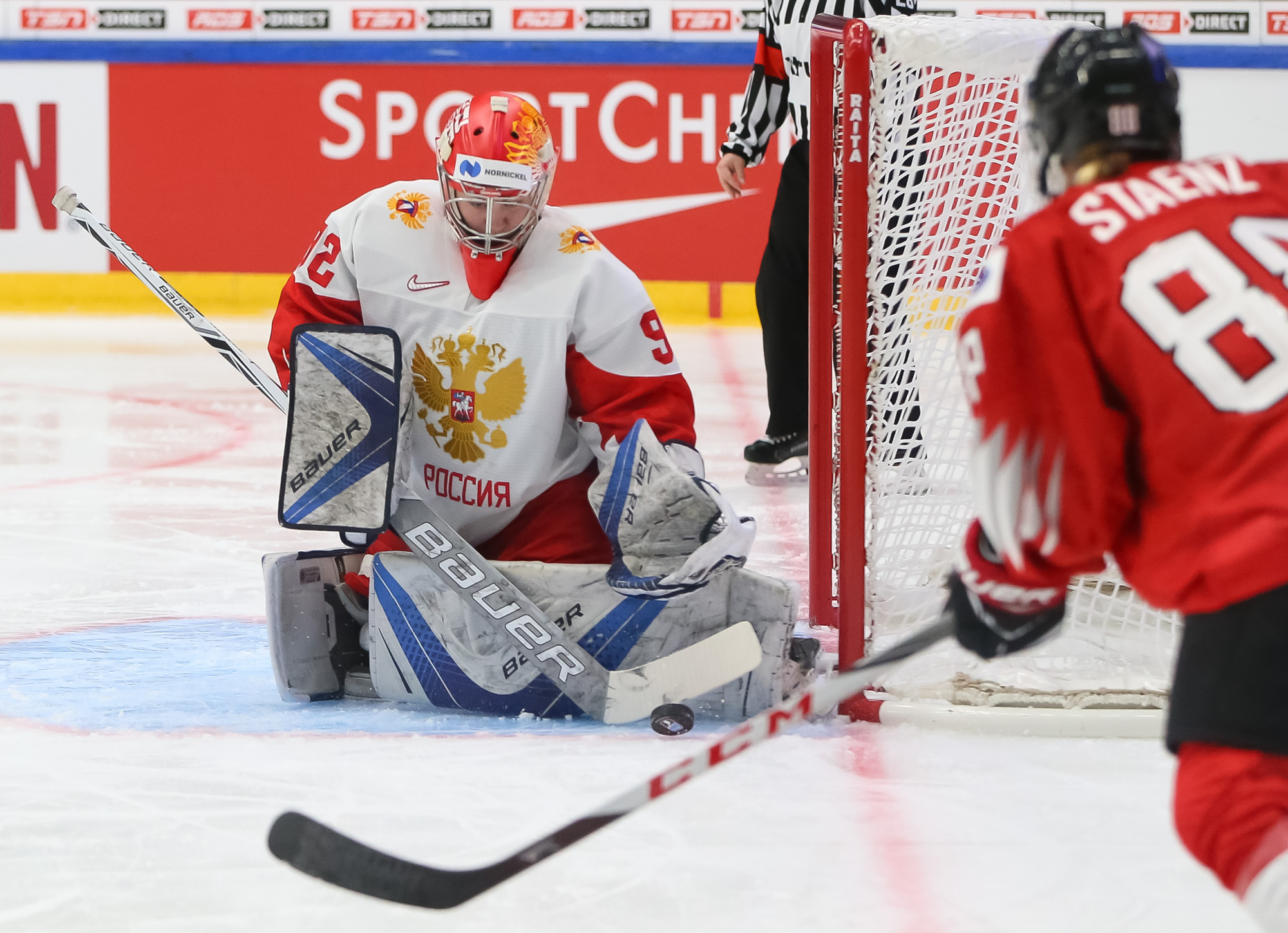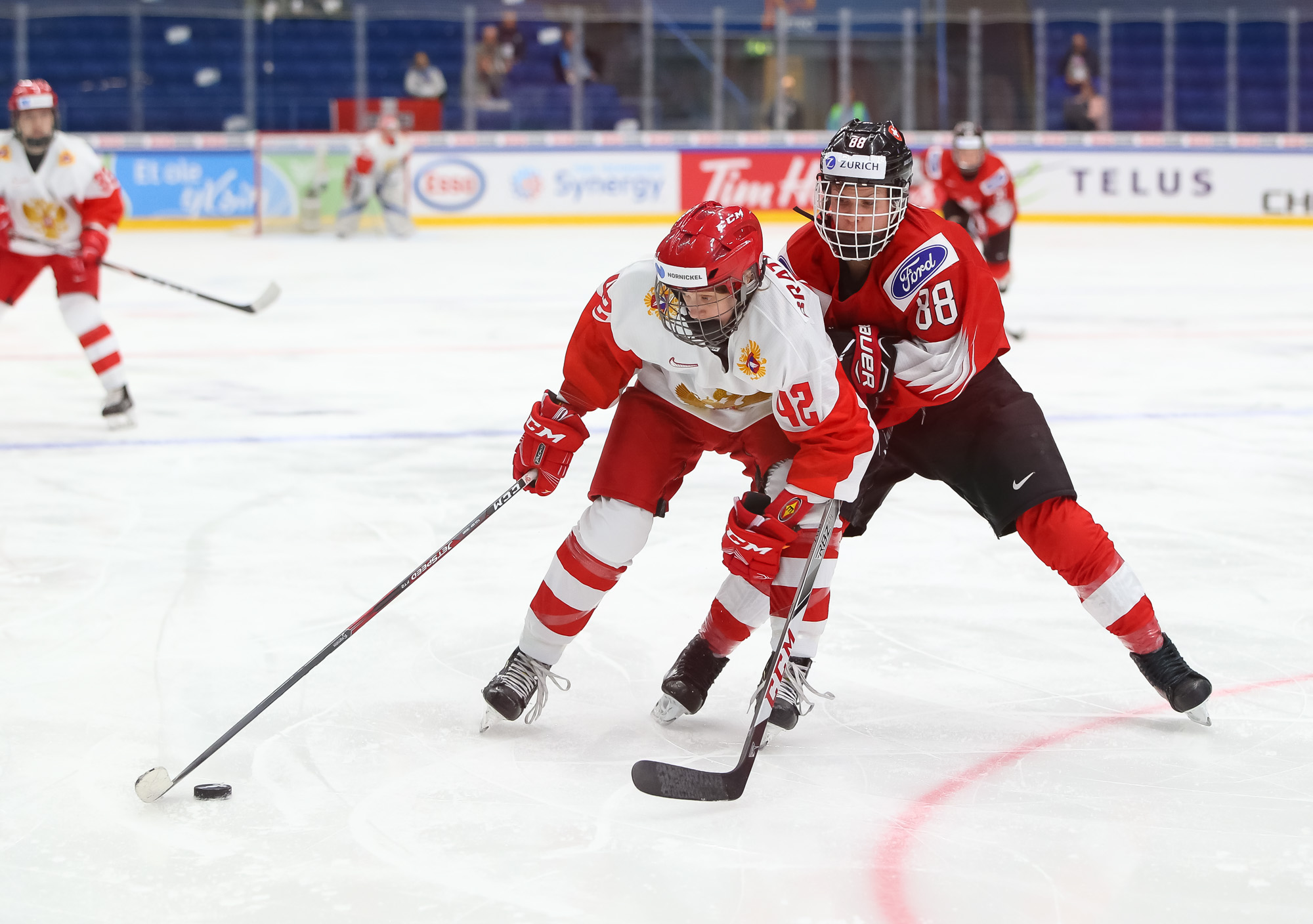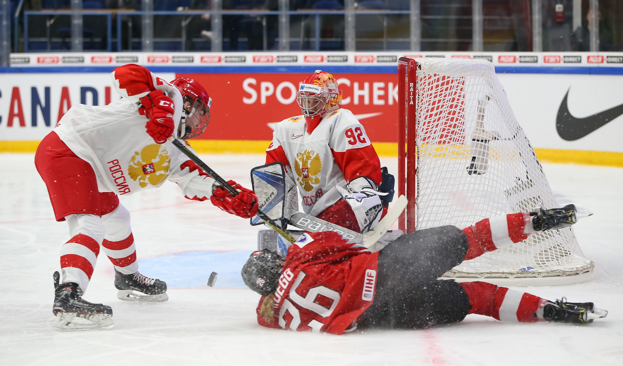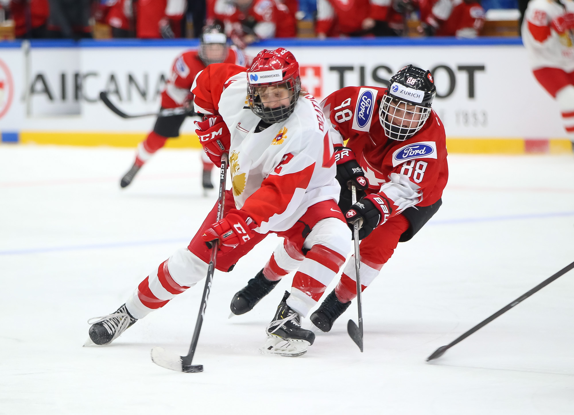 Led by Sosina, the human shots machine who shone in the Russian playoffs with Agidel Ufa, the Russians went after Switzerland hard in the first period. Yet poor discipline early on hampered coach Alexei Chistyakov’s team, which took four first-period minors.