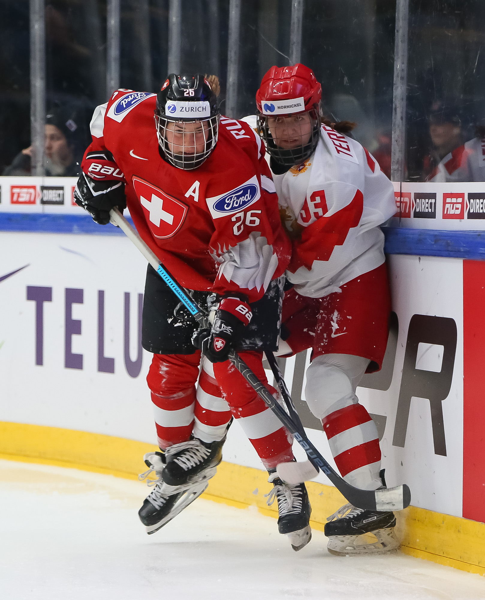 Switzerland’s Lara Stalder sat out her second straight game due to injury. The 24-year-old Linkoping HC star has 23 career Women’s Worlds points and eight Olympic points, and her offensive contributions are missed.