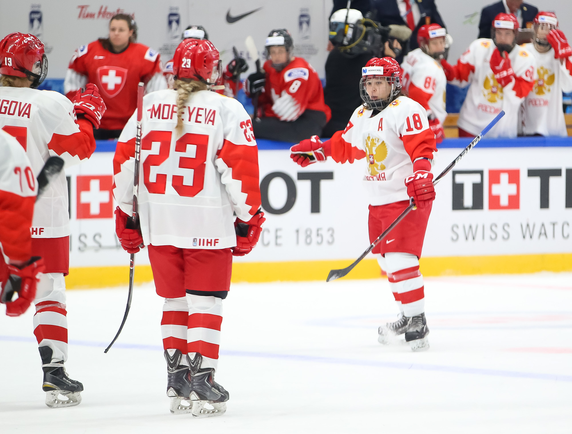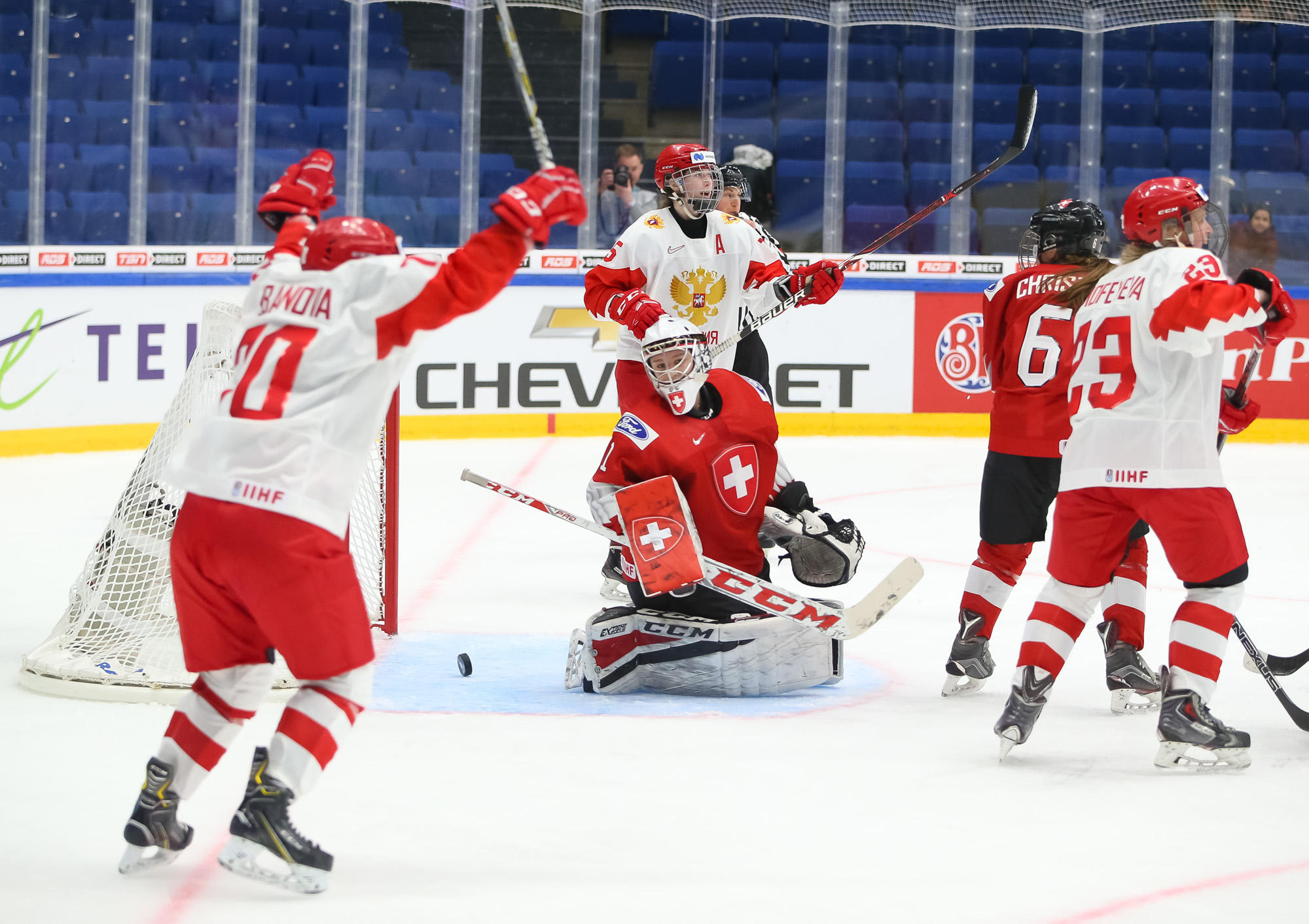 Anna Timofeyeva also scored for Russia. Evelina Raselli had the lone goal for Switzerland.