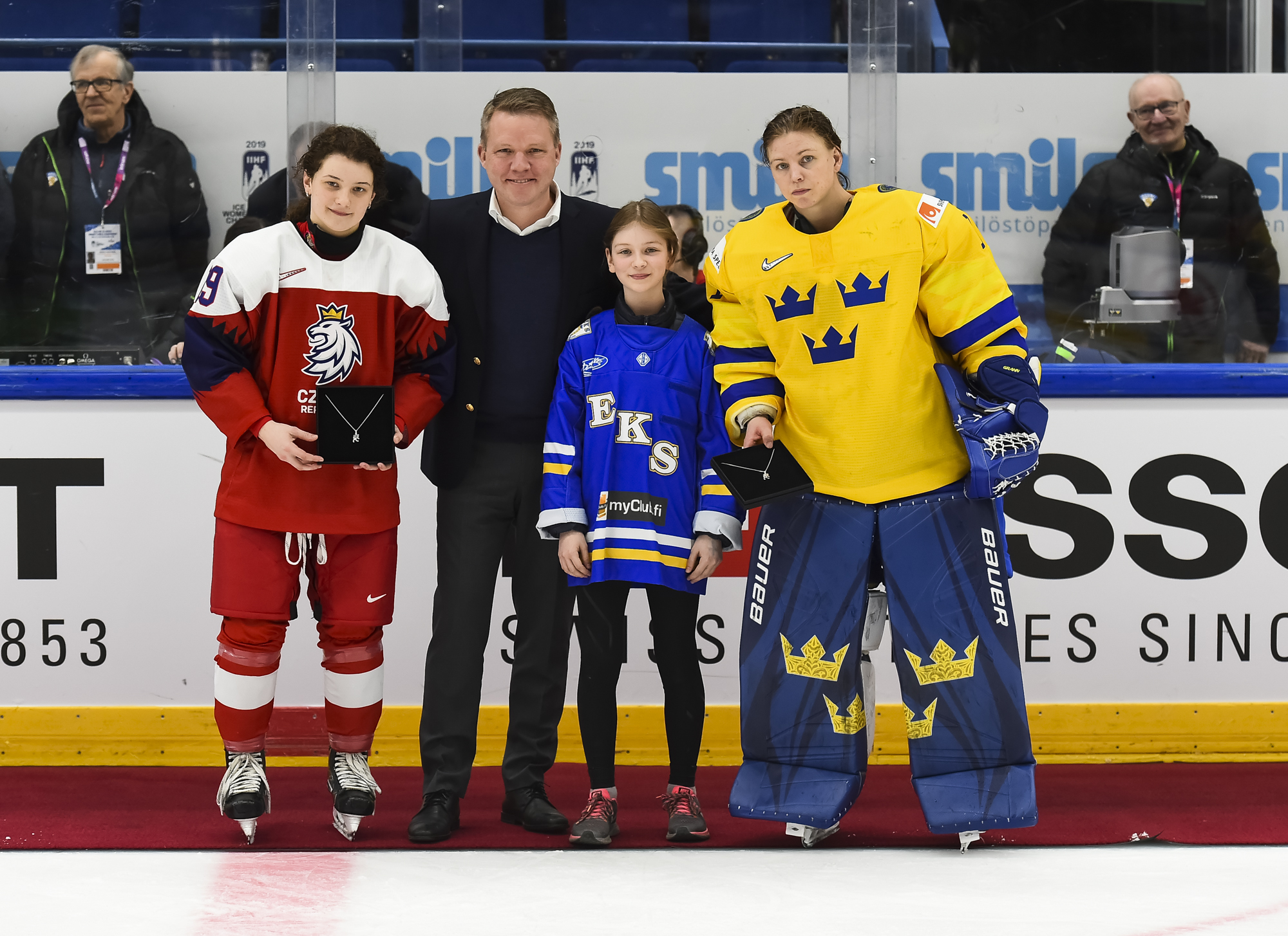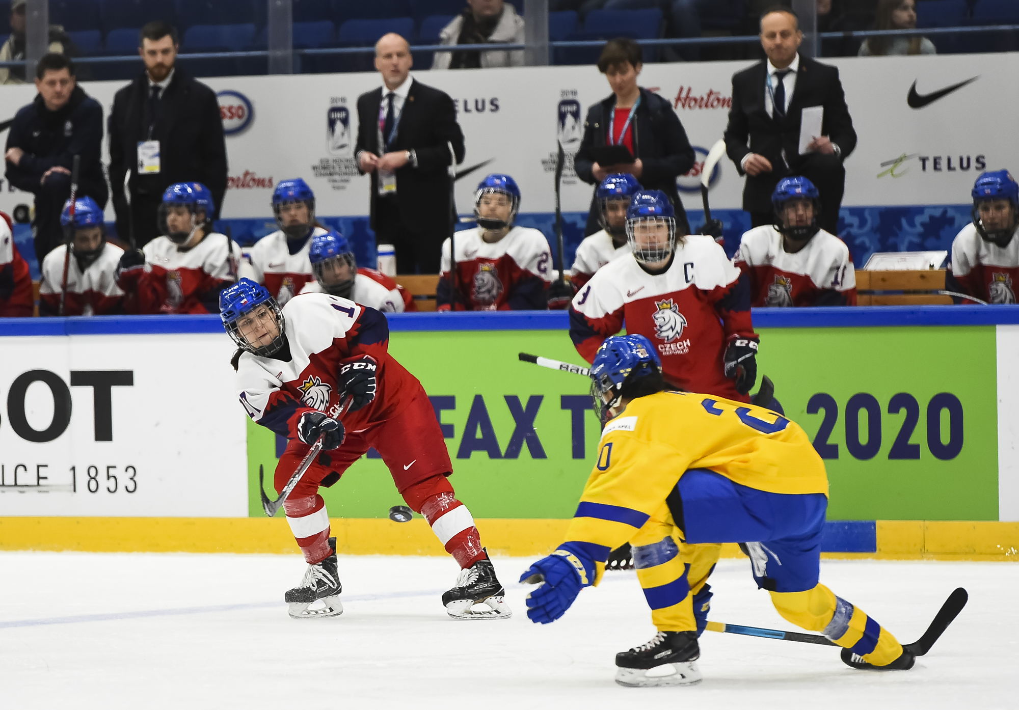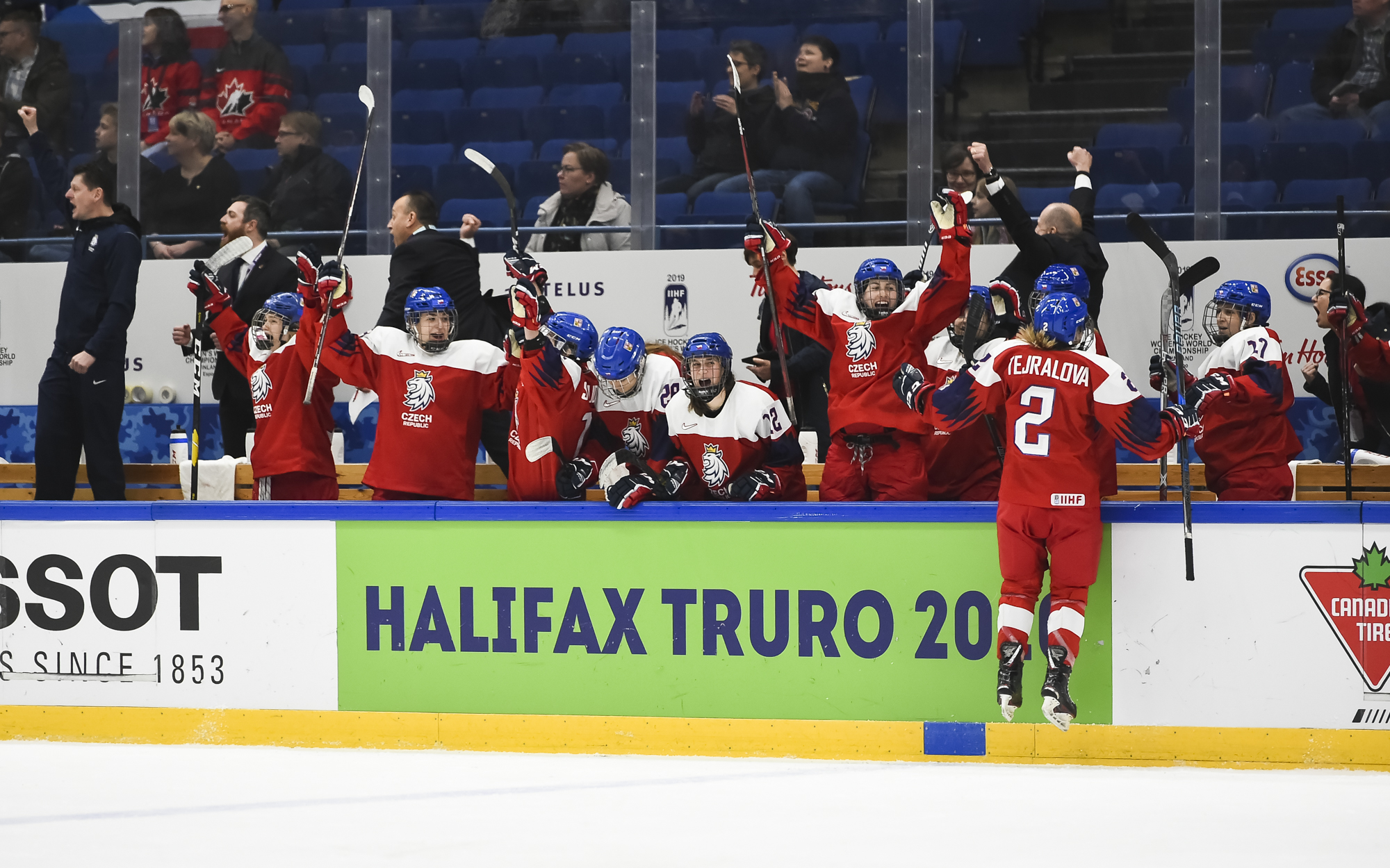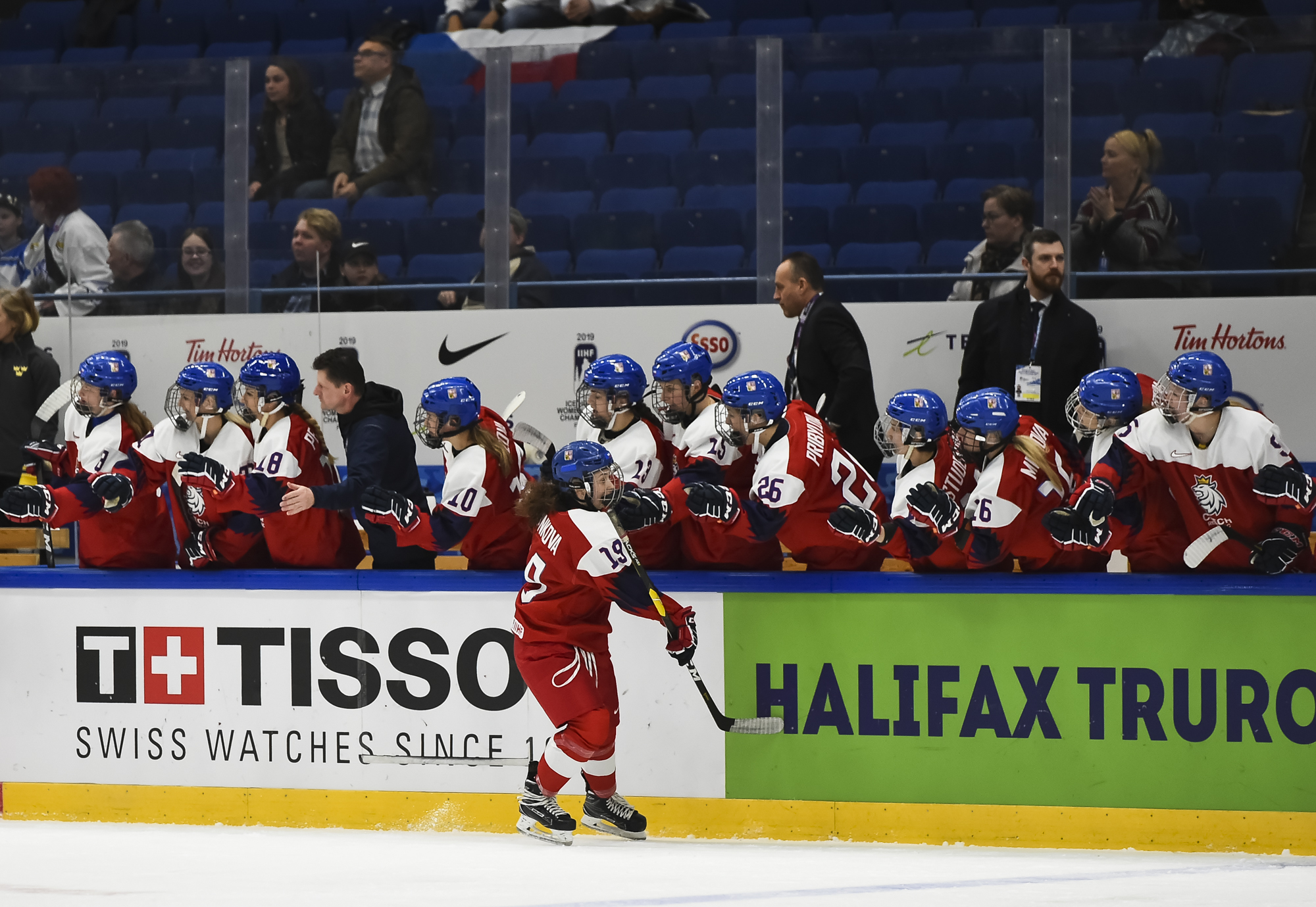 Klara Hymlarova got a goal and an assist for the Czechs, and Natalie Mlynkova, Vendula Pribylova, Denisa Krizova and Tereza Vanisova added singles. Katerina Mrazova chipped in two assists.