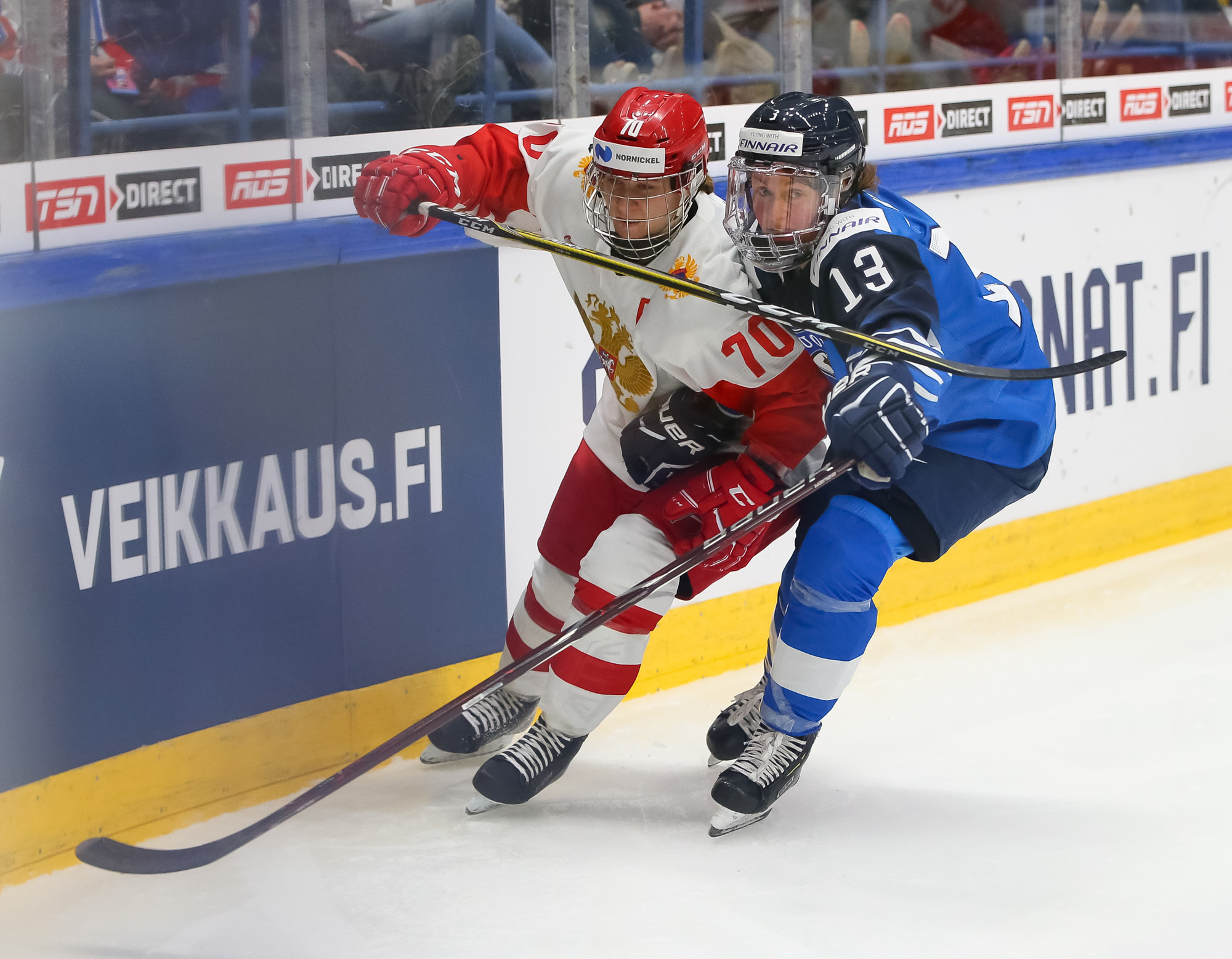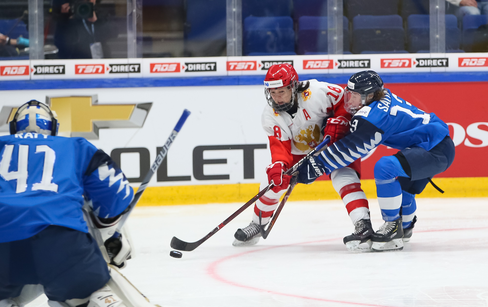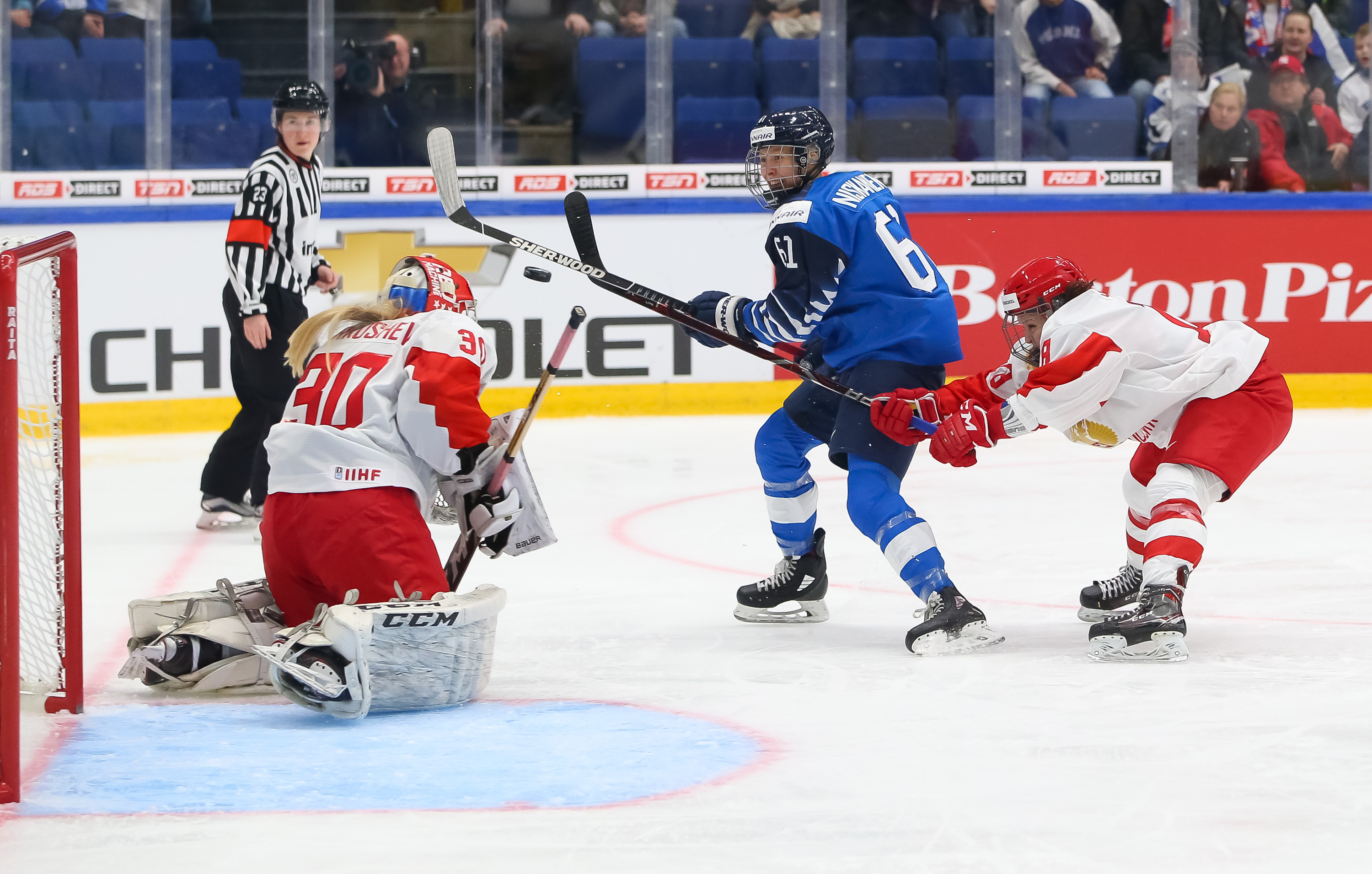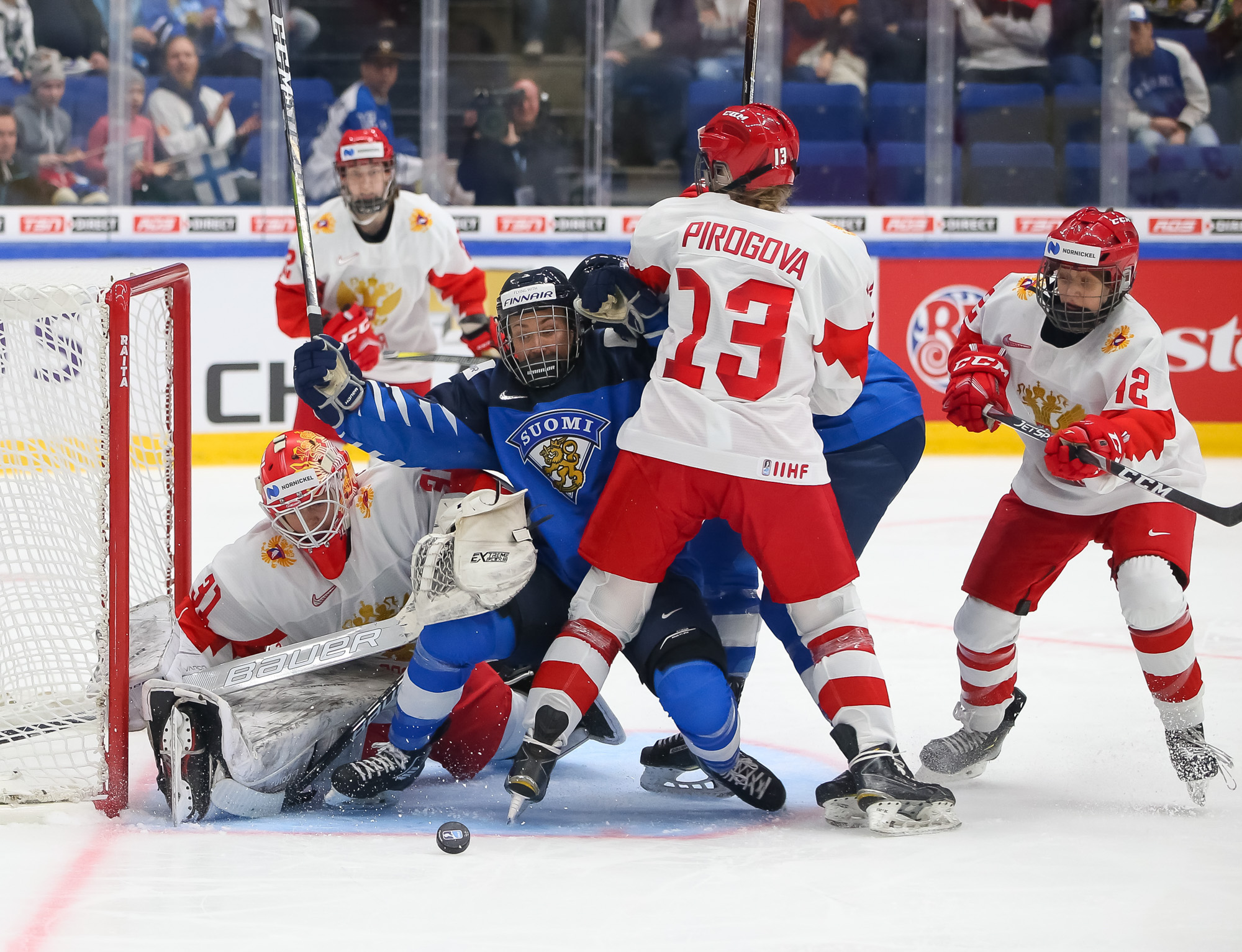 The starting goalies were a study in contrasts. Dynamo St. Petersburg’s Valentina Merkusheva, a 19-year-old Muscovite, made her Women’s Worlds debut between the pipes versus Olympic all-star Noora Raty, making her 35th appearance – second all-time only to Switzerland’s Florence Schelling (44). Raty earned her sixth career Women's Worlds shutout.