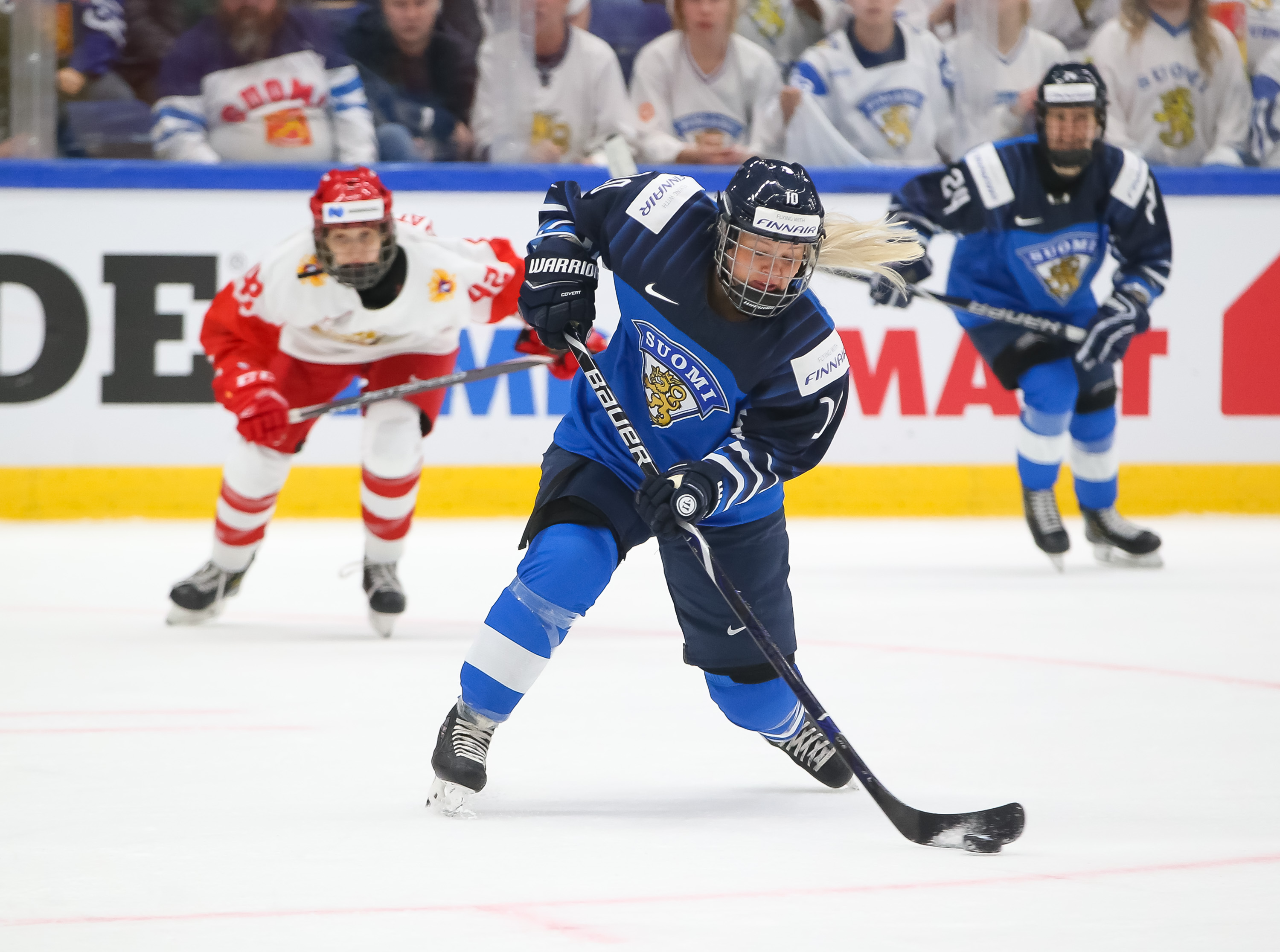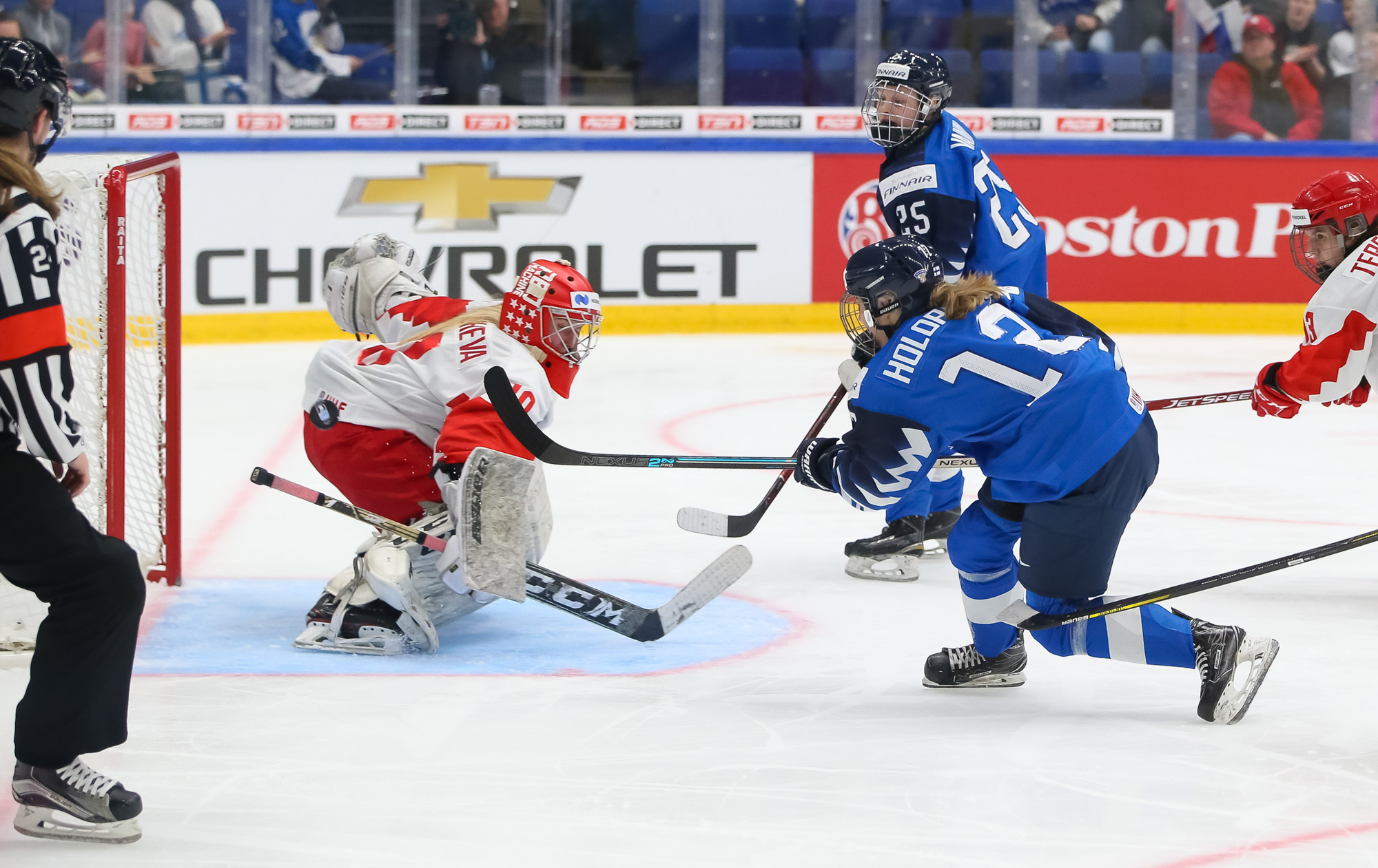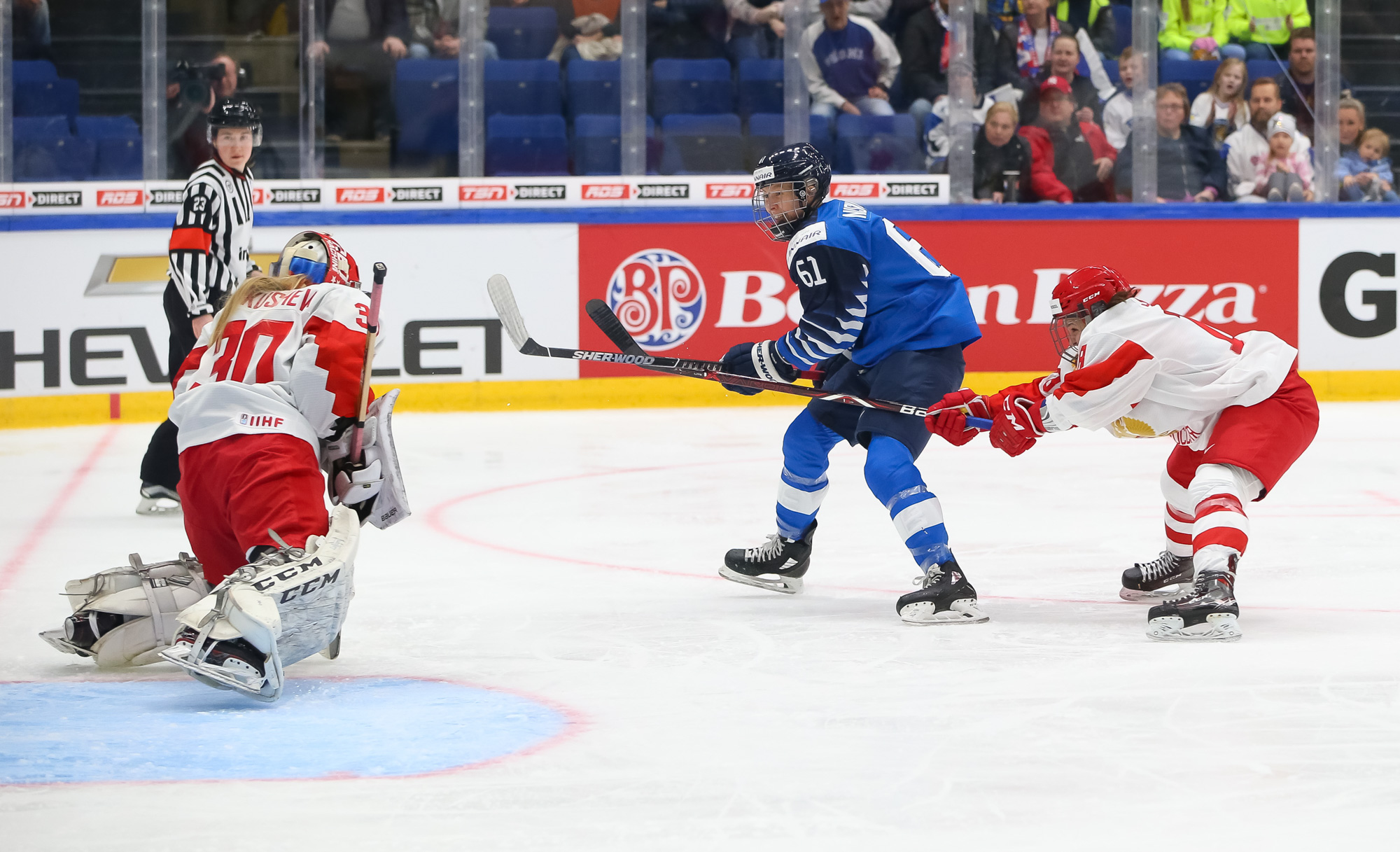 The youthful, speedy fourth line grabbed the spotlight. Viivi Vainikka, Finland's Player of the Game, led the way with a goal and two assists, while Elisa Holopainen and Sanni Hakala had a goal and an assist apiece. Petra Nieminen notched the opening goal.