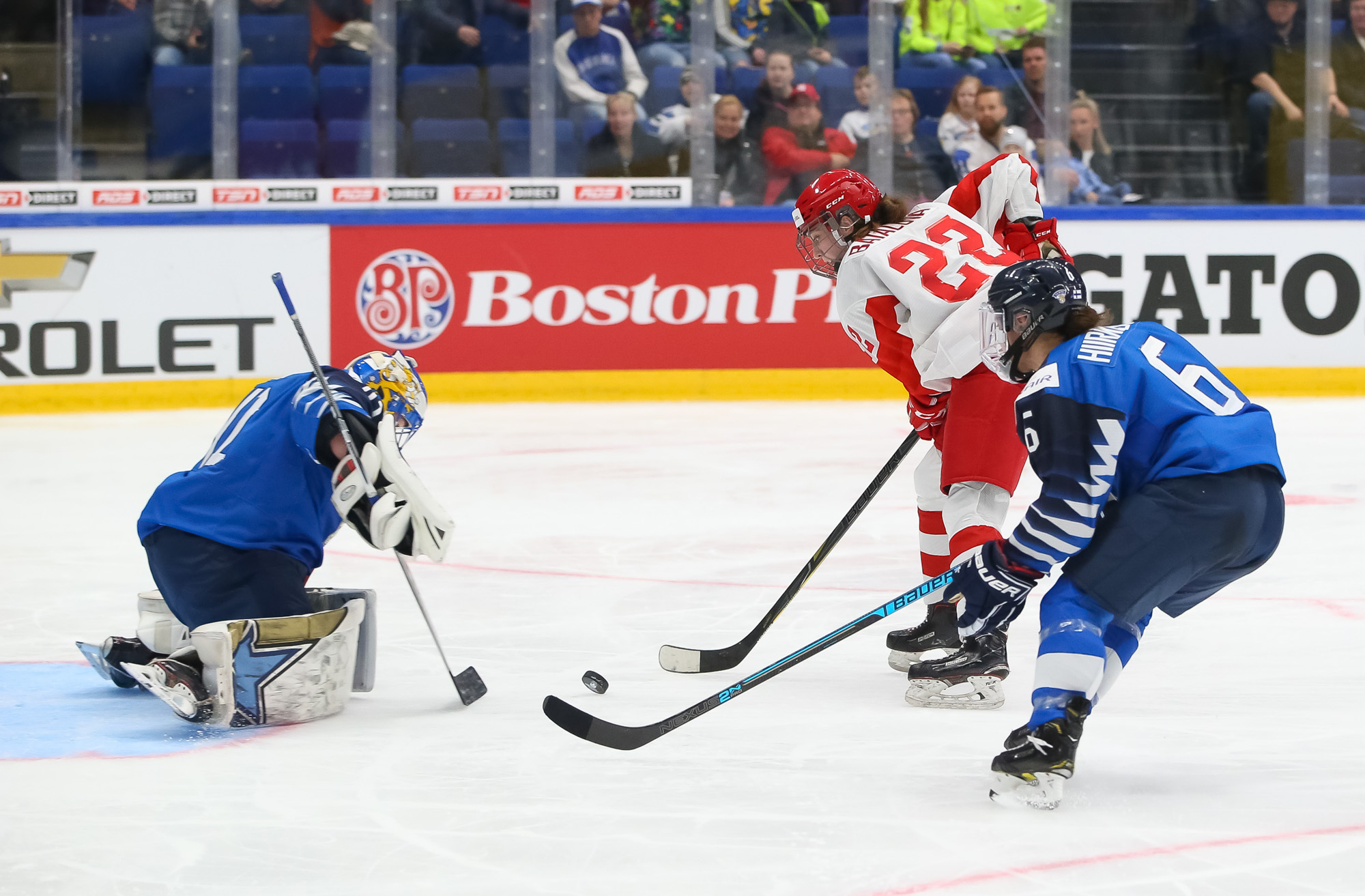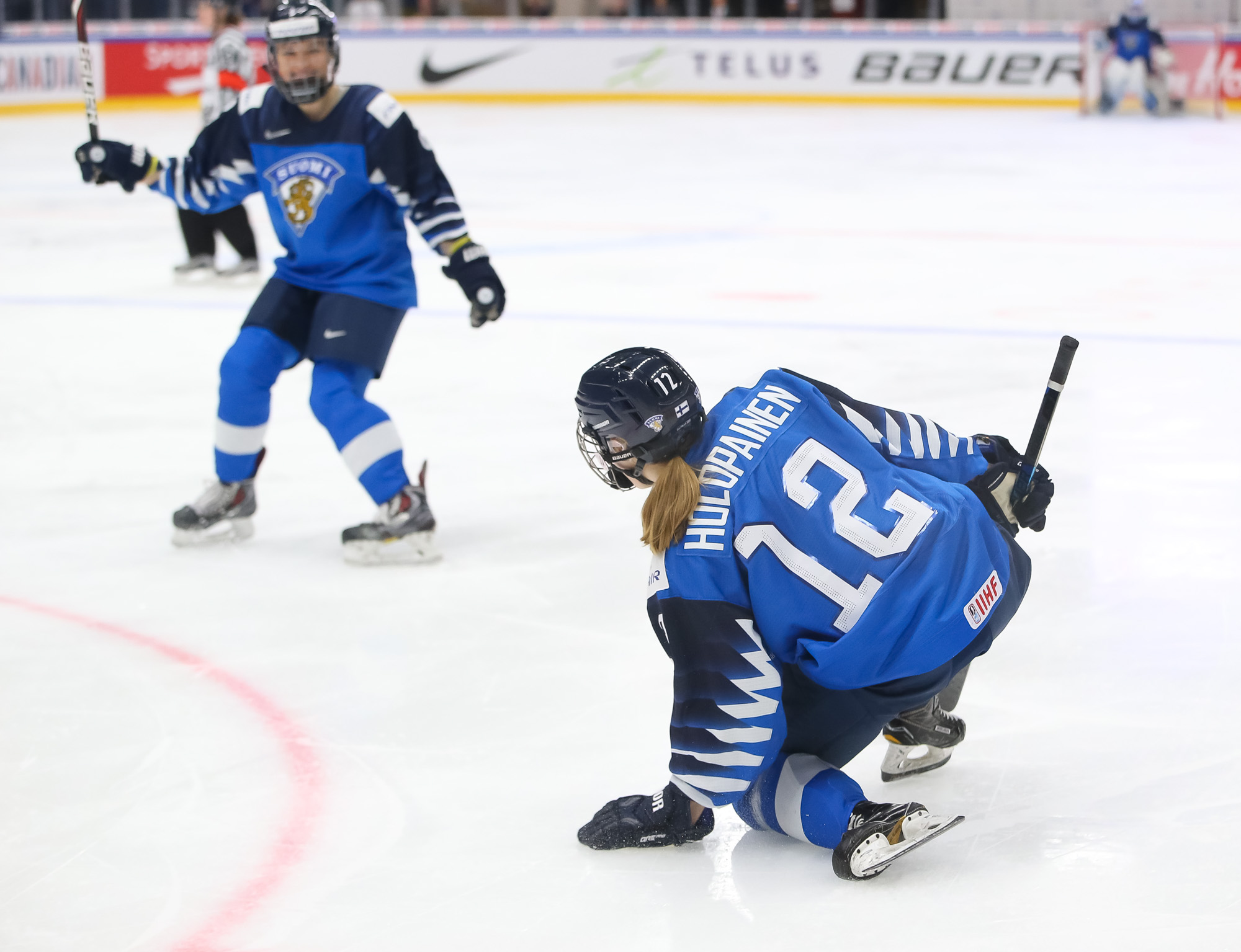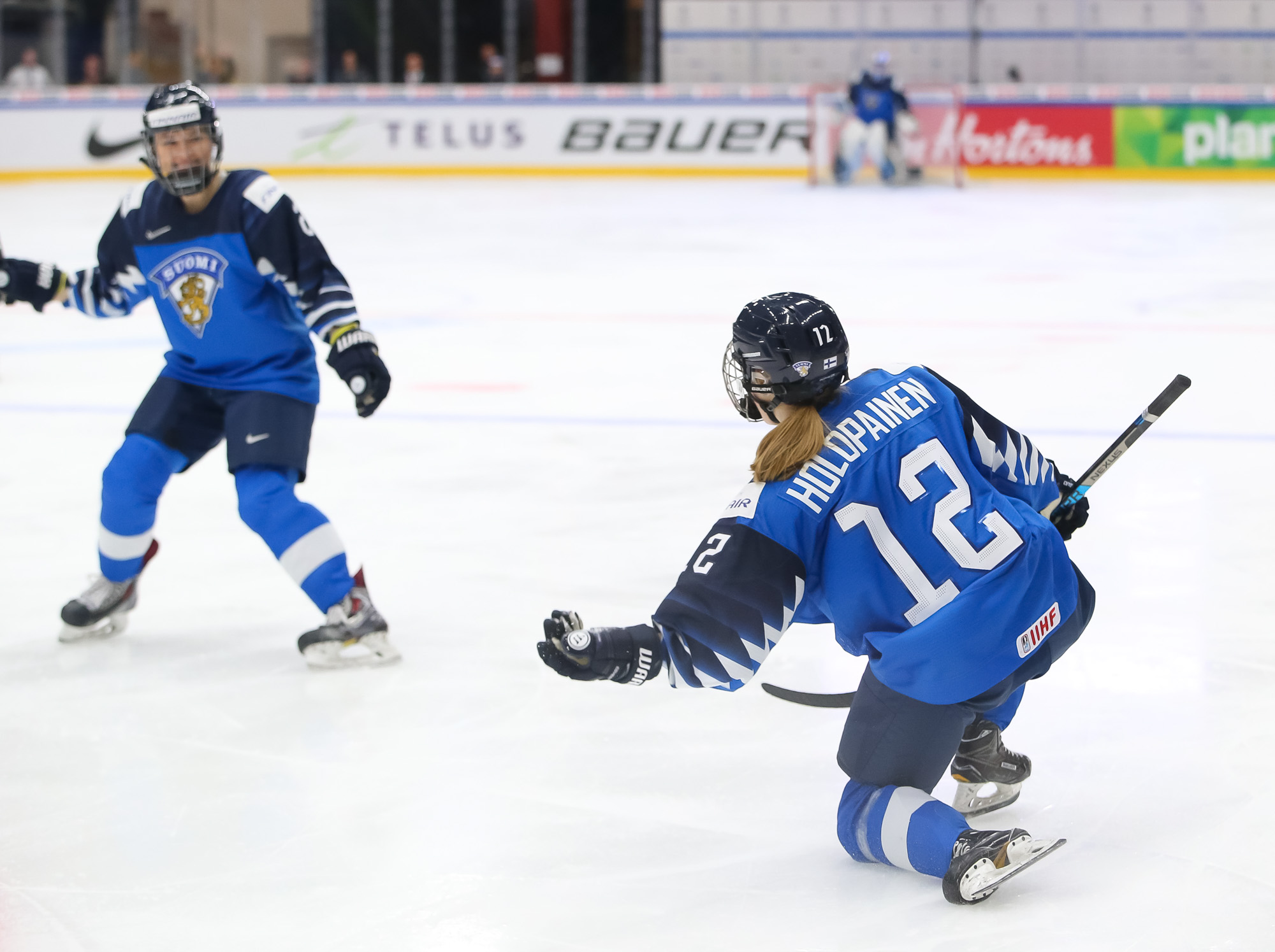 The youthful, speedy fourth line grabbed the spotlight. Viivi Vainikka, Finland's Player of the Game, led the way with a goal and two assists, while Elisa Holopainen and Sanni Hakala had a goal and an assist apiece. Petra Nieminen notched the opening goal.