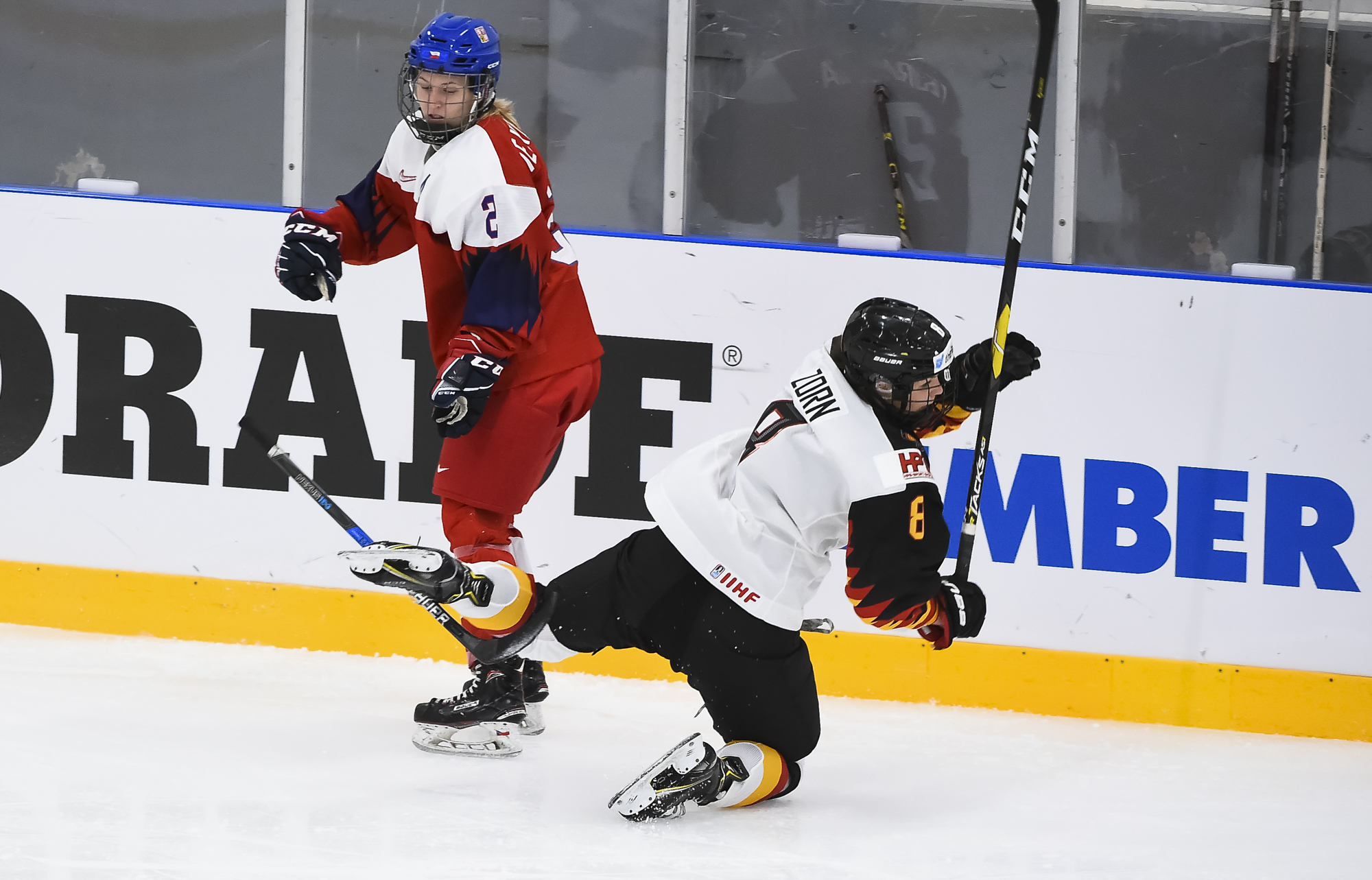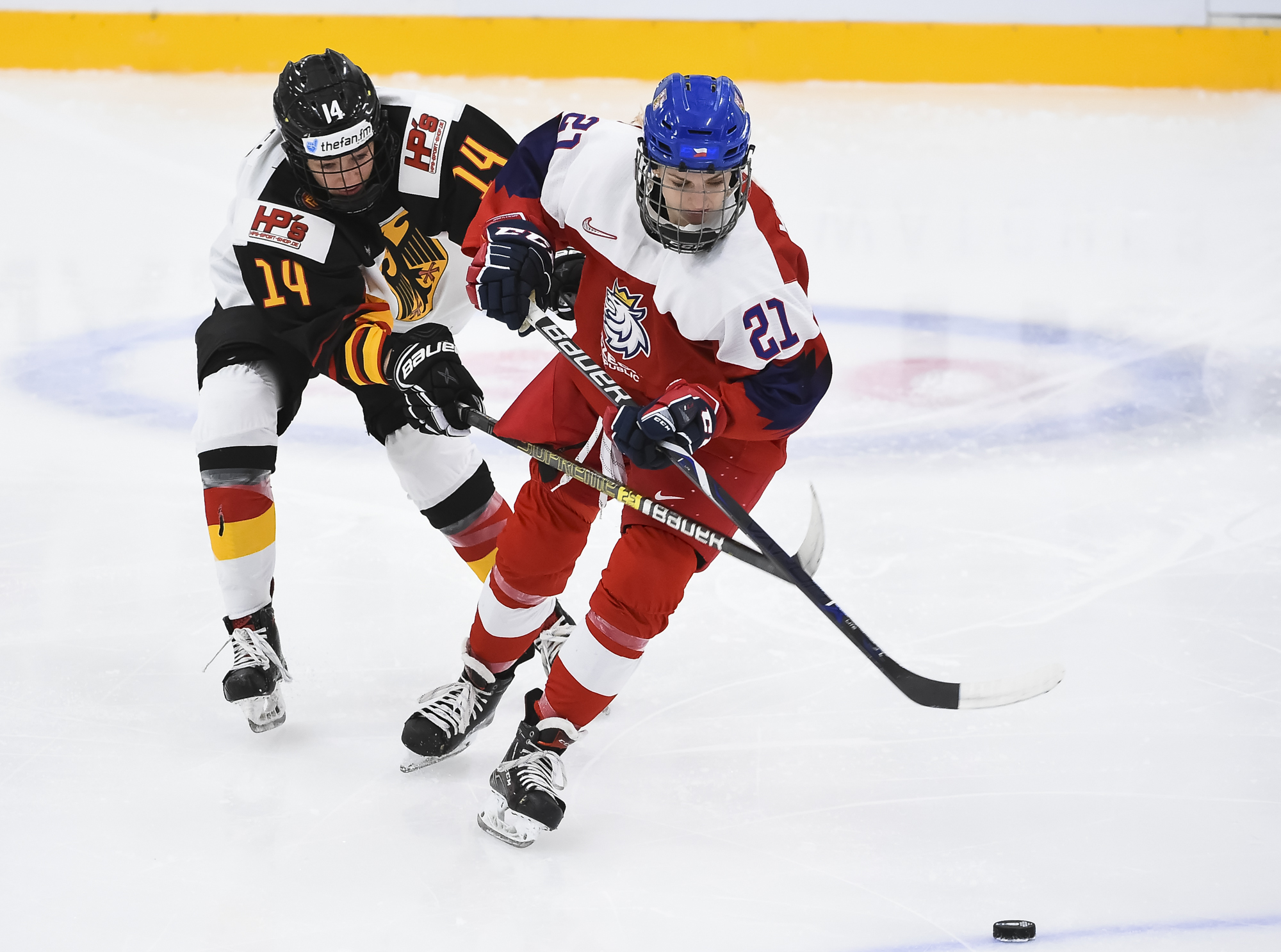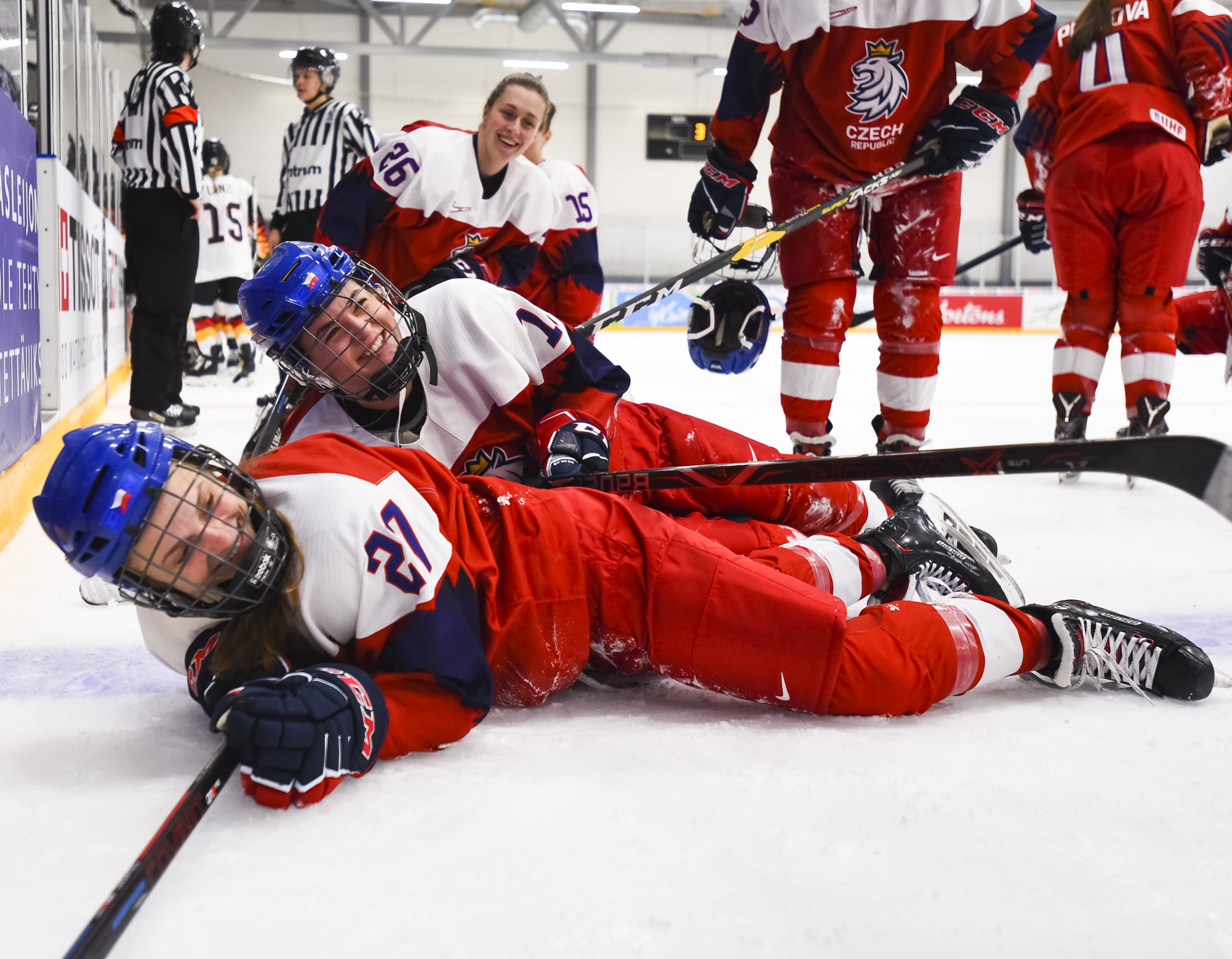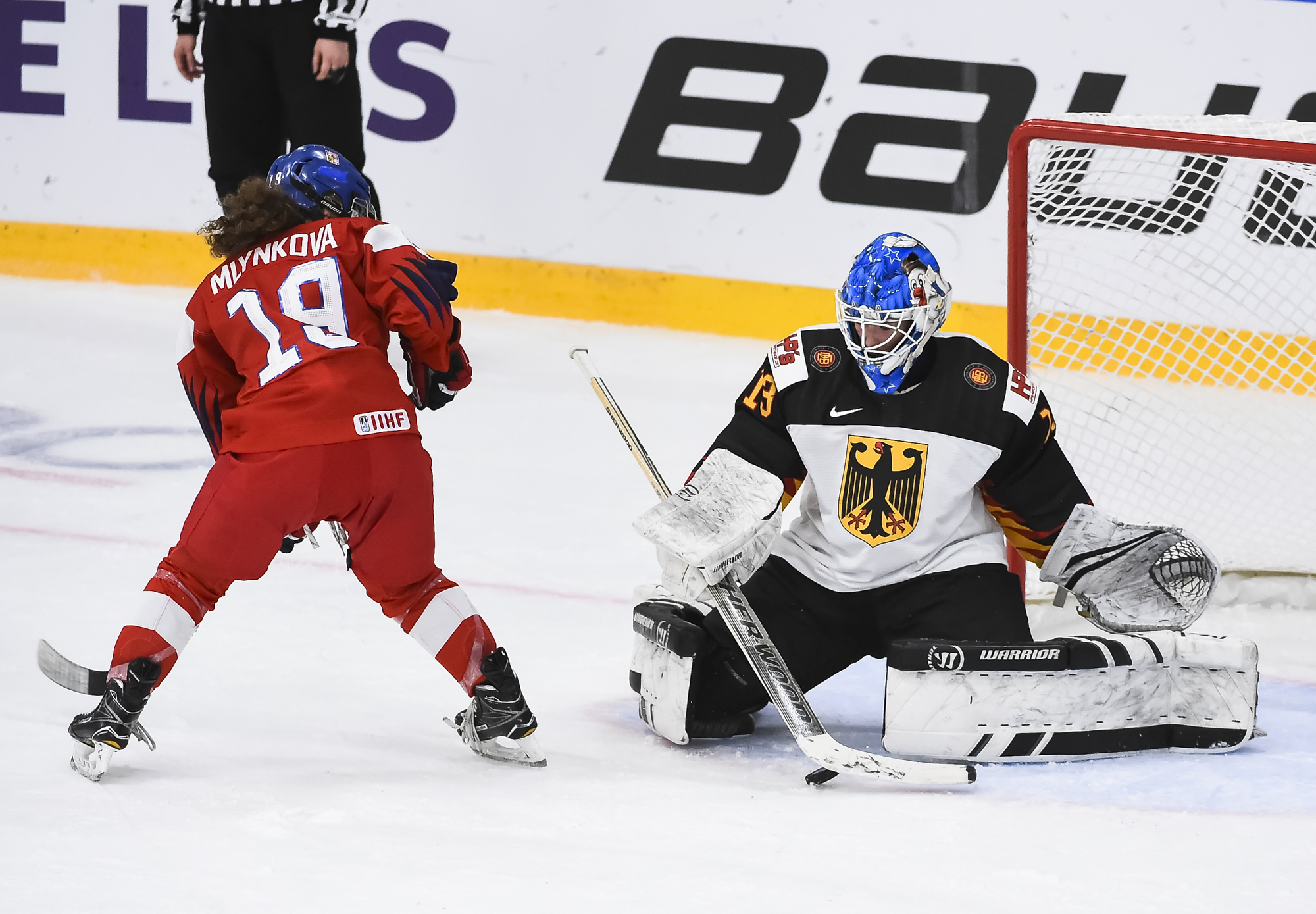 Captain Alena Mills (left) was named the Czech Republic's Player of the Game in the 2-0 win over Germany at the 2019 IIHF Ice Hockey Women's World Championship.