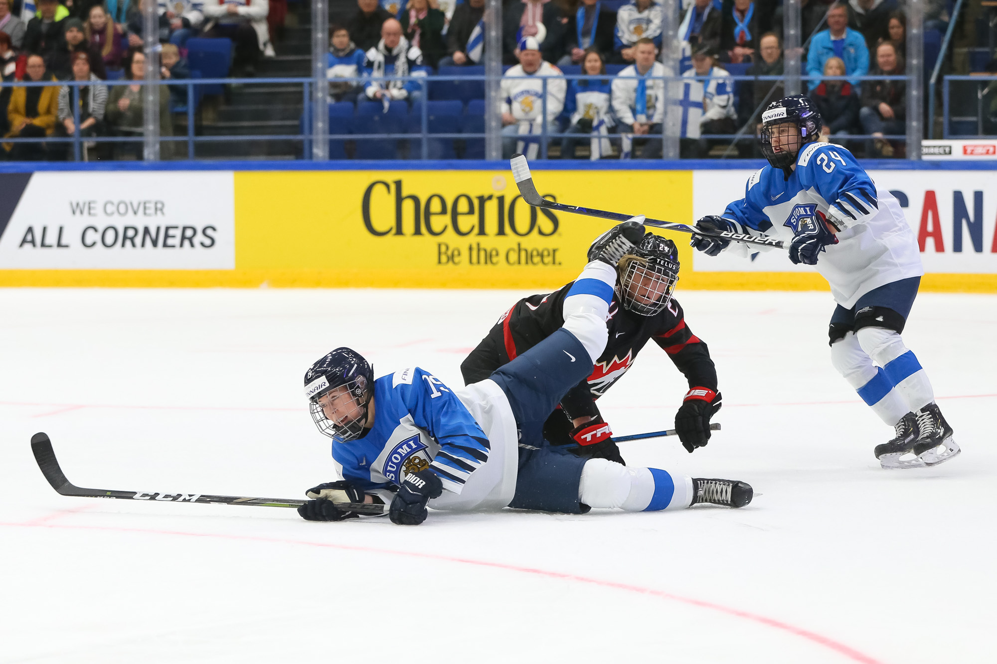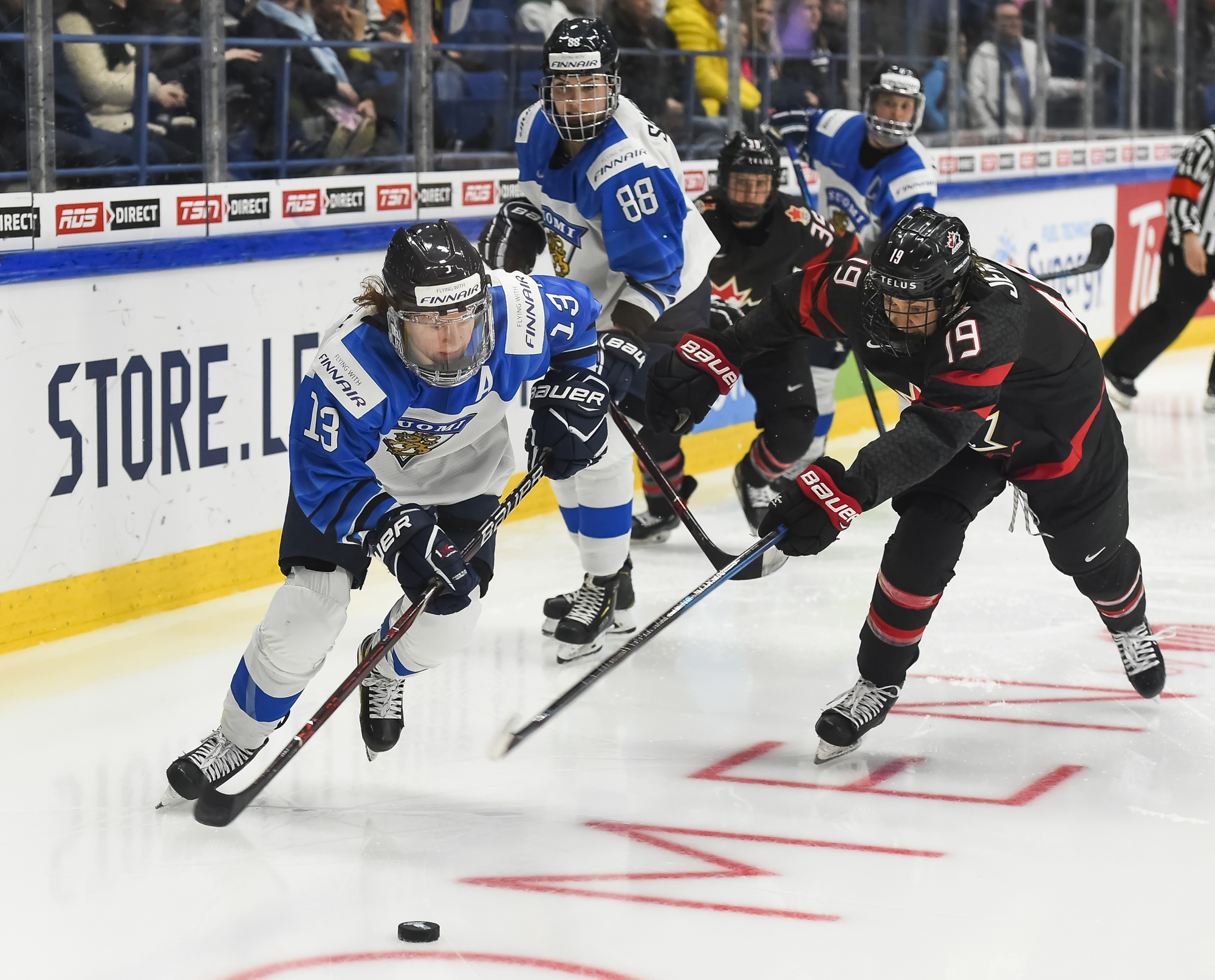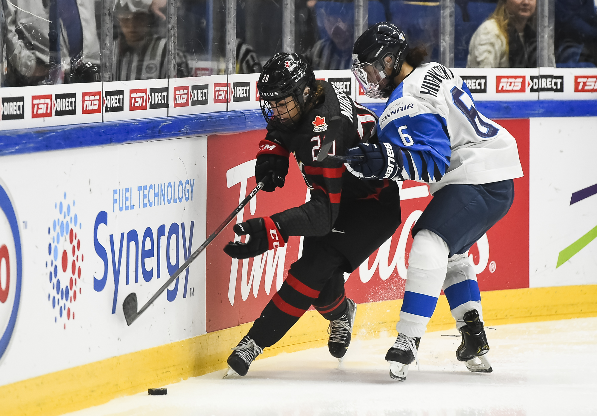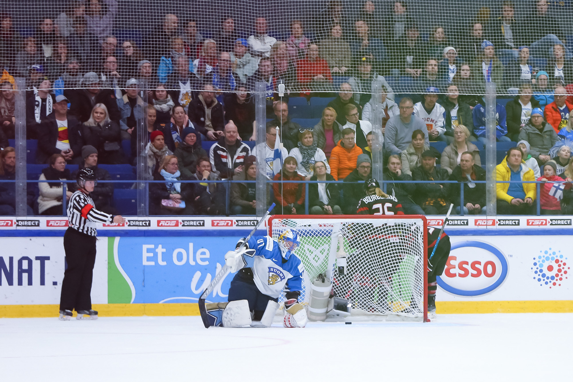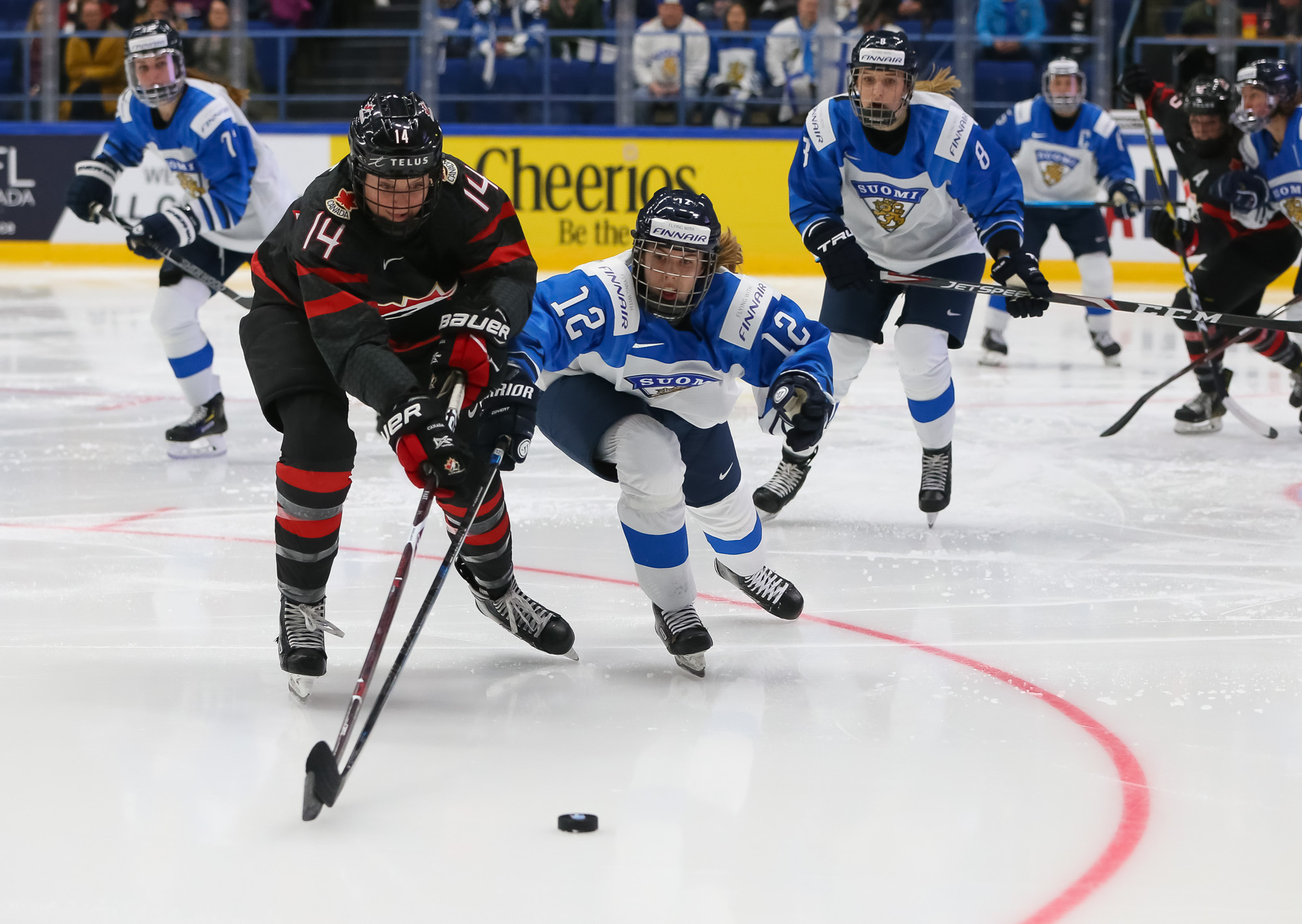 A determined Canadian effort stymied the first Finnish power play with Natalie Spooner off for hooking, as the Finns exerted great pressure.