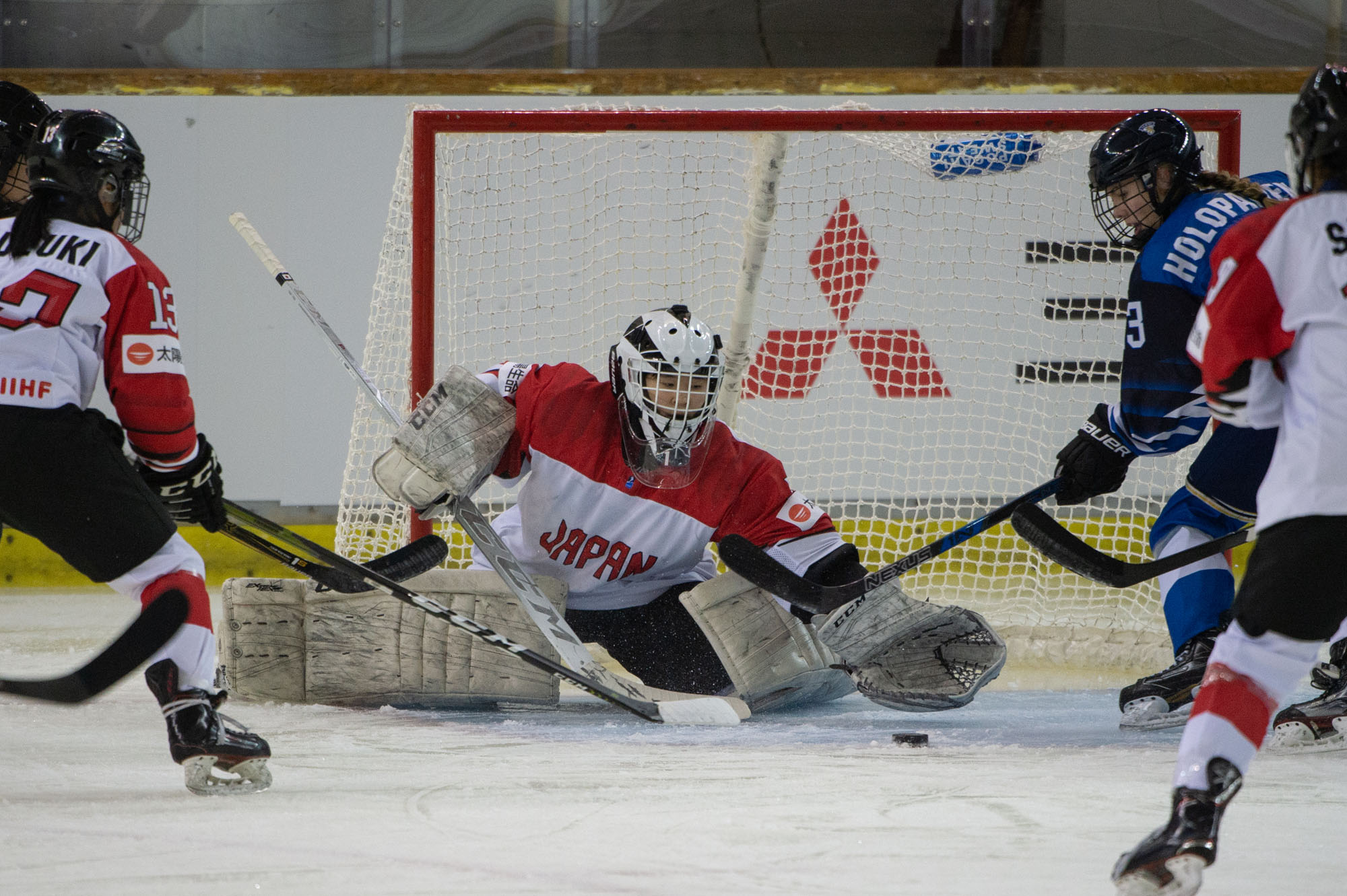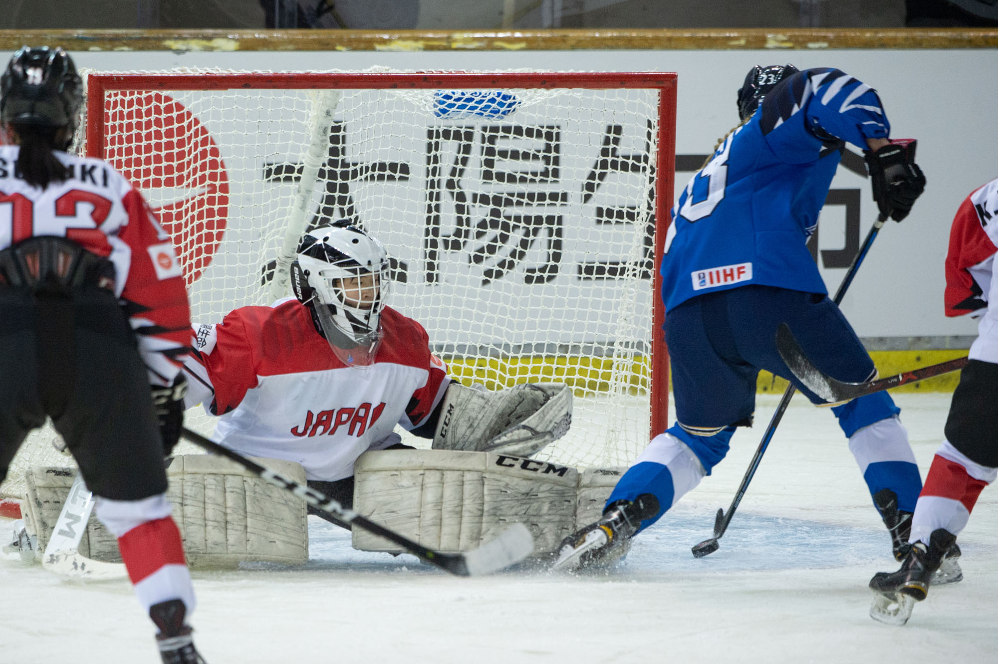 The Japanese were fortunate to escape the first period in a tie. They took four minor penalties in he first 16 minutes, and after killing off three finally paid the price for their lack of discipline.