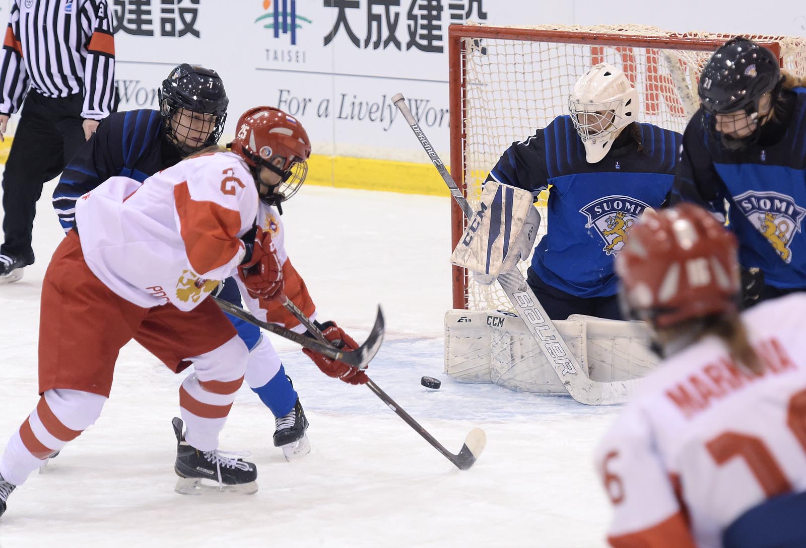 The Russians fired 25 shots at Jaskari but couldn't beat her. Finland had 19 shots on two Russian goalies.