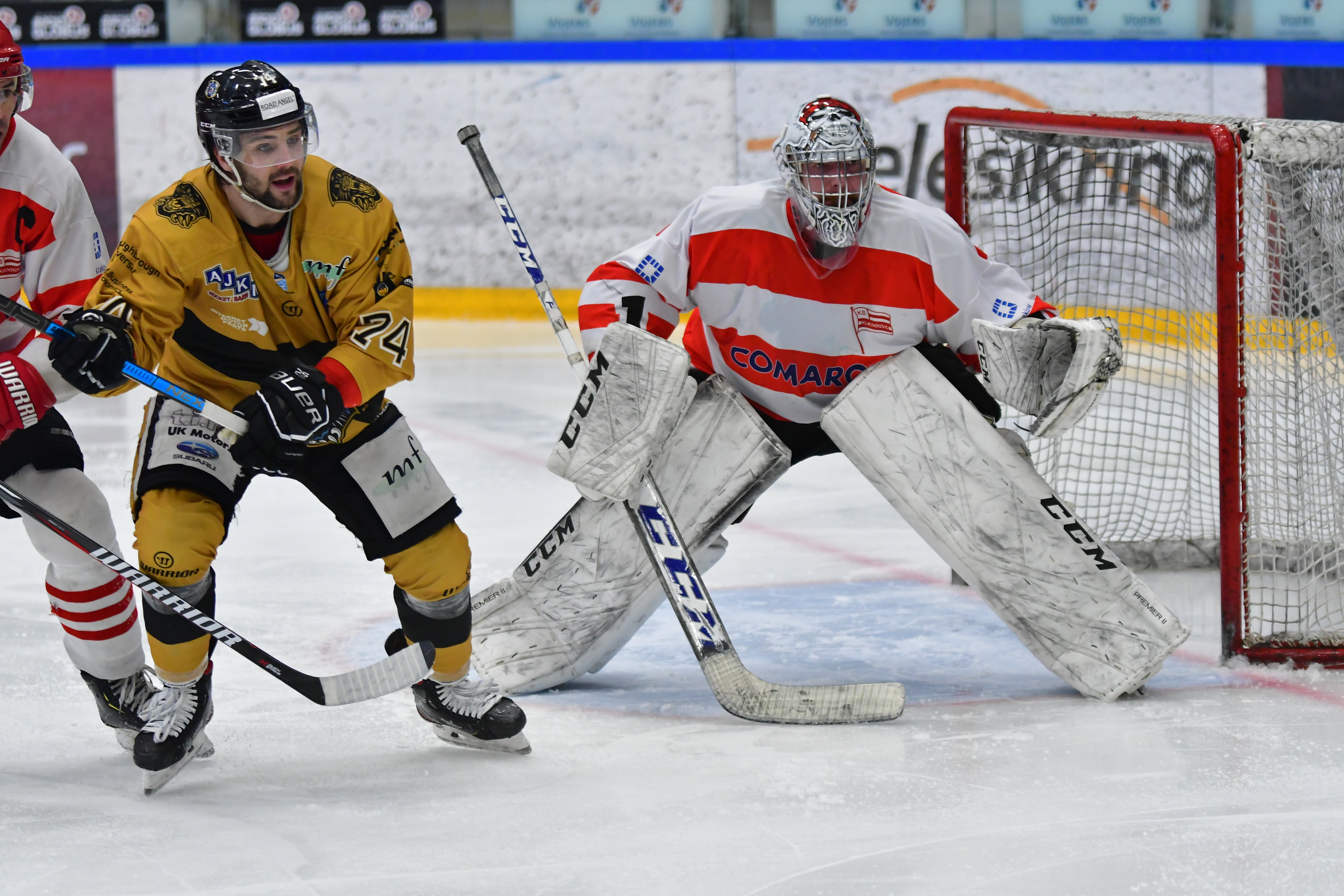 The Nottingham Panthers and Cracovia Krakow gave each other a tough battle with two goals from Samuel Herr (left).