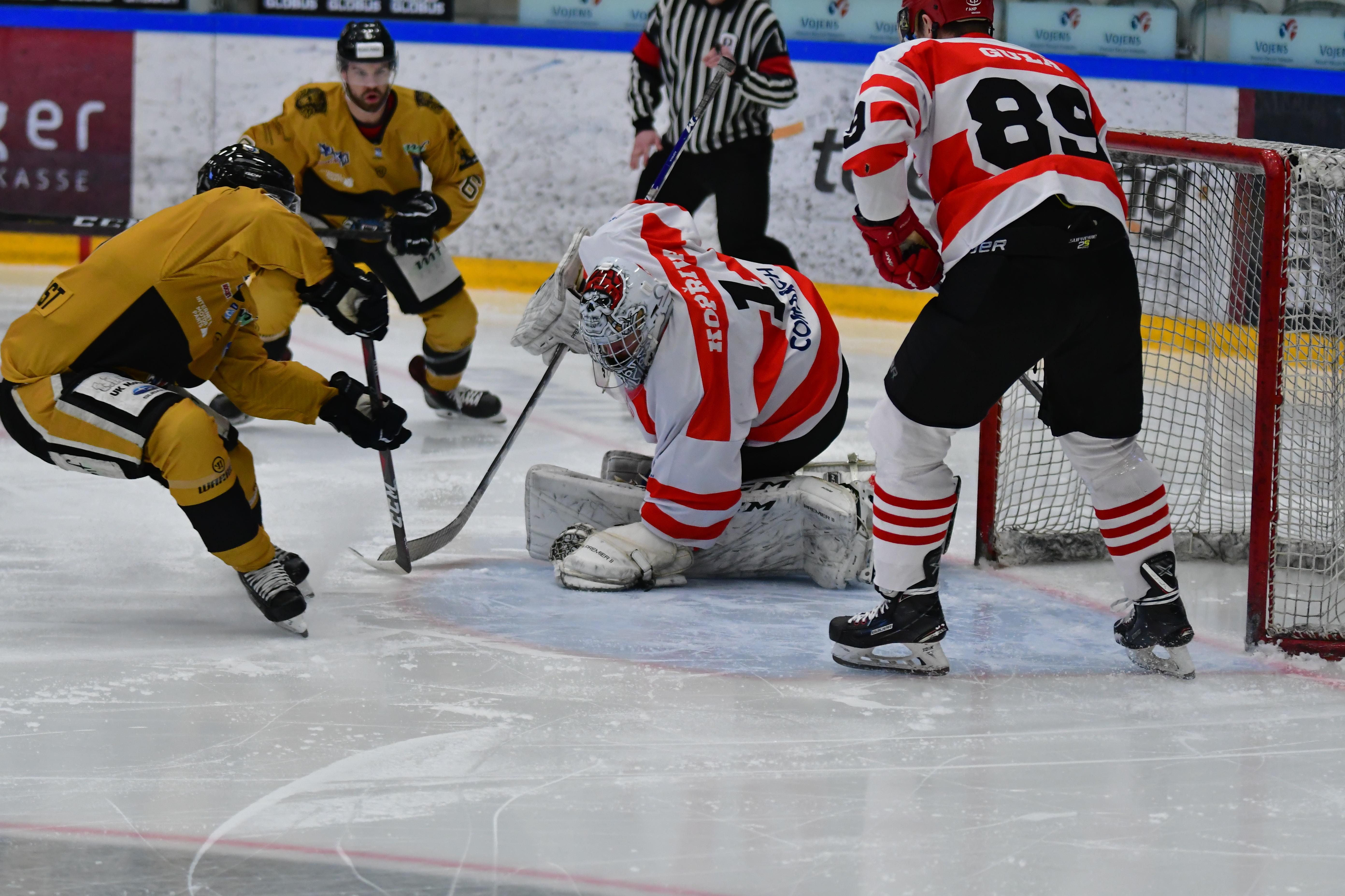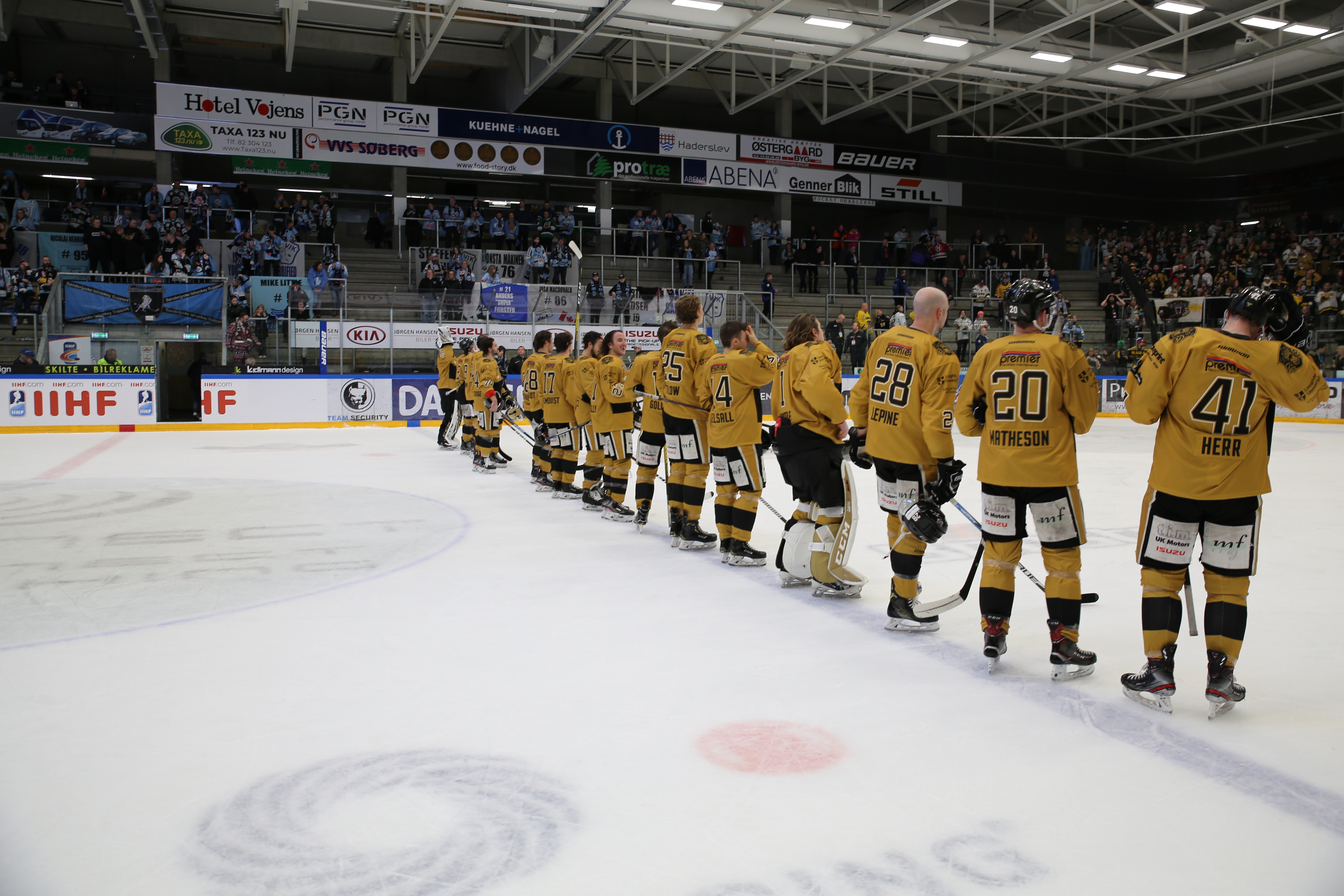 The Panthers continued to push hard in the third period and the next power play meant the next goal. Julian Talbot capitalized in front of the net at 10:45 after a shot from Samuel Herr and brought the game back to a one-goal margin. And when Mateusz Bepierszcz was assesses a tripping penalty a few minutes later, the Panthers punished the opponent fast again when captain Herr diverted a shot to tie the game at three with 4:35 left in regulation time.
