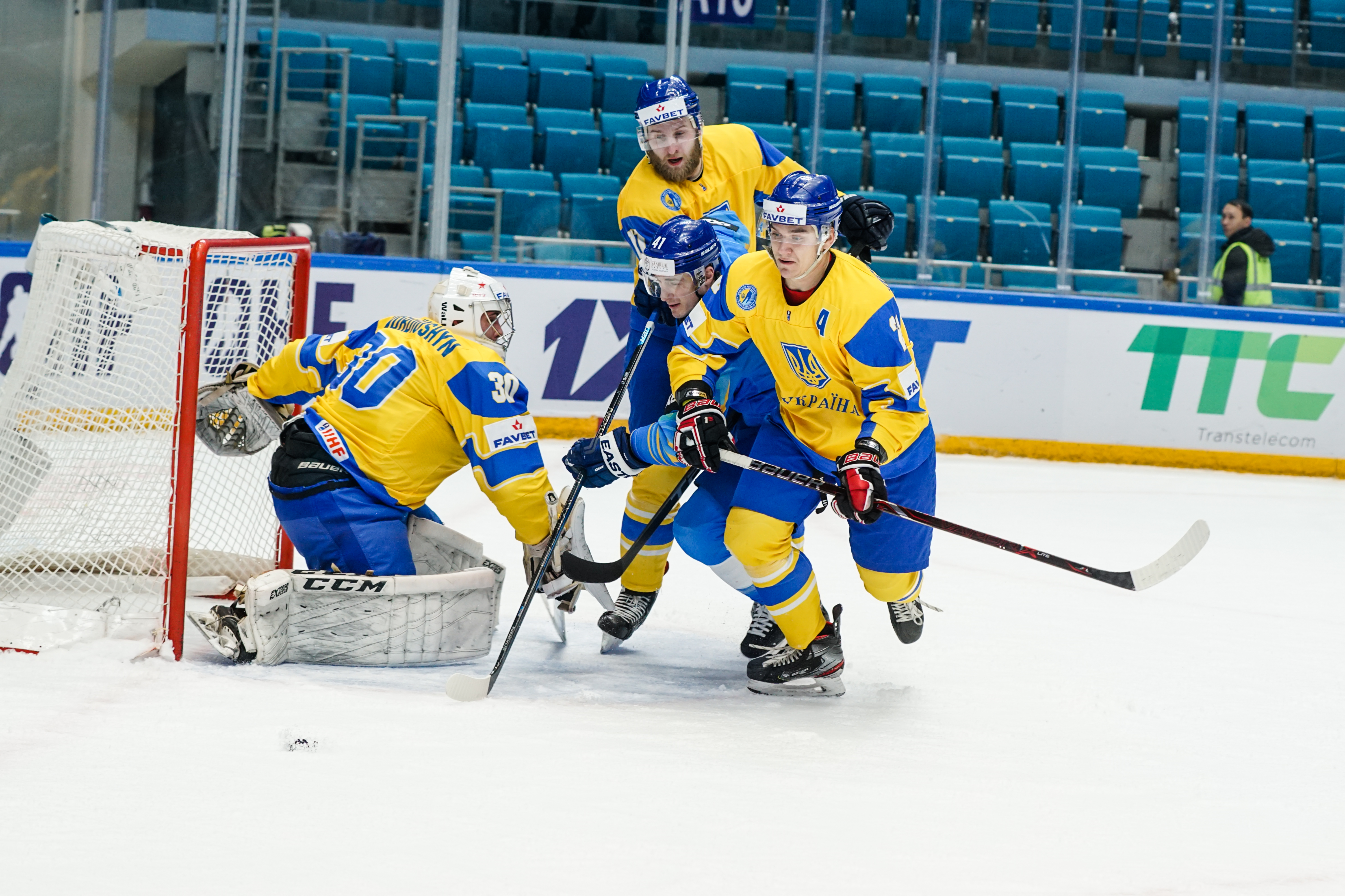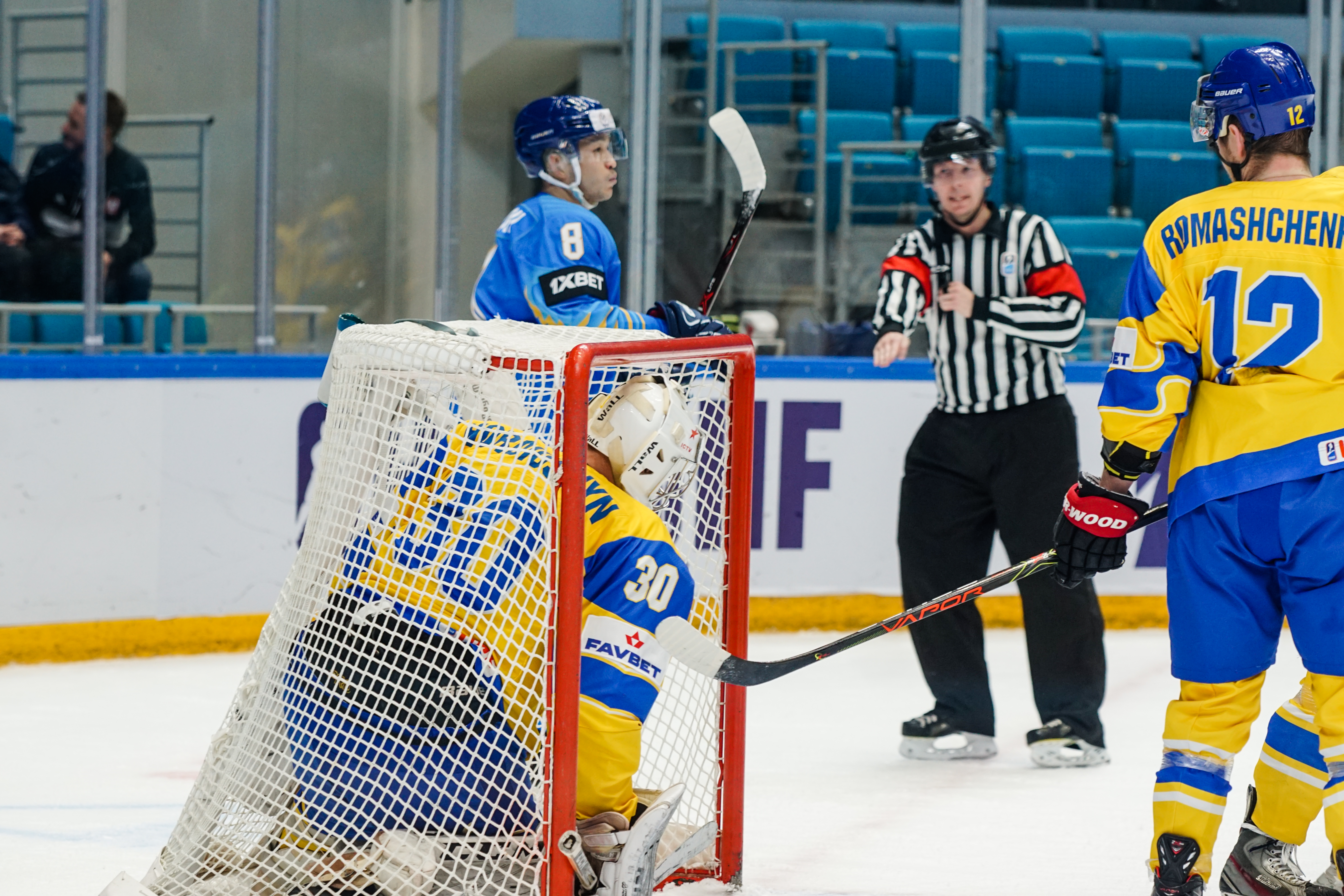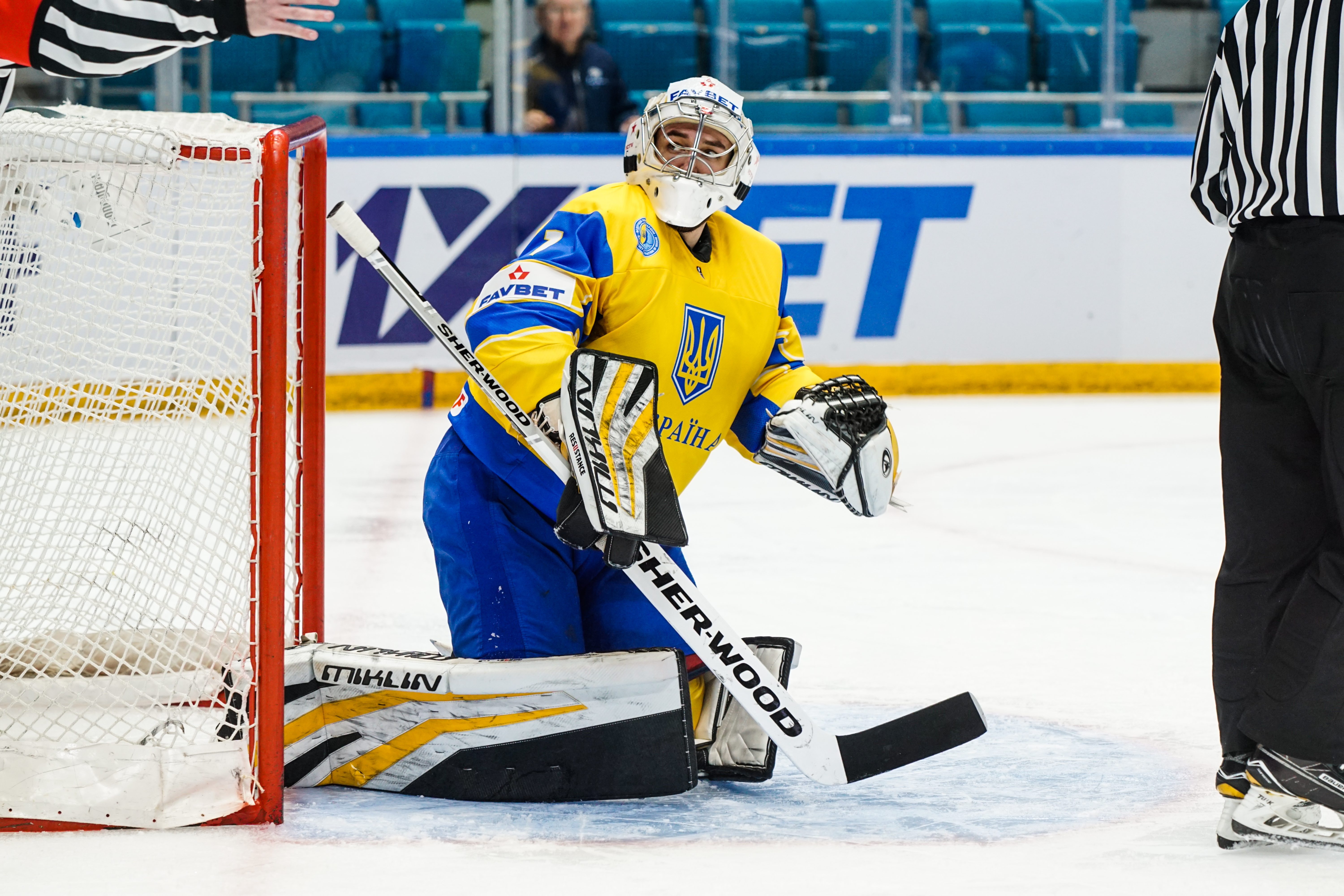 The first minute saw Starchenko flash a shot just wide, the second had Ukraine’s goalie Kyrylo Kucher rolling around his crease and the goal horn sounded in the third. It was a little premature: Arkadi Shestakov’s got a long way through Kucher’s pads but didn’t make it over the line.