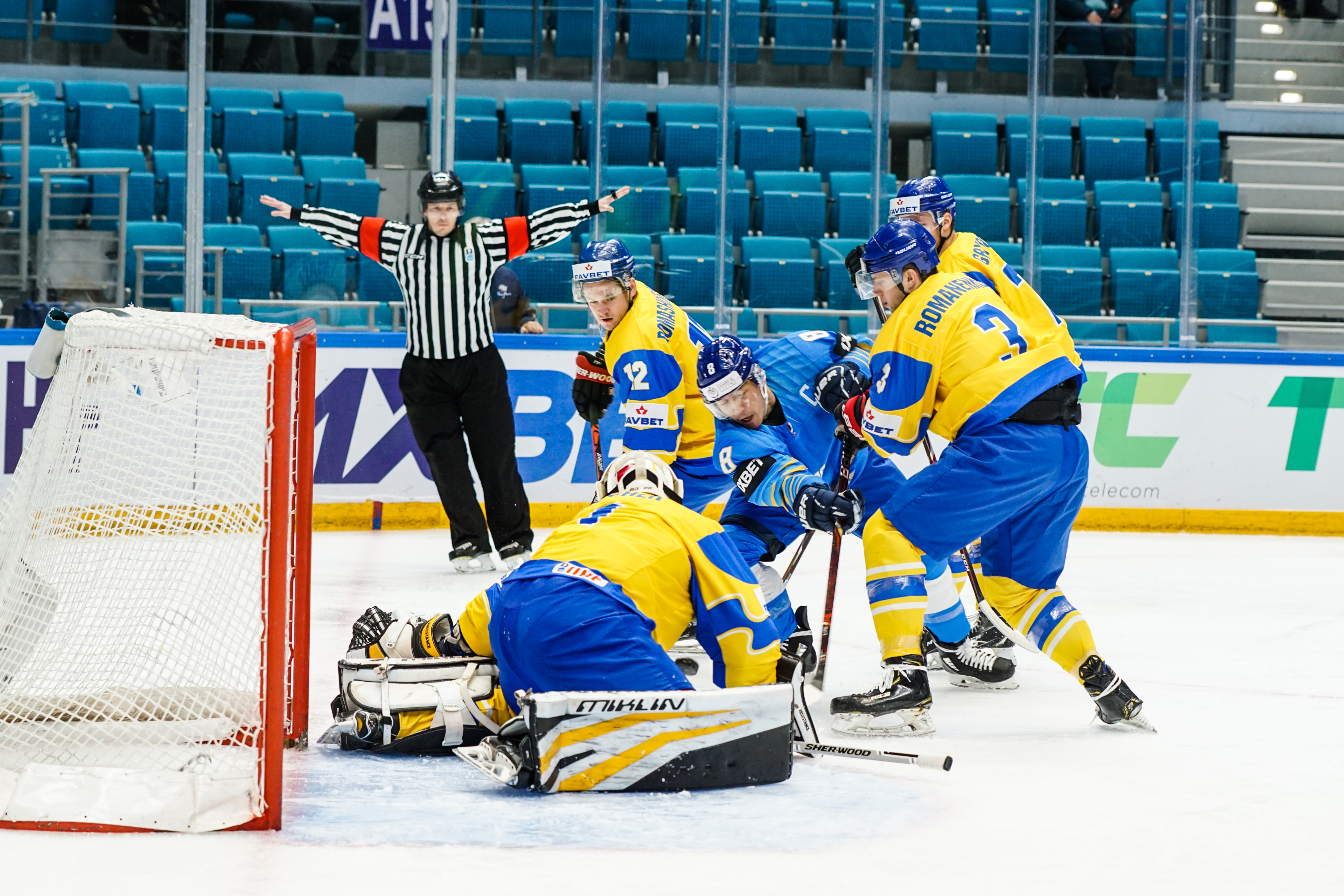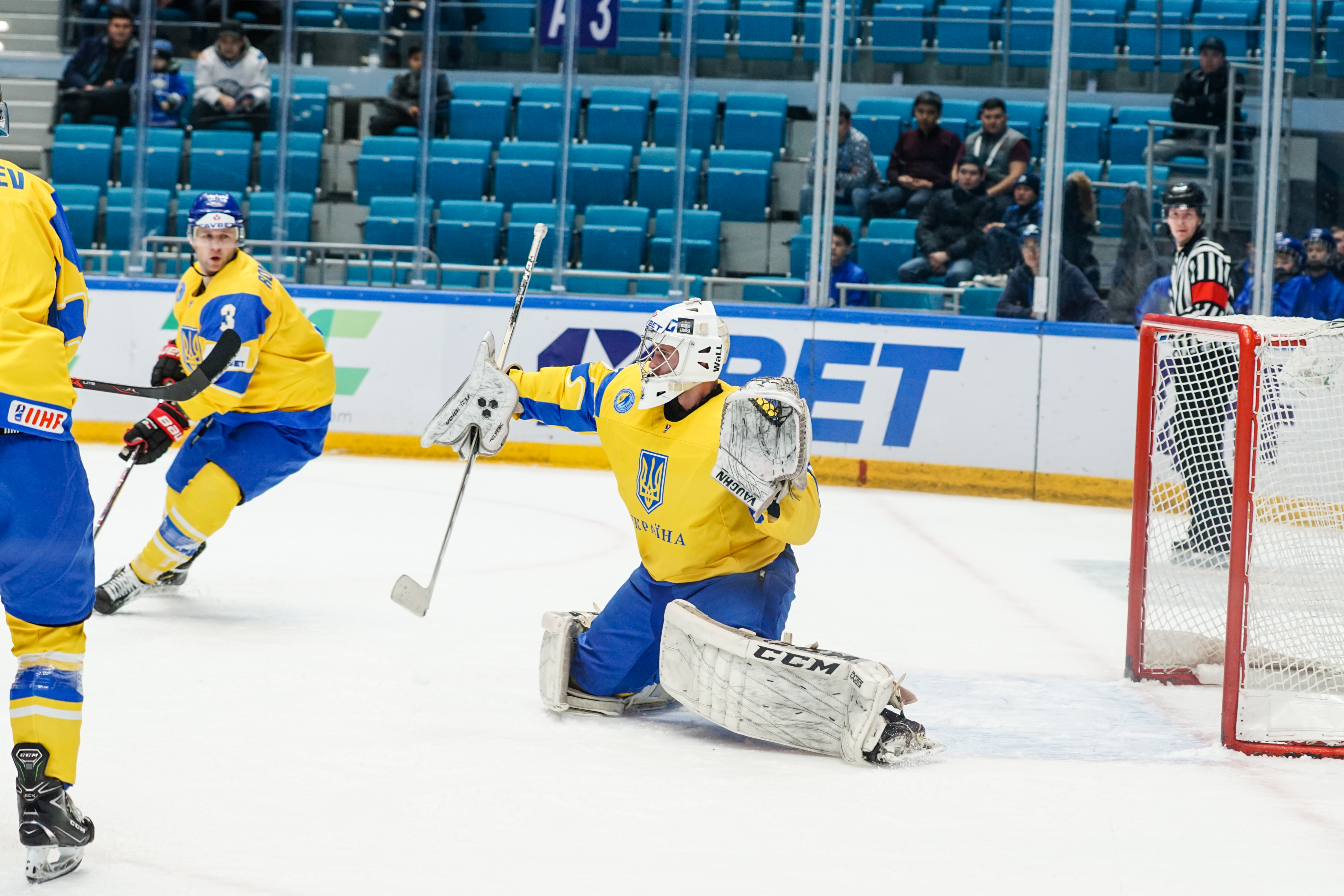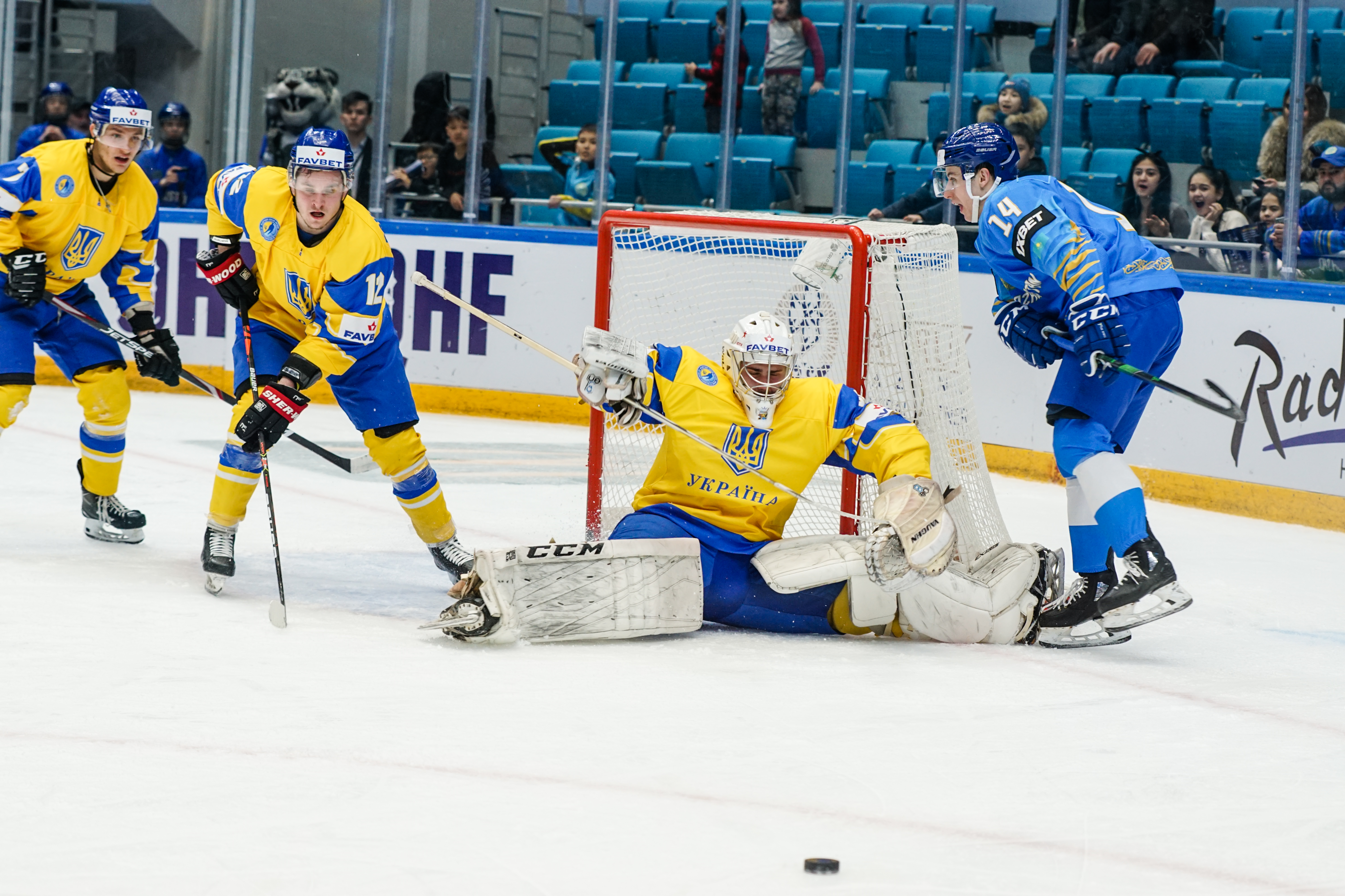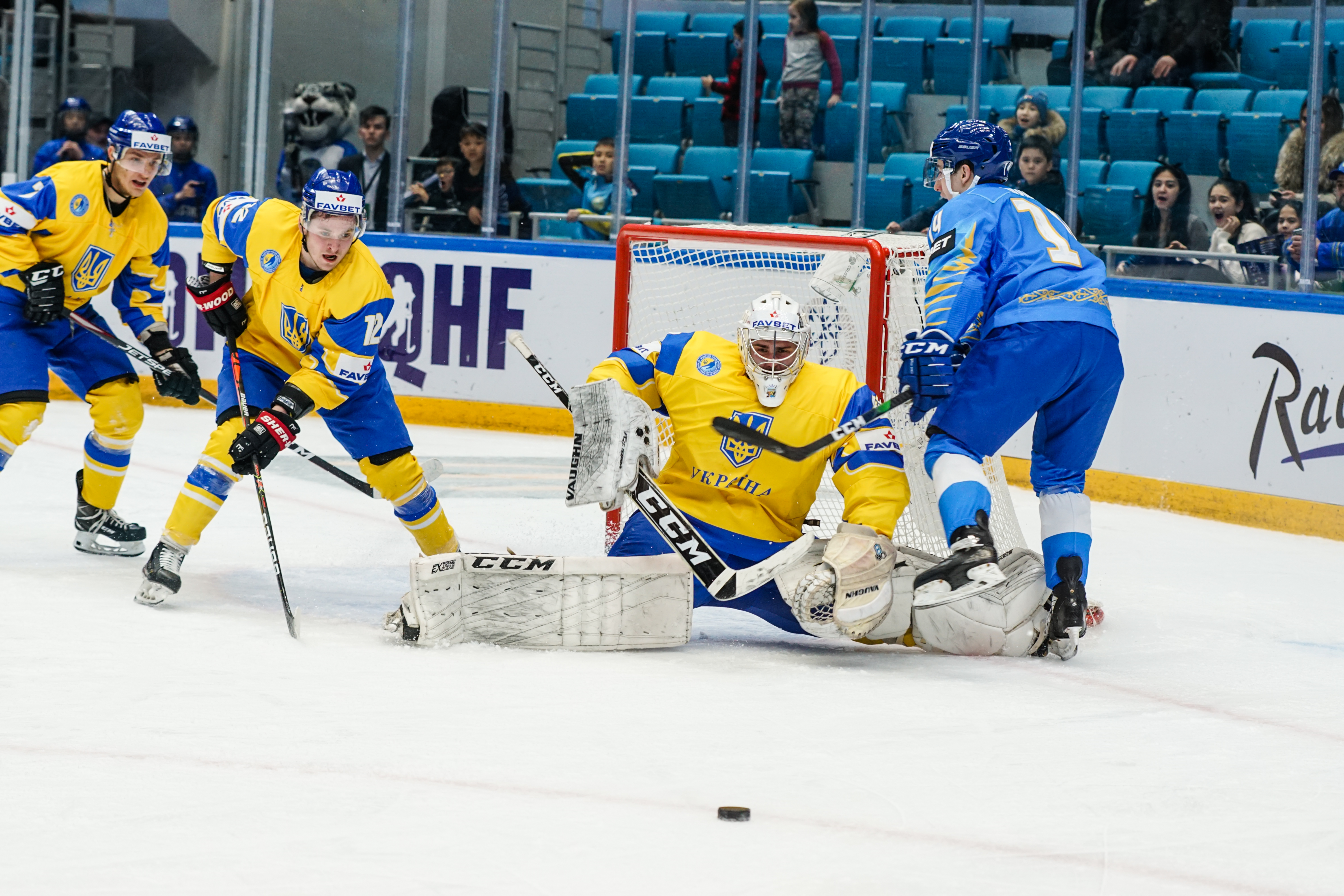 The first minute saw Starchenko flash a shot just wide, the second had Ukraine’s goalie Kyrylo Kucher rolling around his crease and the goal horn sounded in the third. It was a little premature: Arkadi Shestakov’s got a long way through Kucher’s pads but didn’t make it over the line.