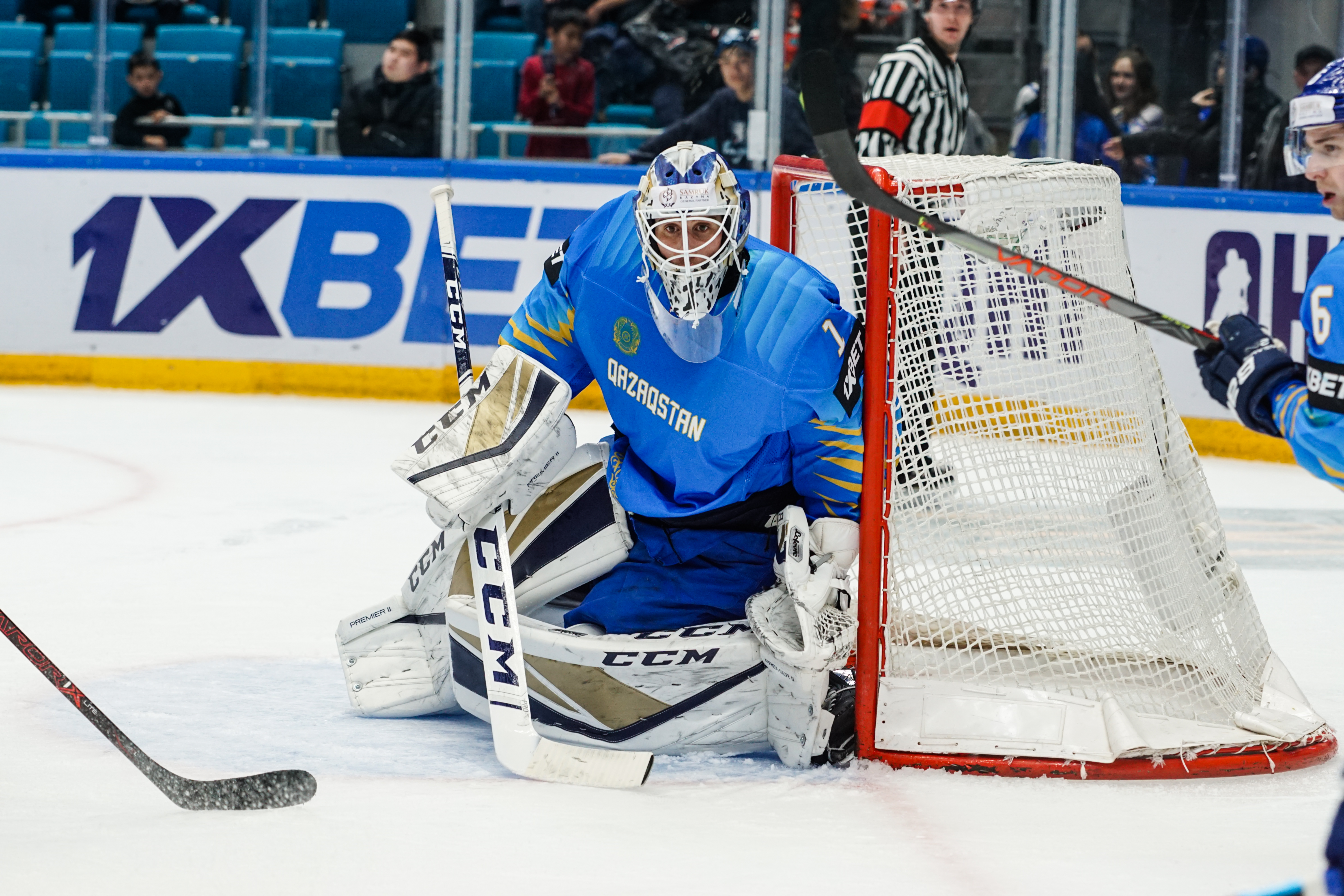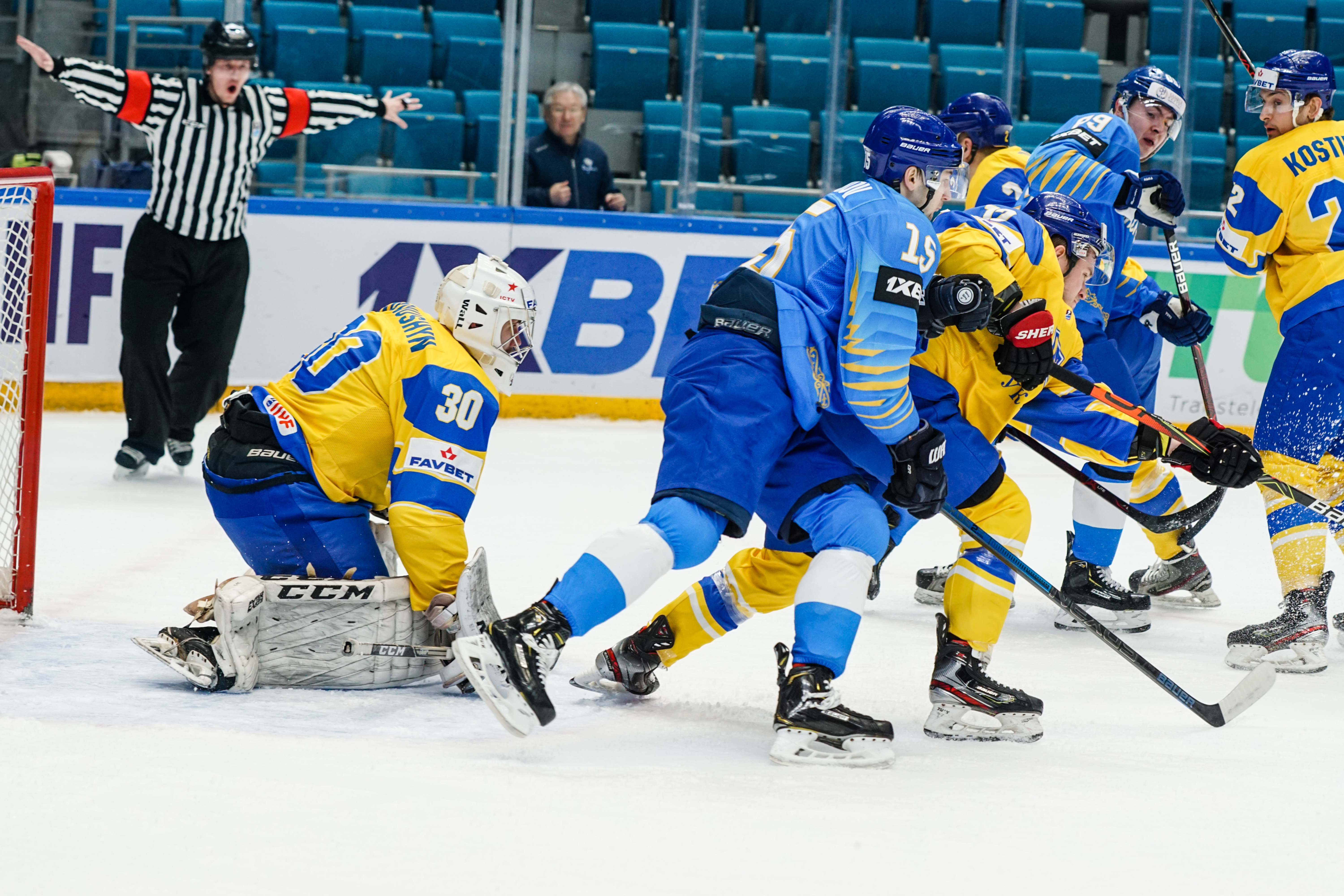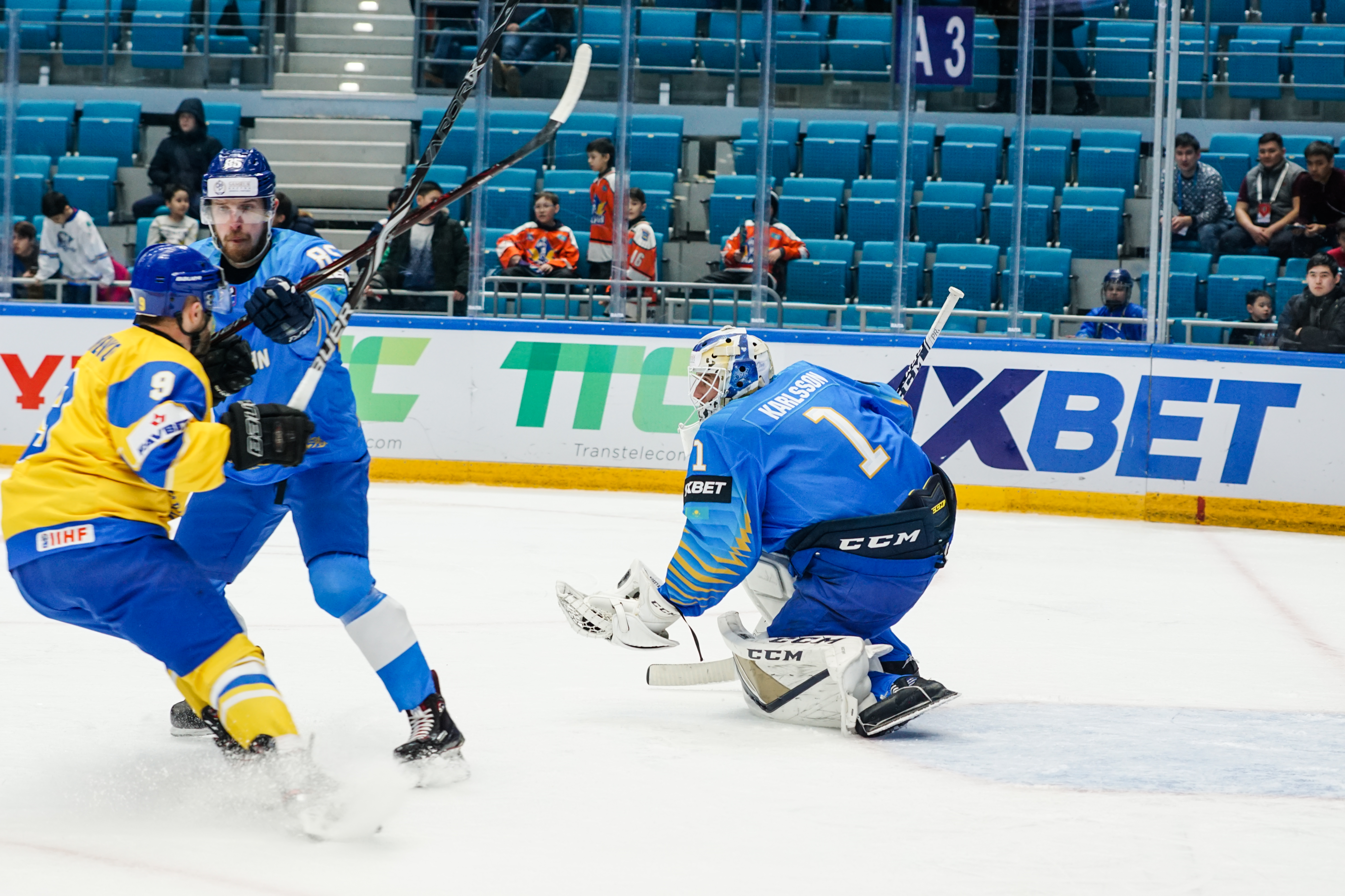 And those forwards weren't going anywhere. The second period was a procession of chances in front of Mykyta Hordiushin, who performed admirably under intense pressure to repeatedly deny more goals. When he was beaten midway through the frame when a Shevchenko touch took a shot away from his glove, the goalie got a helping hand from the post and reacted smartly to drop on the loose puck. As for defensive frailties, Karlsson did not have a shot to save in the middle frame as Kazakhstan turned up the heat on the hard-working Hordiushin.