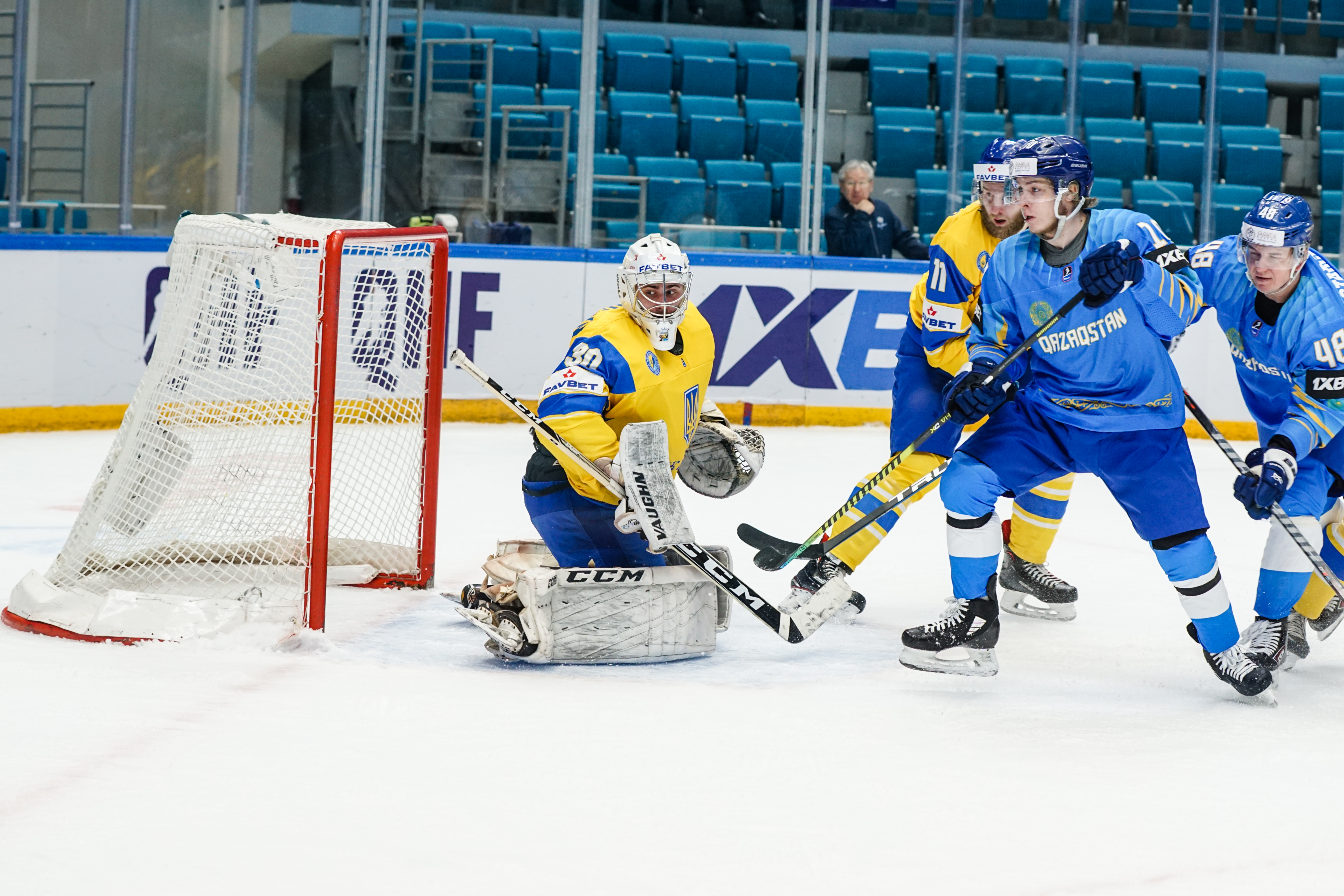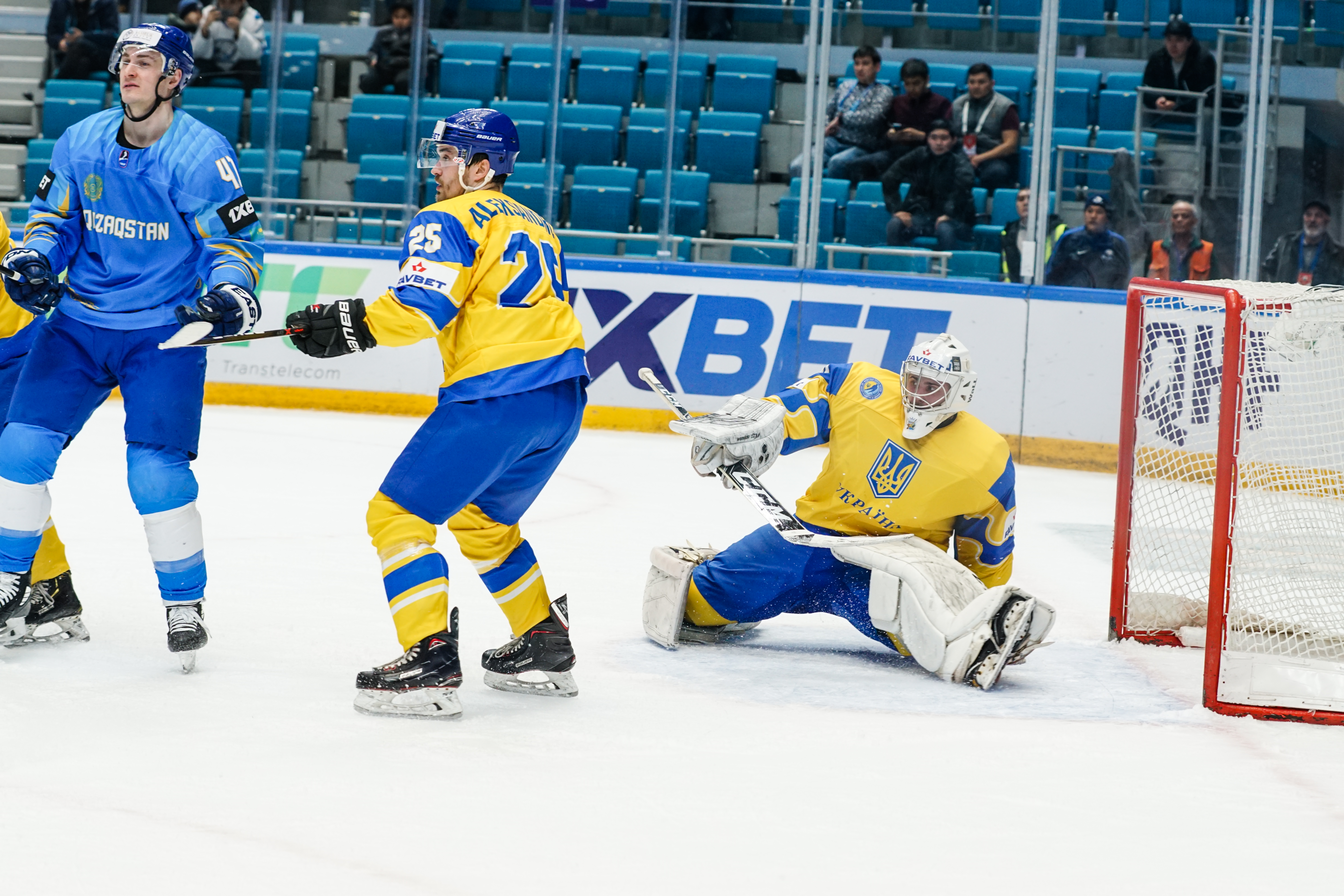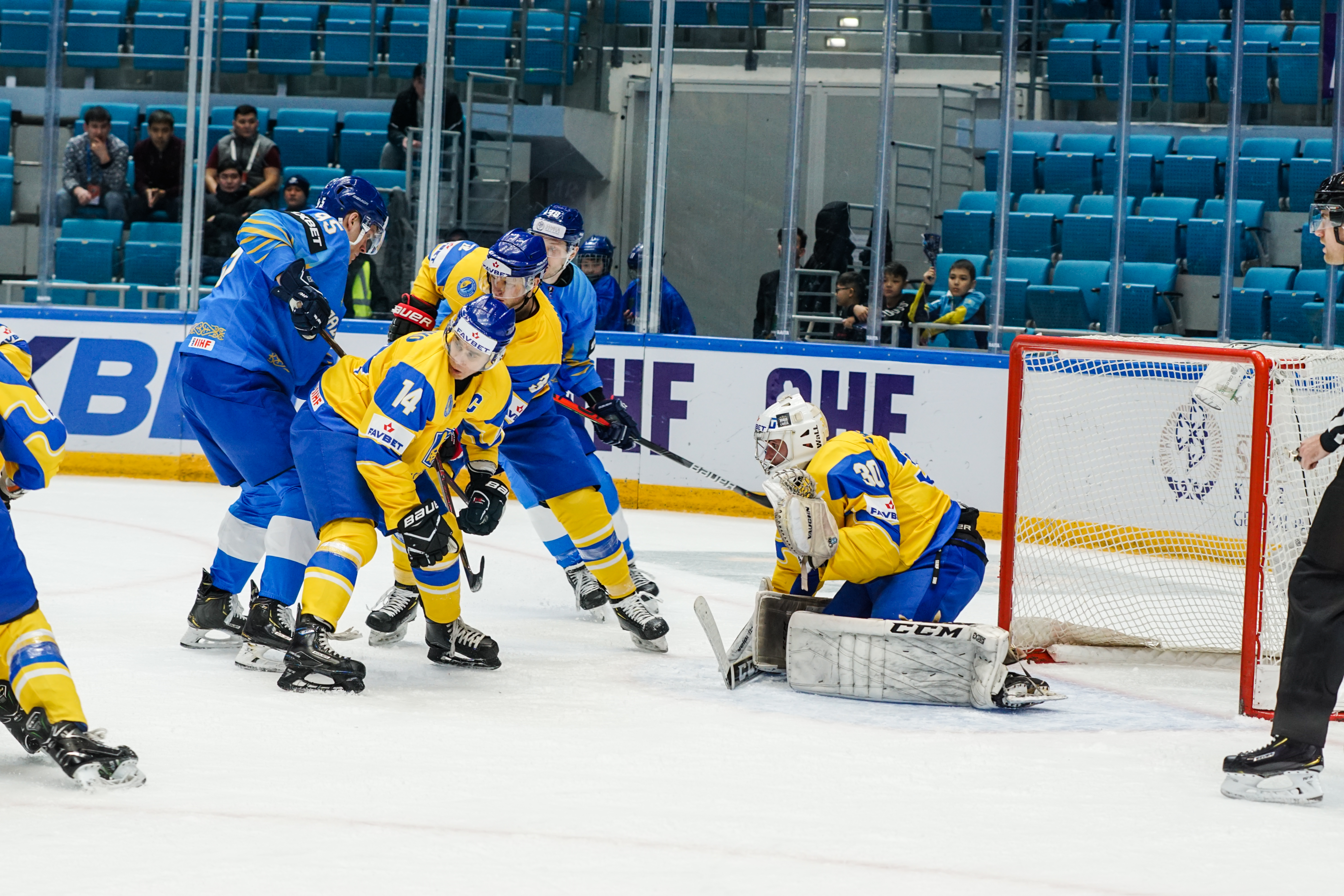 And those forwards weren't going anywhere. The second period was a procession of chances in front of Mykyta Hordiushin, who performed admirably under intense pressure to repeatedly deny more goals. When he was beaten midway through the frame when a Shevchenko touch took a shot away from his glove, the goalie got a helping hand from the post and reacted smartly to drop on the loose puck. As for defensive frailties, Karlsson did not have a shot to save in the middle frame as Kazakhstan turned up the heat on the hard-working Hordiushin.