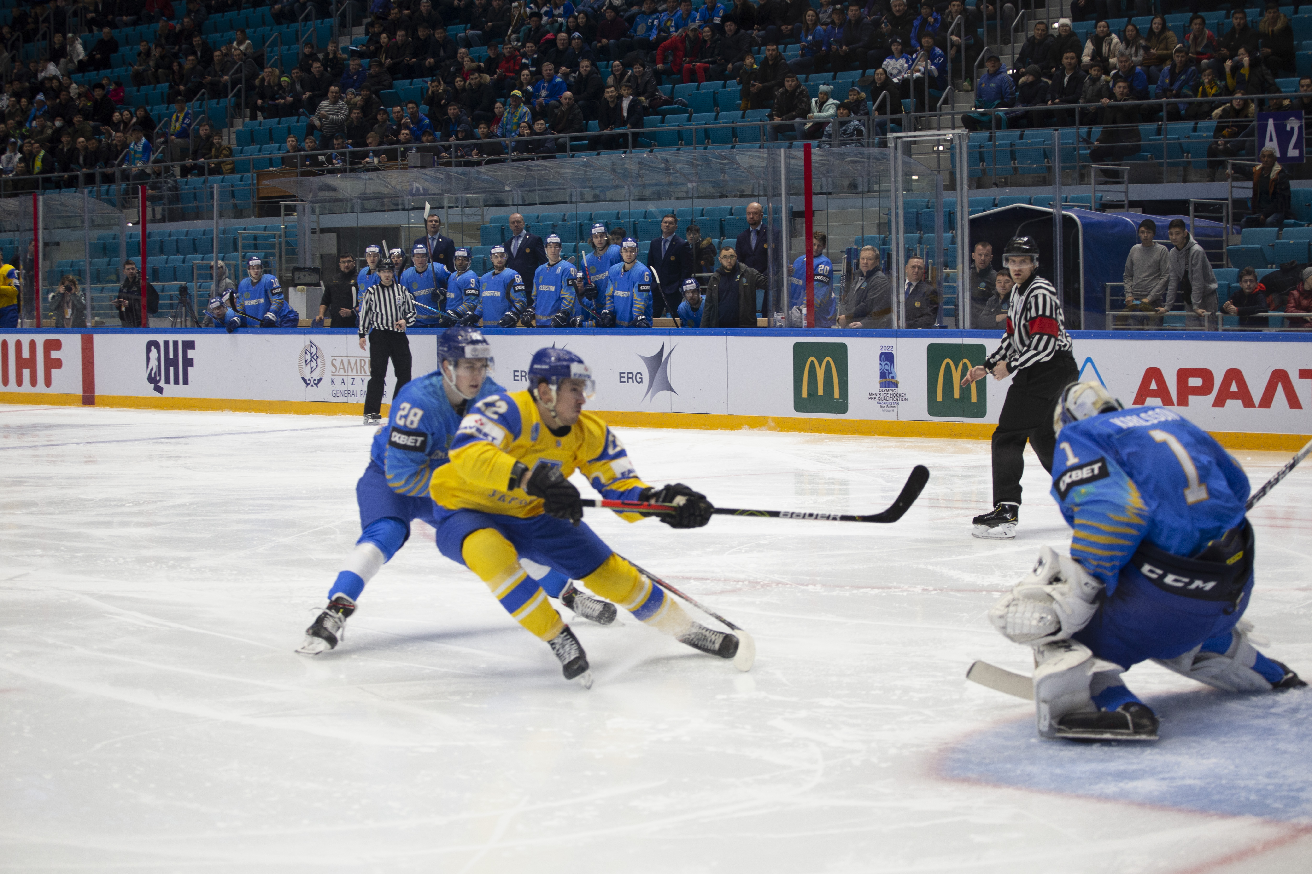 There’s a sense that Kazakh hockey is on the rise. The impressive new Barys Arena saw the national team win promotion back to the Elite Pool in the World Championship last April; in the KHL, Barys Nur-Sultan is riding high in the Eastern Conference. Now it’s time for a bid to get back to the Olympics for the first time since 2006.