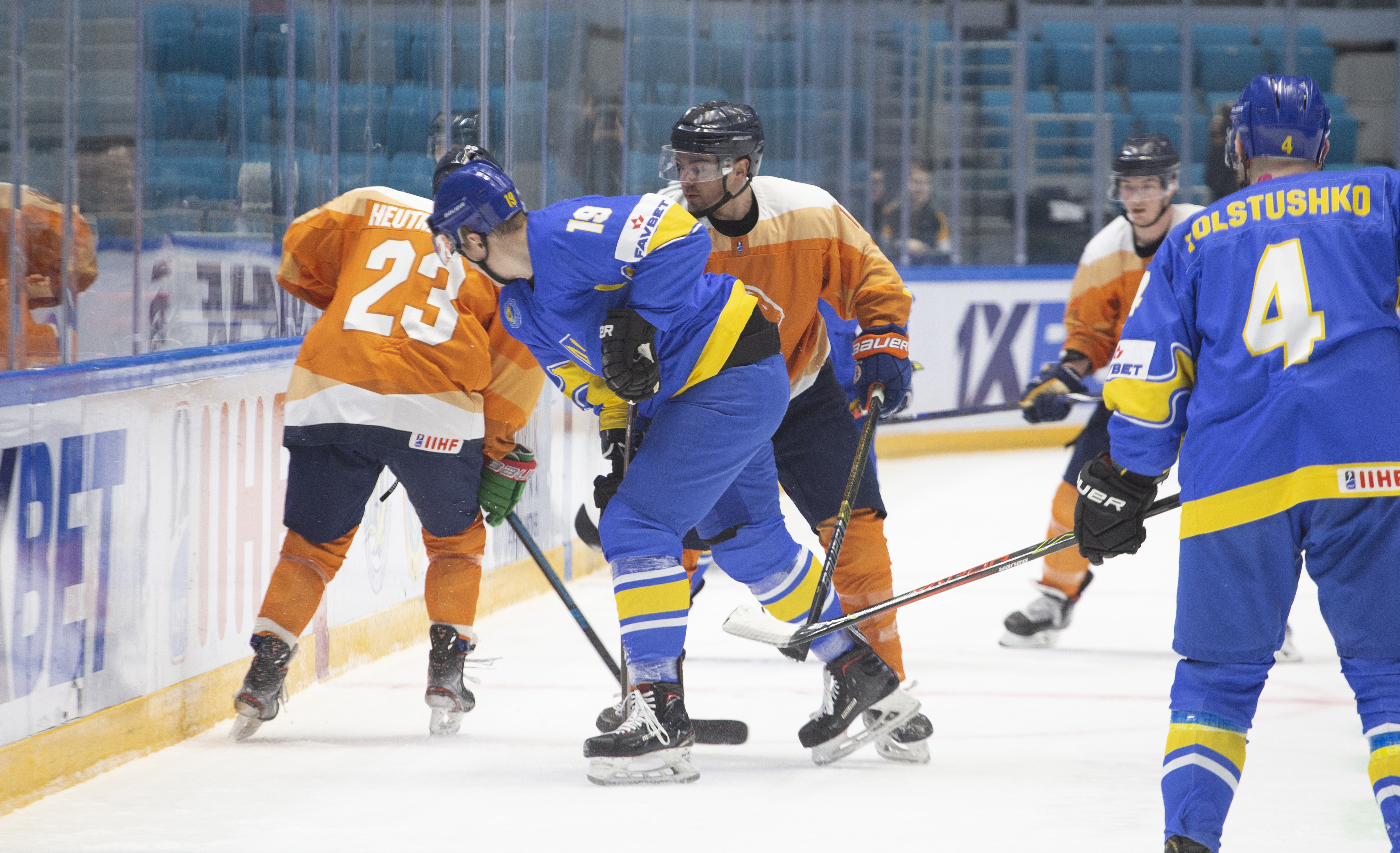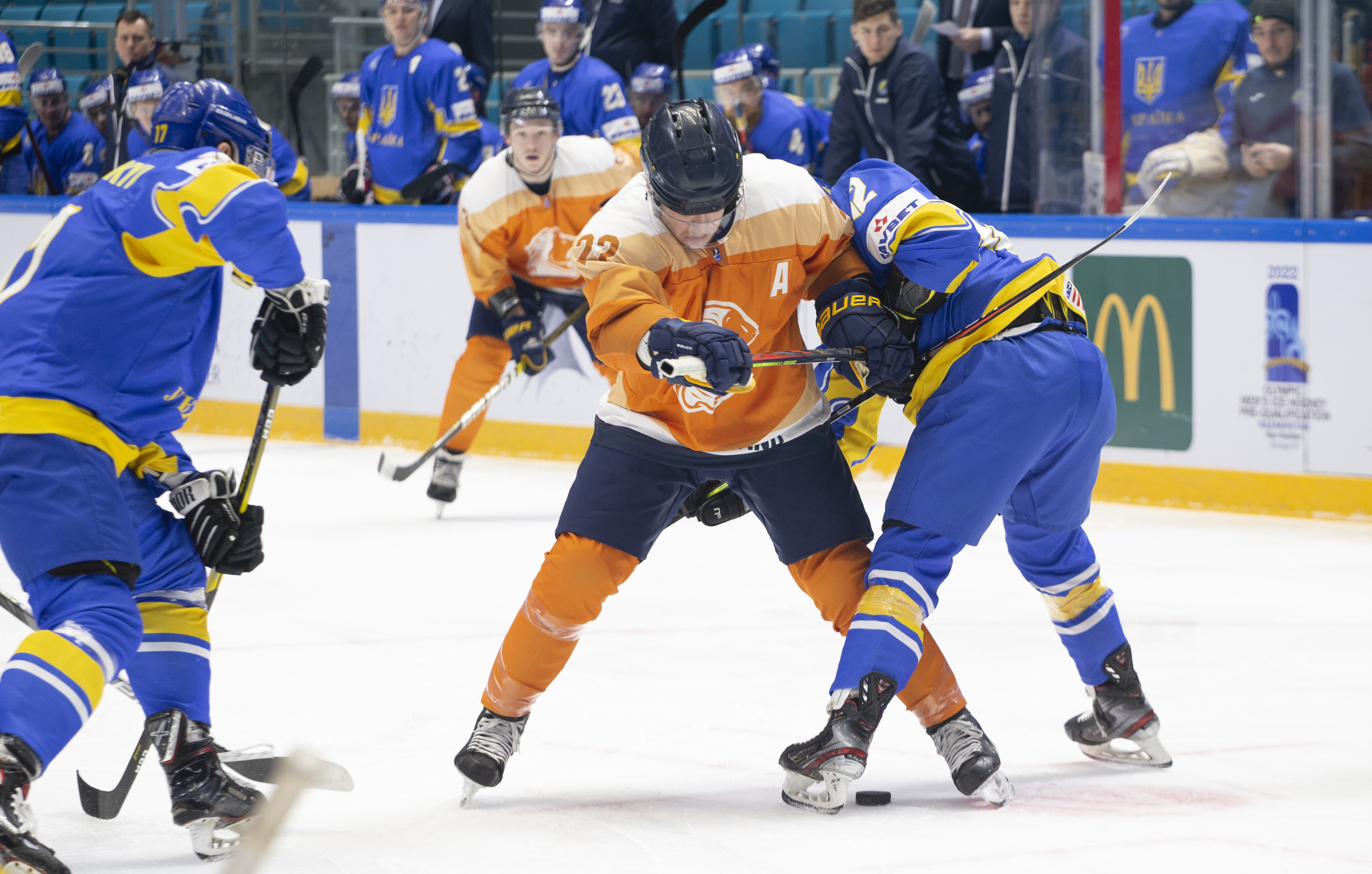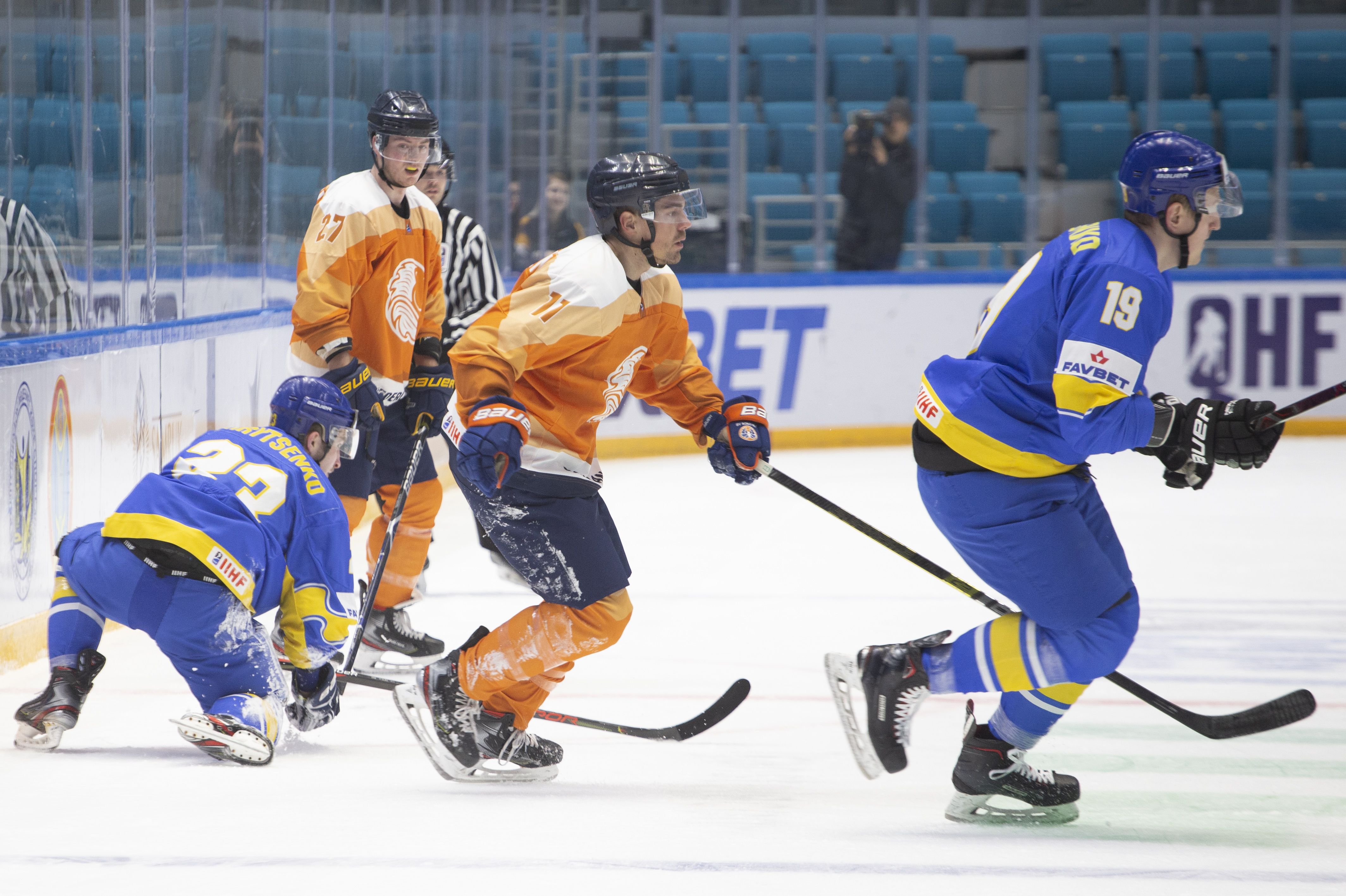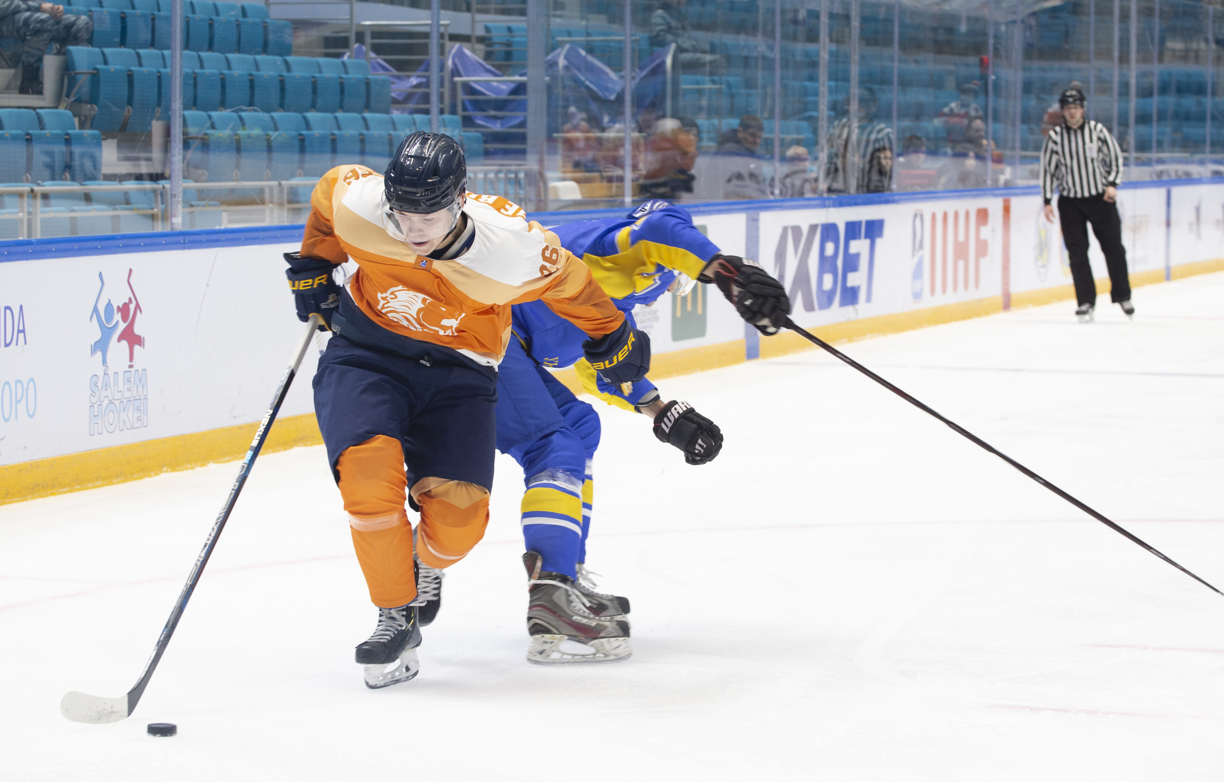 Sunday’s opening game in Nur-Sultan was a battle for pride. Both Ukraine and the Netherlands had suffered heavy losses in their match-ups with Poland and Kazakhstan, but neither wanted to leave without claiming a victory in this tournament. In the event, Ukraine took third place with 19-year-old goalie Artur Ohandzhanyan recording his first shut-out in senior international hockey with 19 saves.