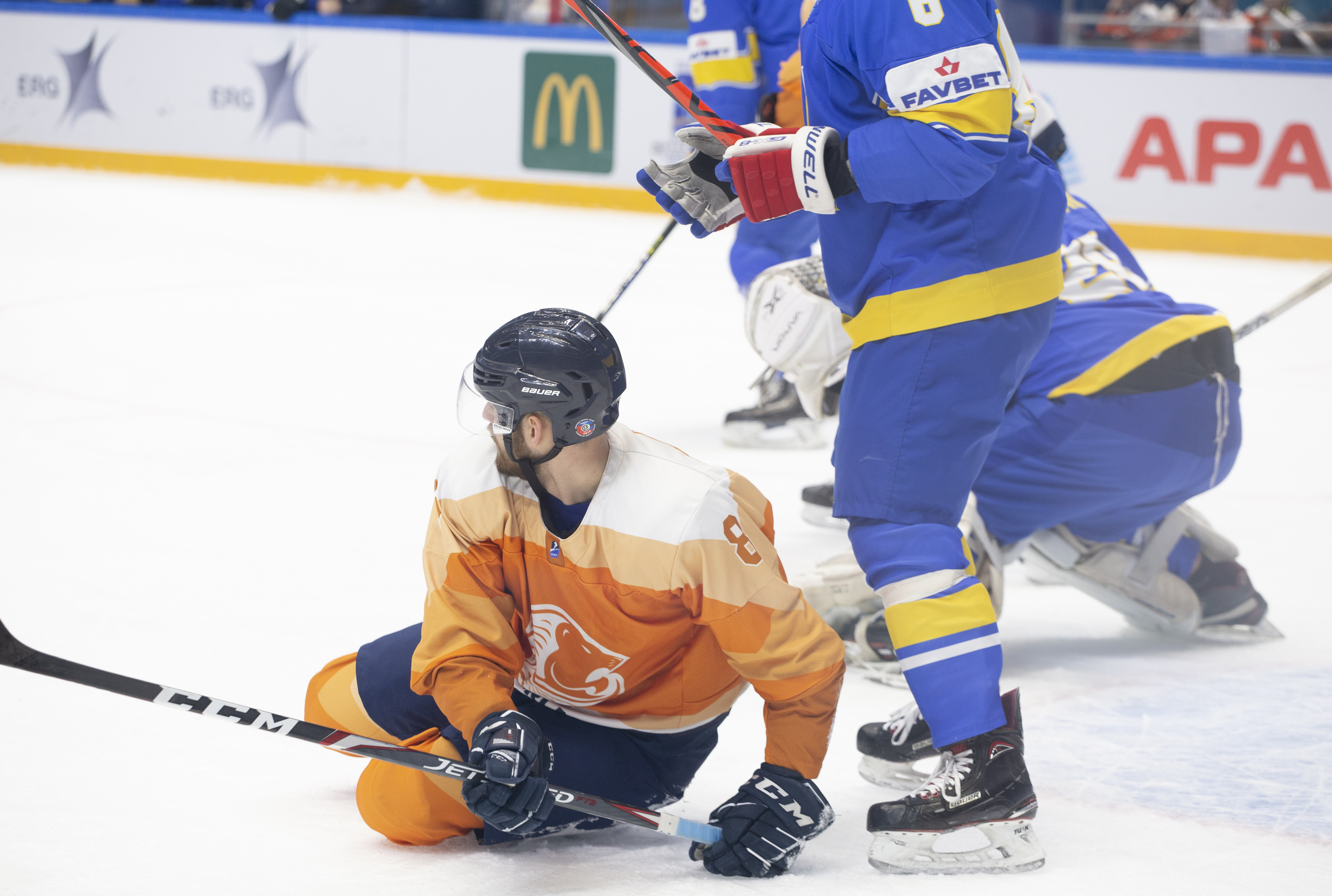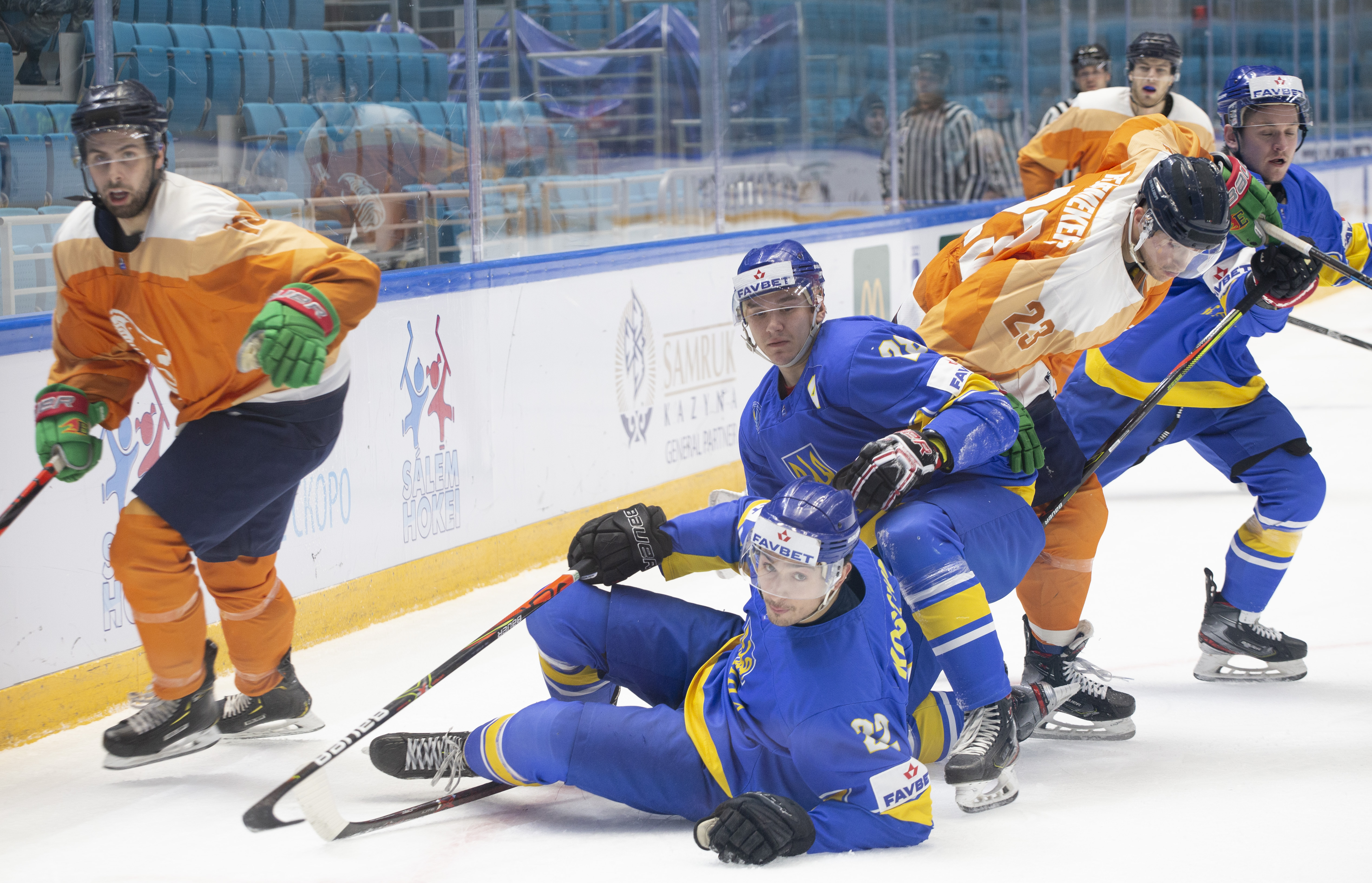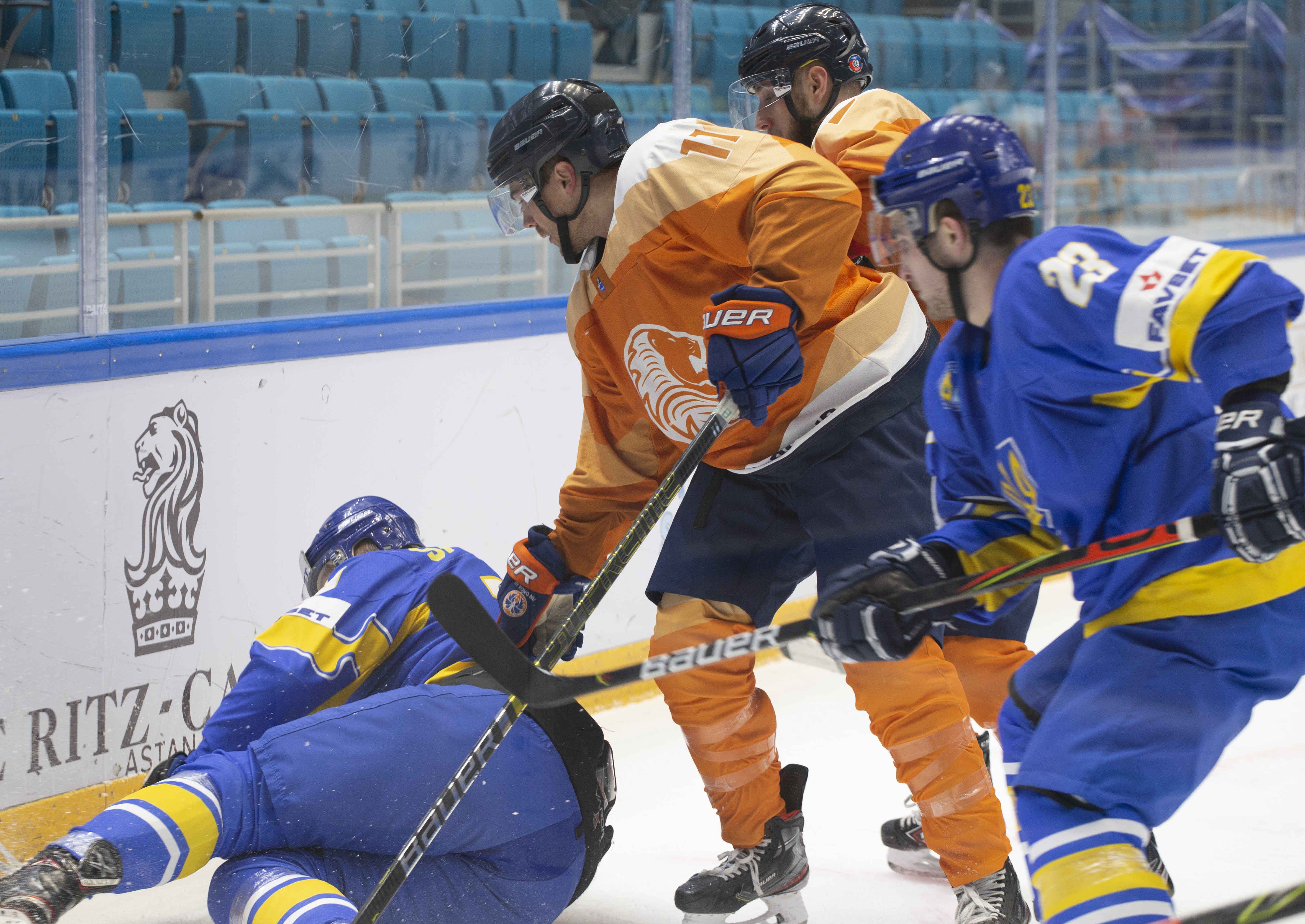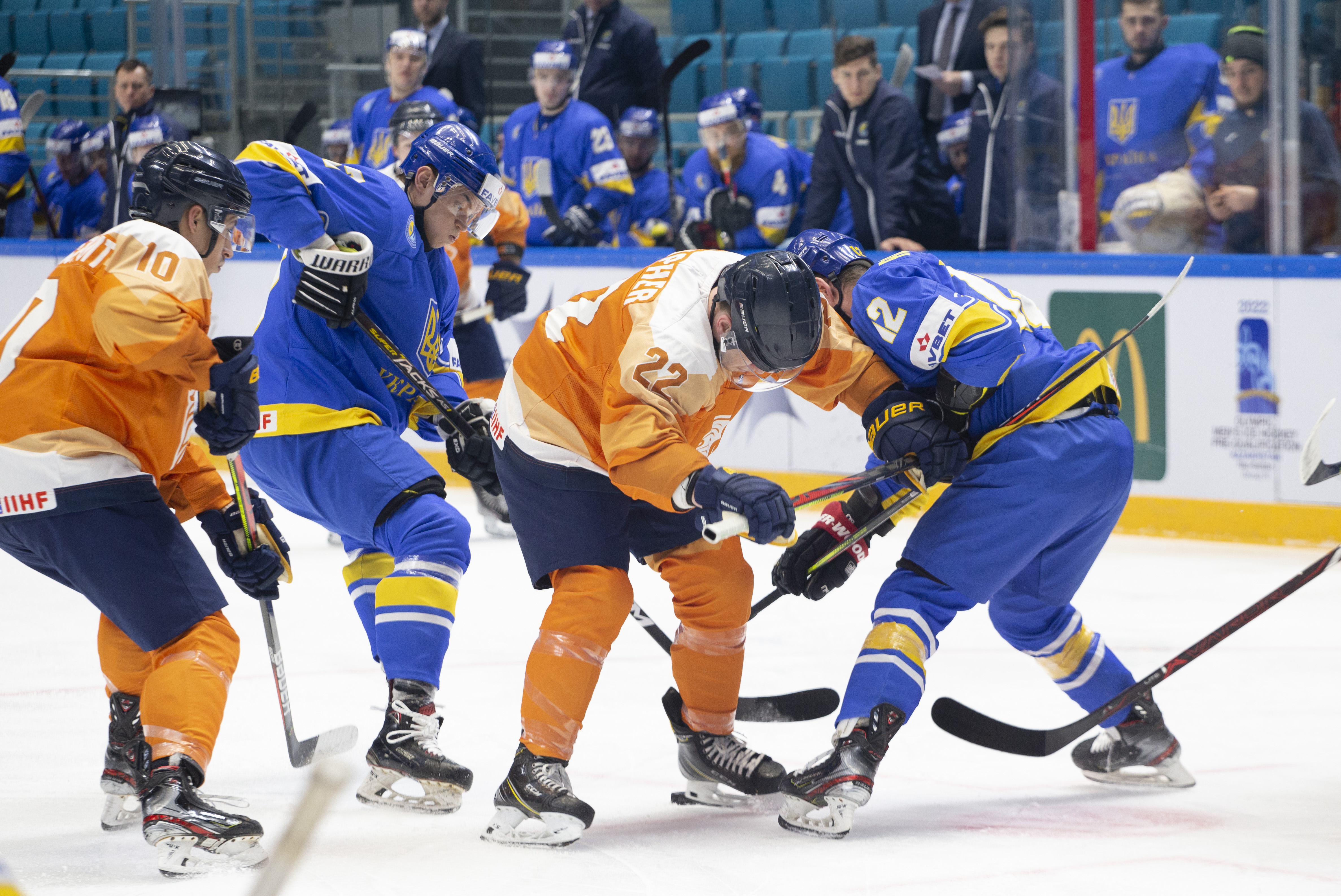Sunday’s opening game in Nur-Sultan was a battle for pride. Both Ukraine and the Netherlands had suffered heavy losses in their match-ups with Poland and Kazakhstan, but neither wanted to leave without claiming a victory in this tournament. In the event, Ukraine took third place with 19-year-old goalie Artur Ohandzhanyan recording his first shut-out in senior international hockey with 19 saves.