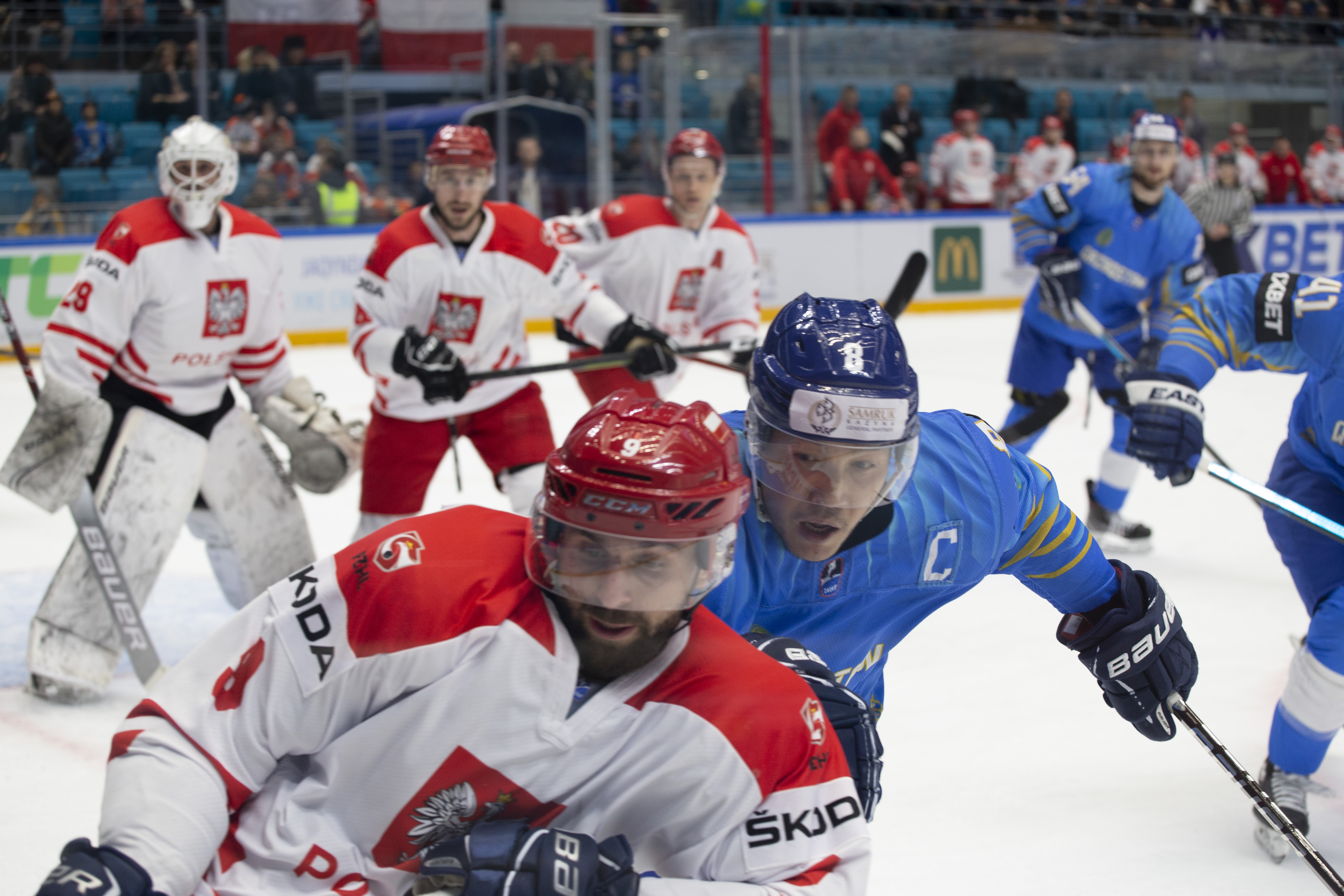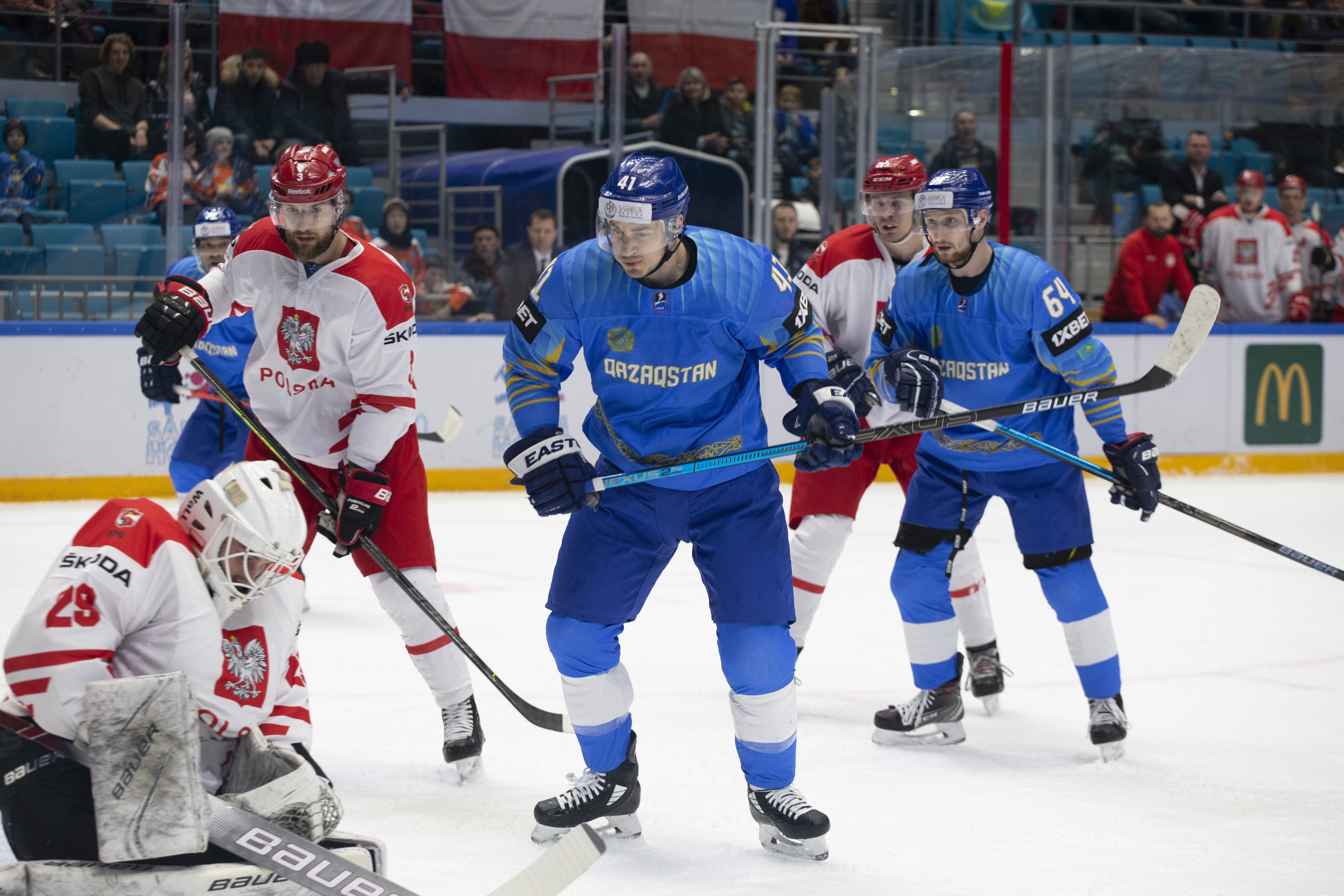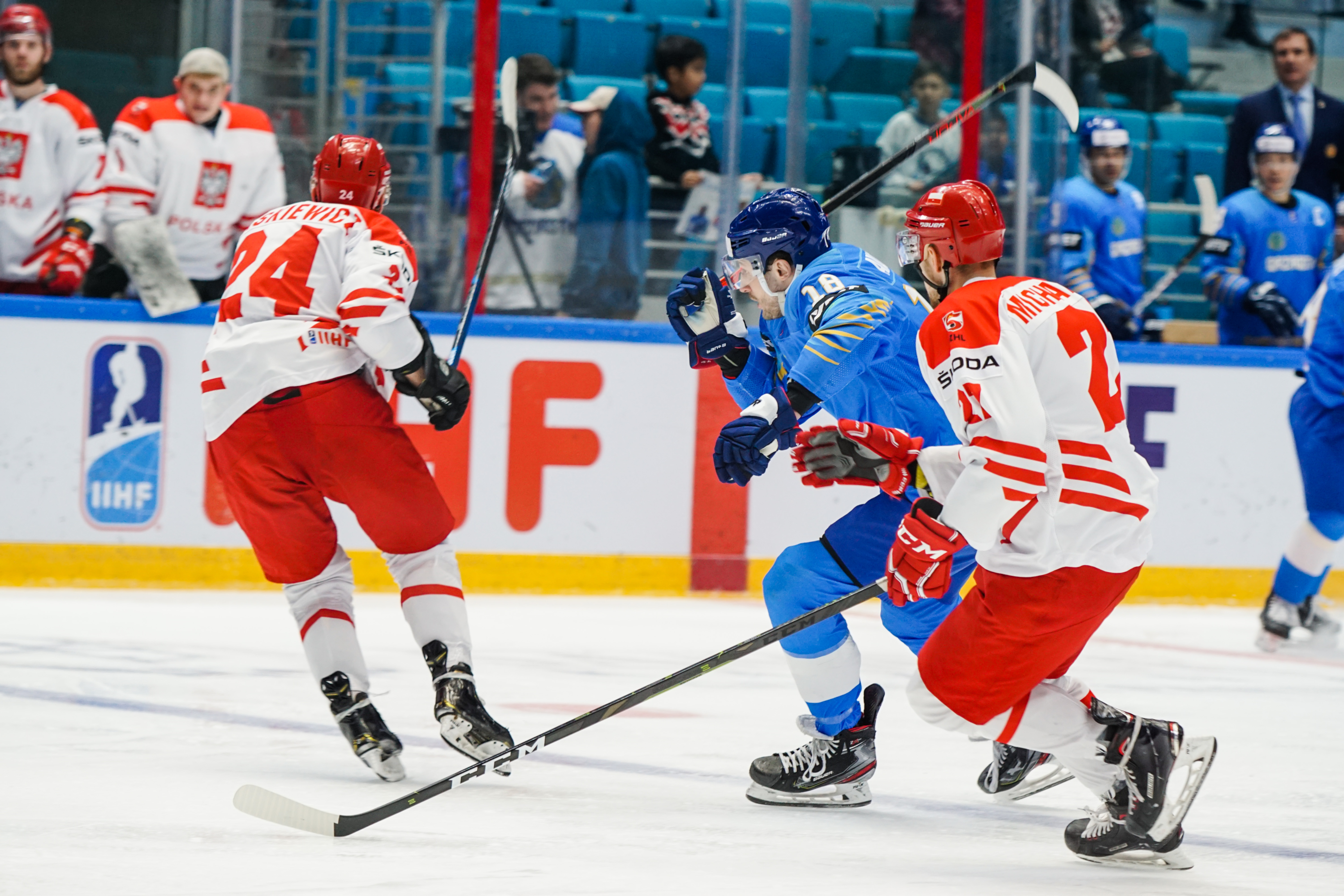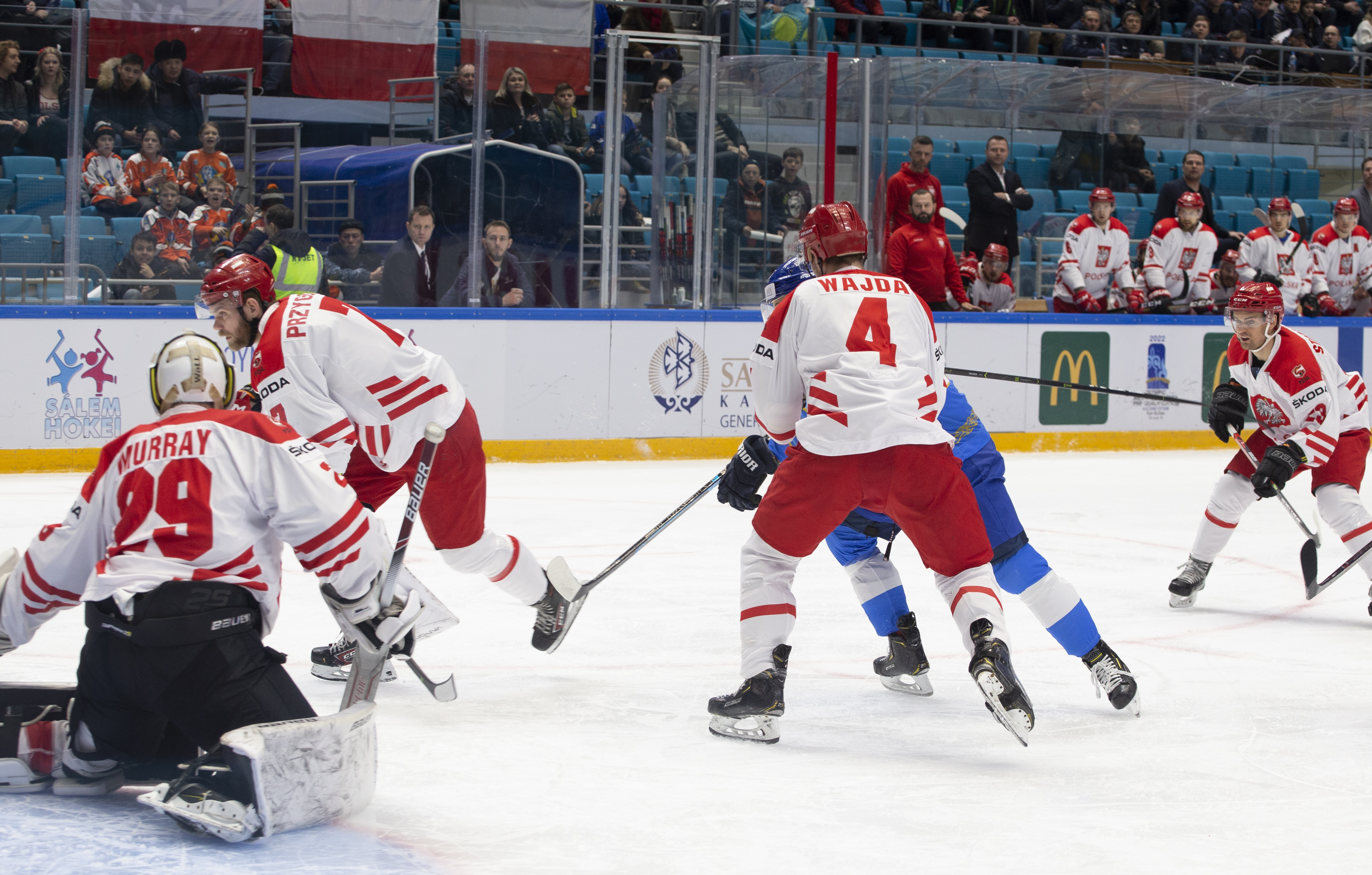 However, there were signs that Poland was weathering the storm. Another power play saw an uncharacteristic fan on a Dawes shot, while the defence defended in a tight square, forcing Kazakhstan to rely on long-range efforts from Darren Dietz rather than allowing the host to carve into the danger zone to ask some bigger questions of Murray.