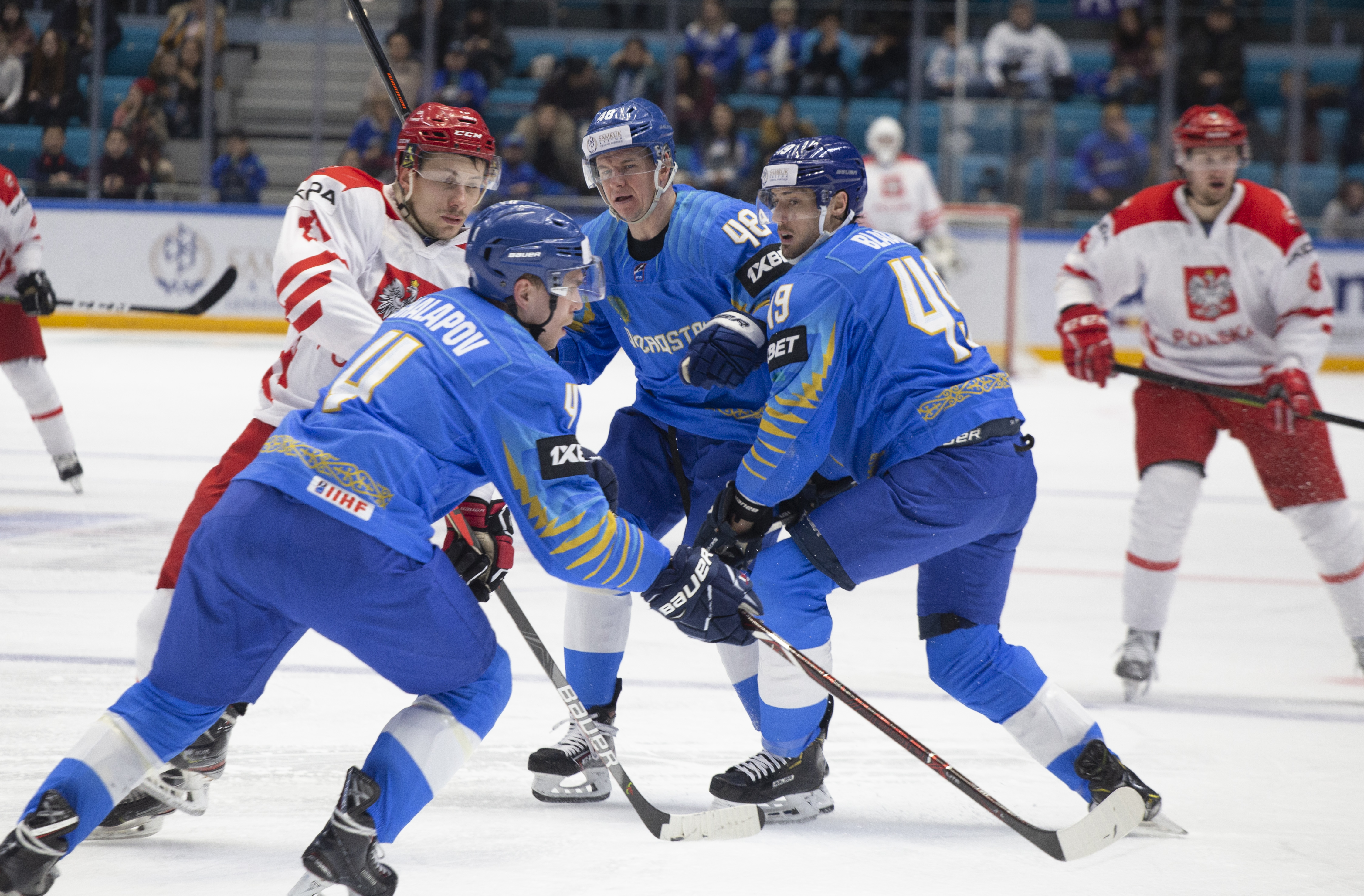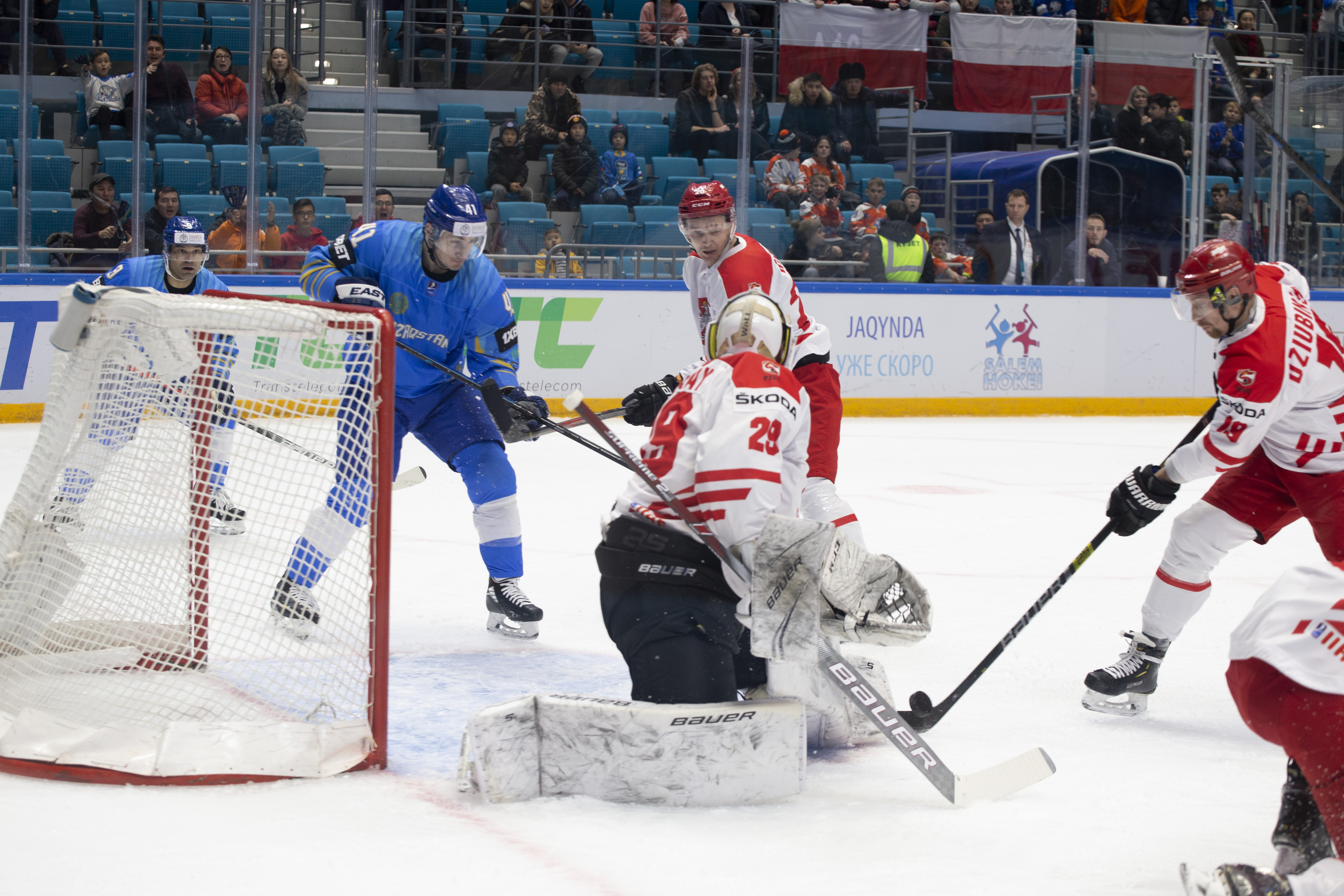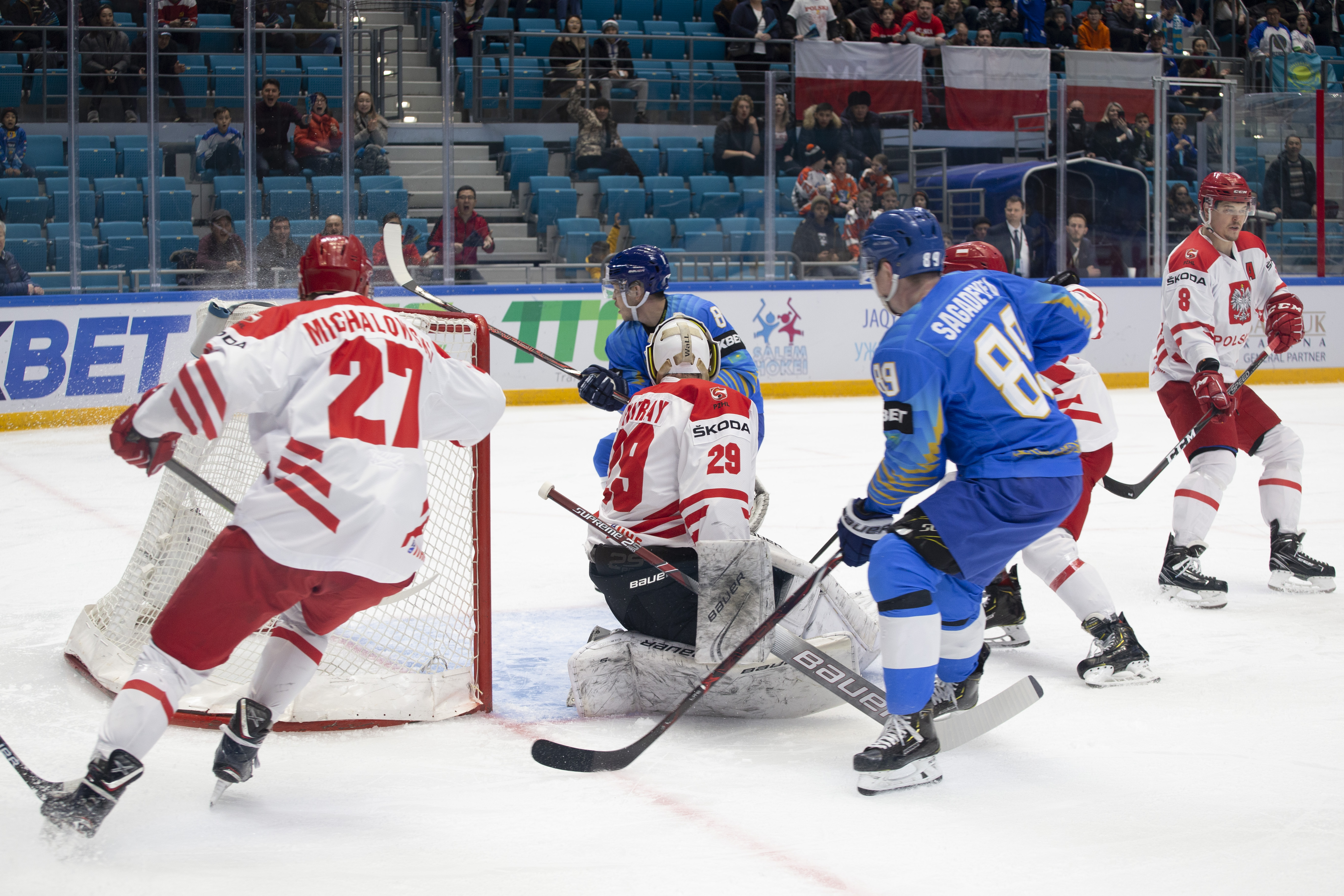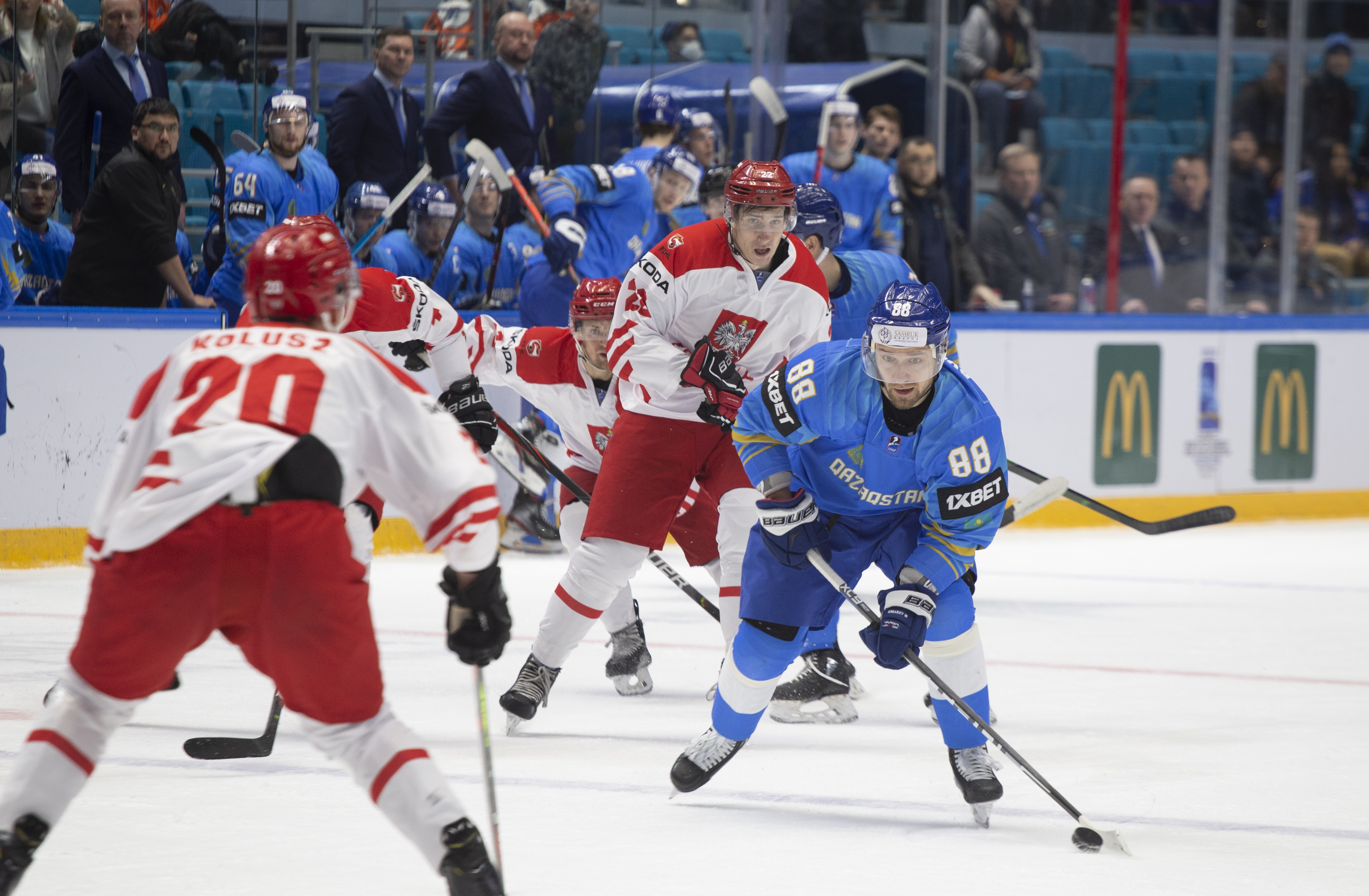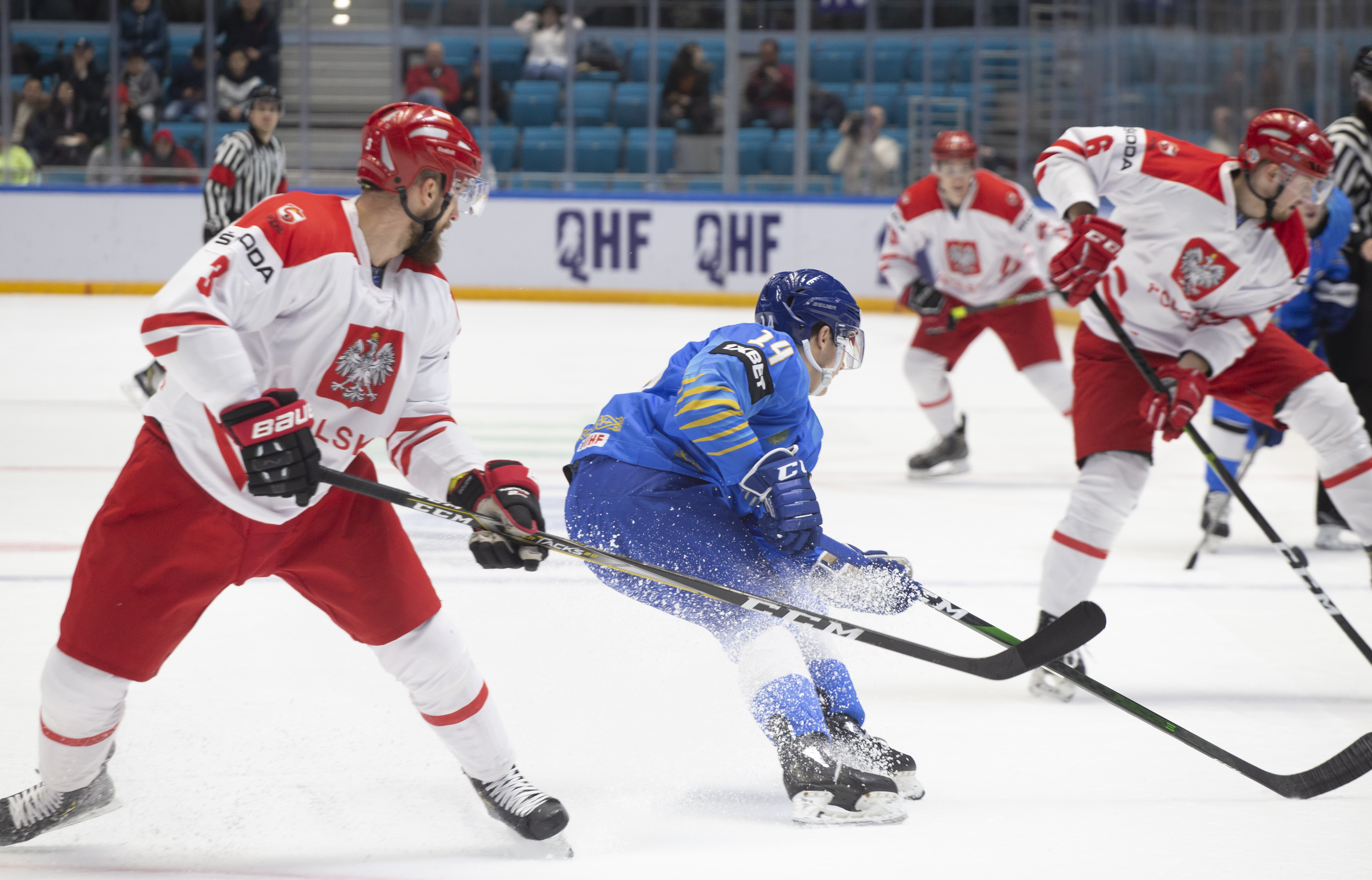 However, there were signs that Poland was weathering the storm. Another power play saw an uncharacteristic fan on a Dawes shot, while the defence defended in a tight square, forcing Kazakhstan to rely on long-range efforts from Darren Dietz rather than allowing the host to carve into the danger zone to ask some bigger questions of Murray.