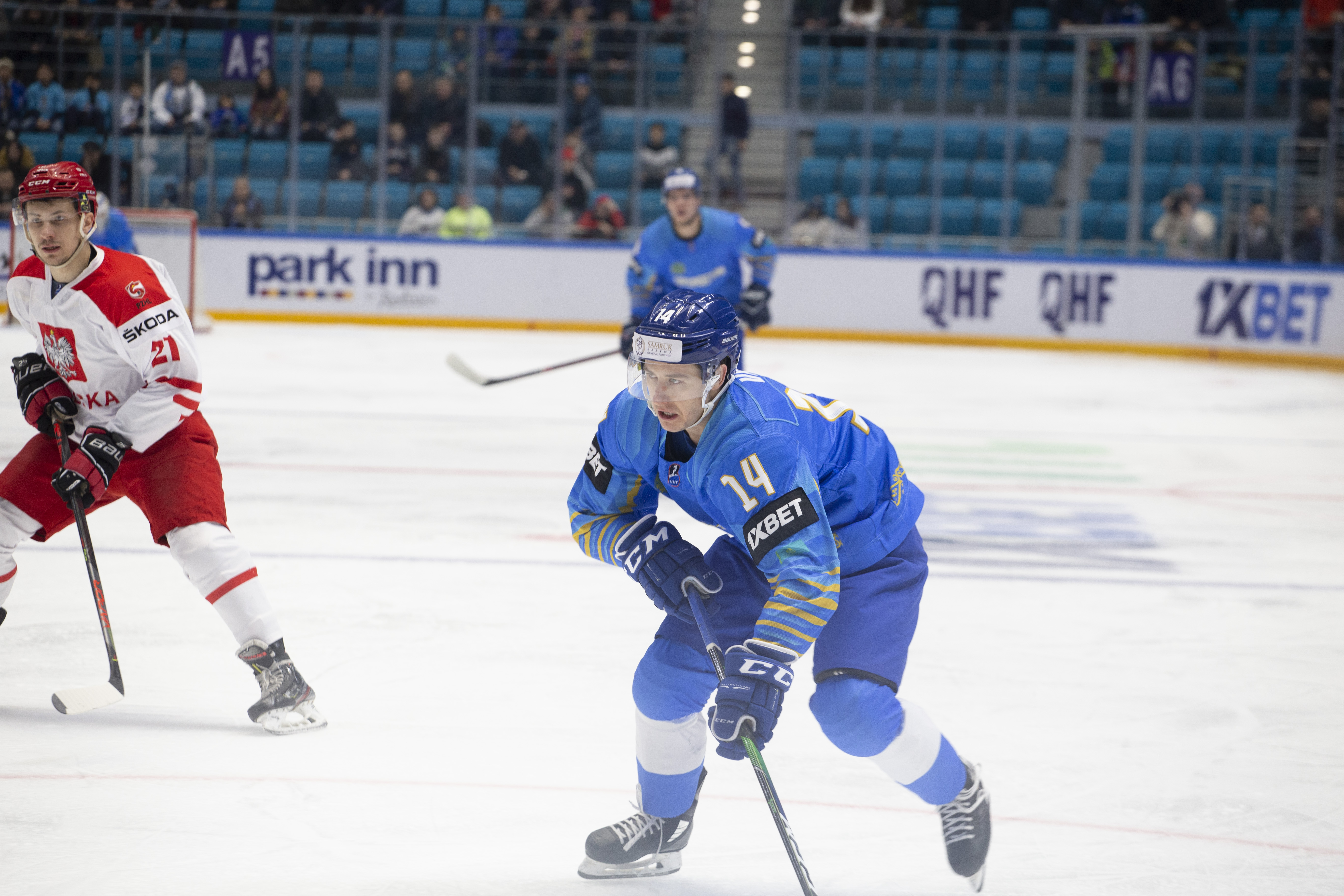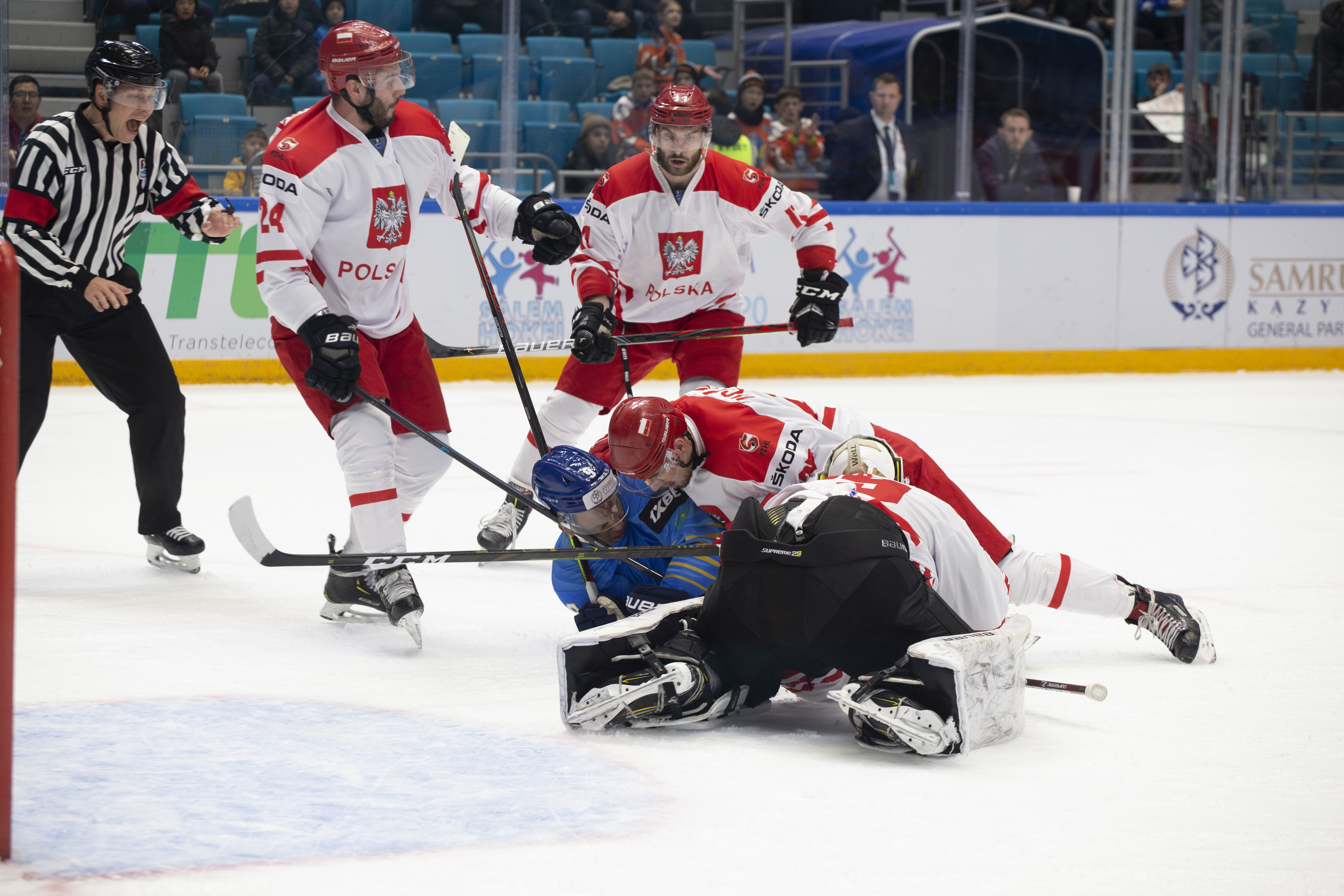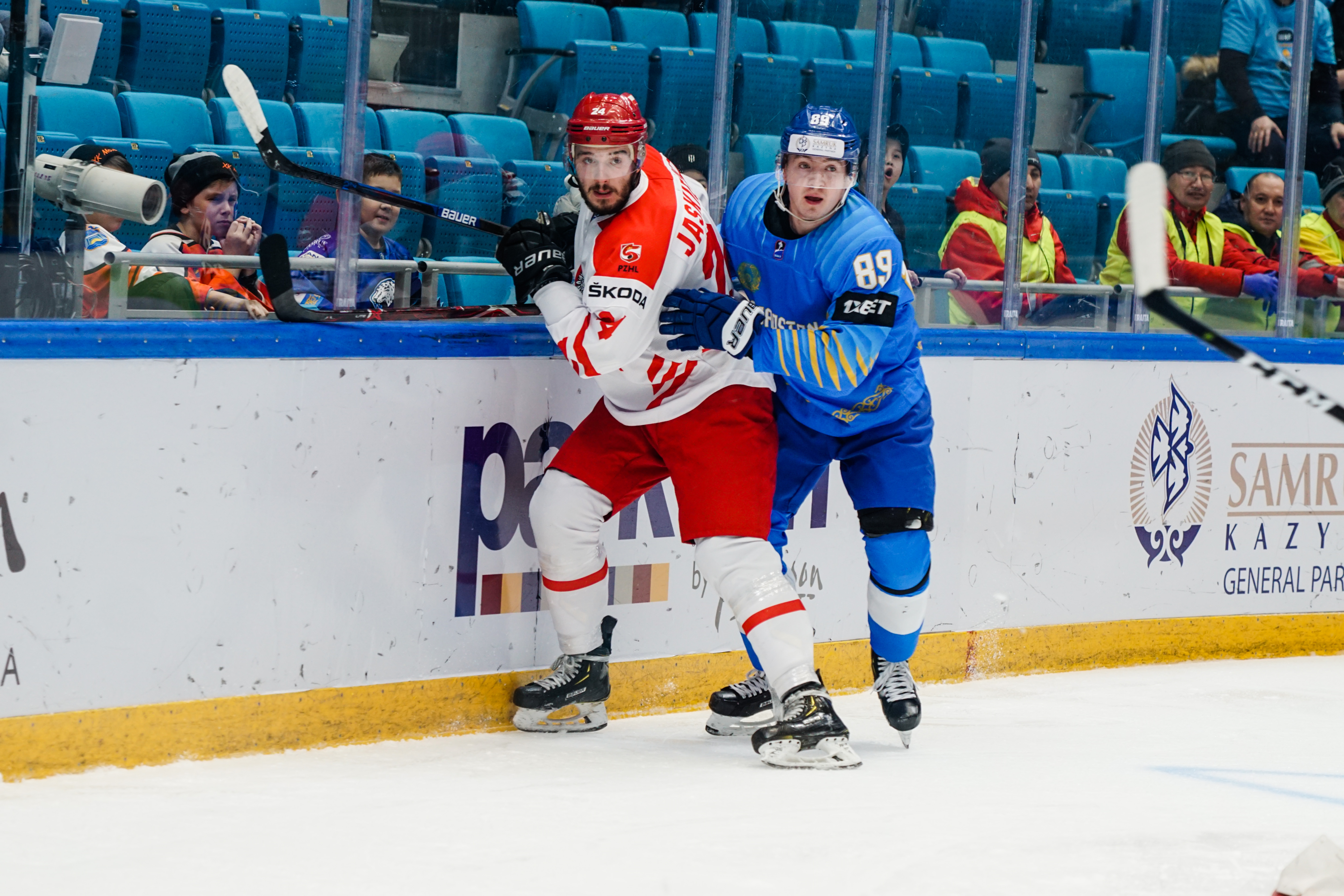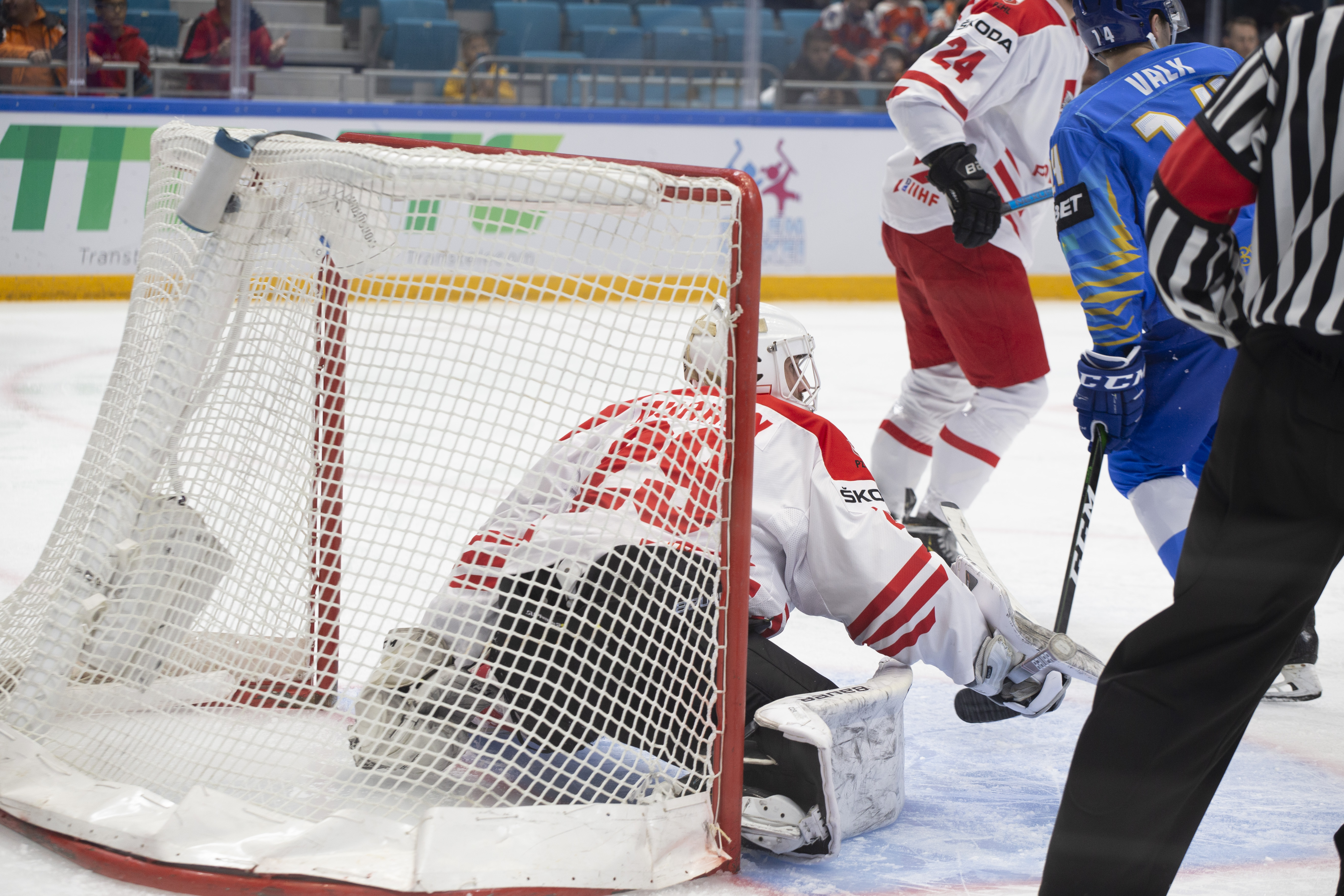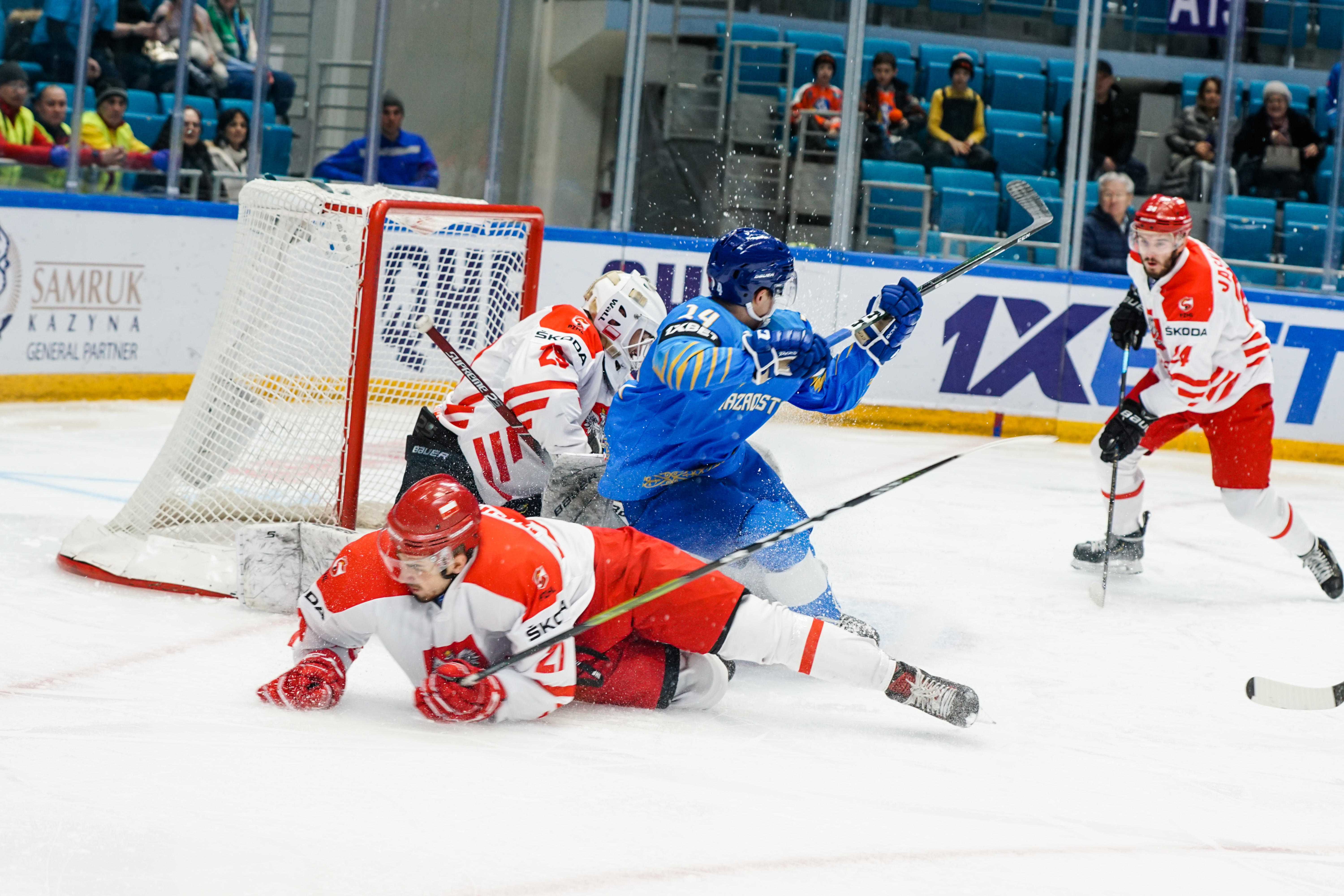 This was to be one his busier first periods: the home offence roared into action, moving the puck around at pace and penning the Poles into their zone. But, unlike the previous games, not scoring. Whether it was a Curtis Valk rush all the way to the paint or a shot from Yegor Petukhov that bounced off a Polish skate and off the post to safety, Kazakhstan was close, but not close enough.
