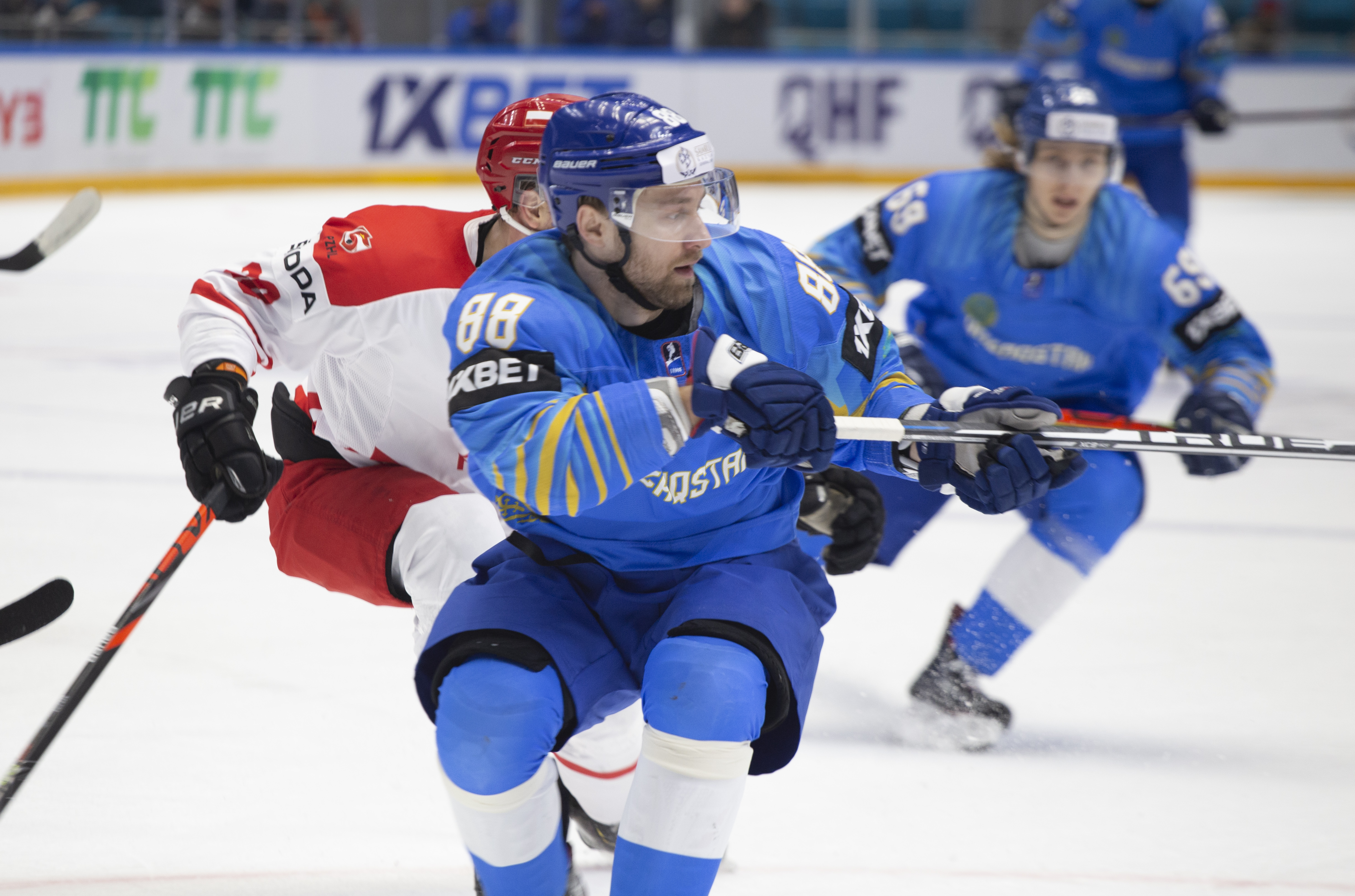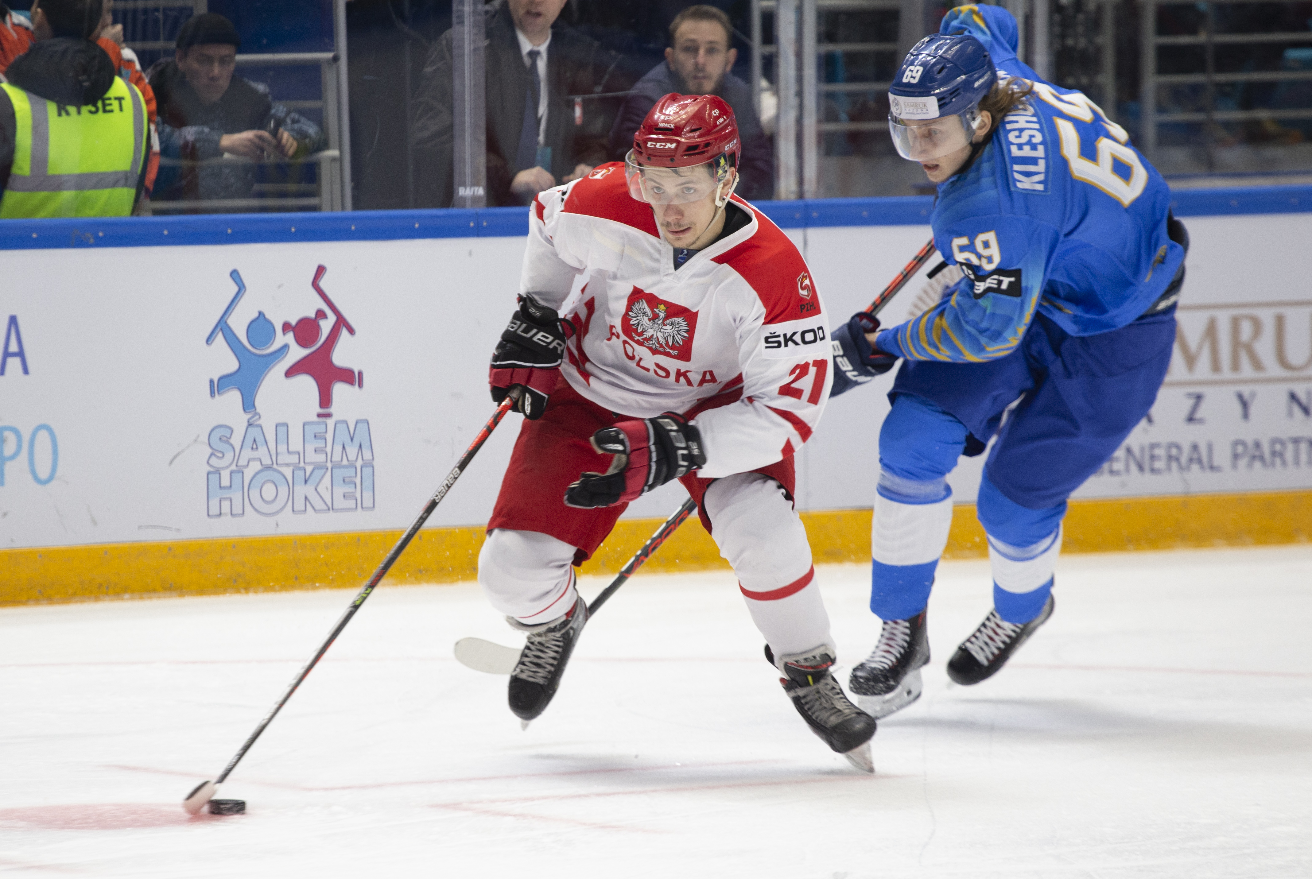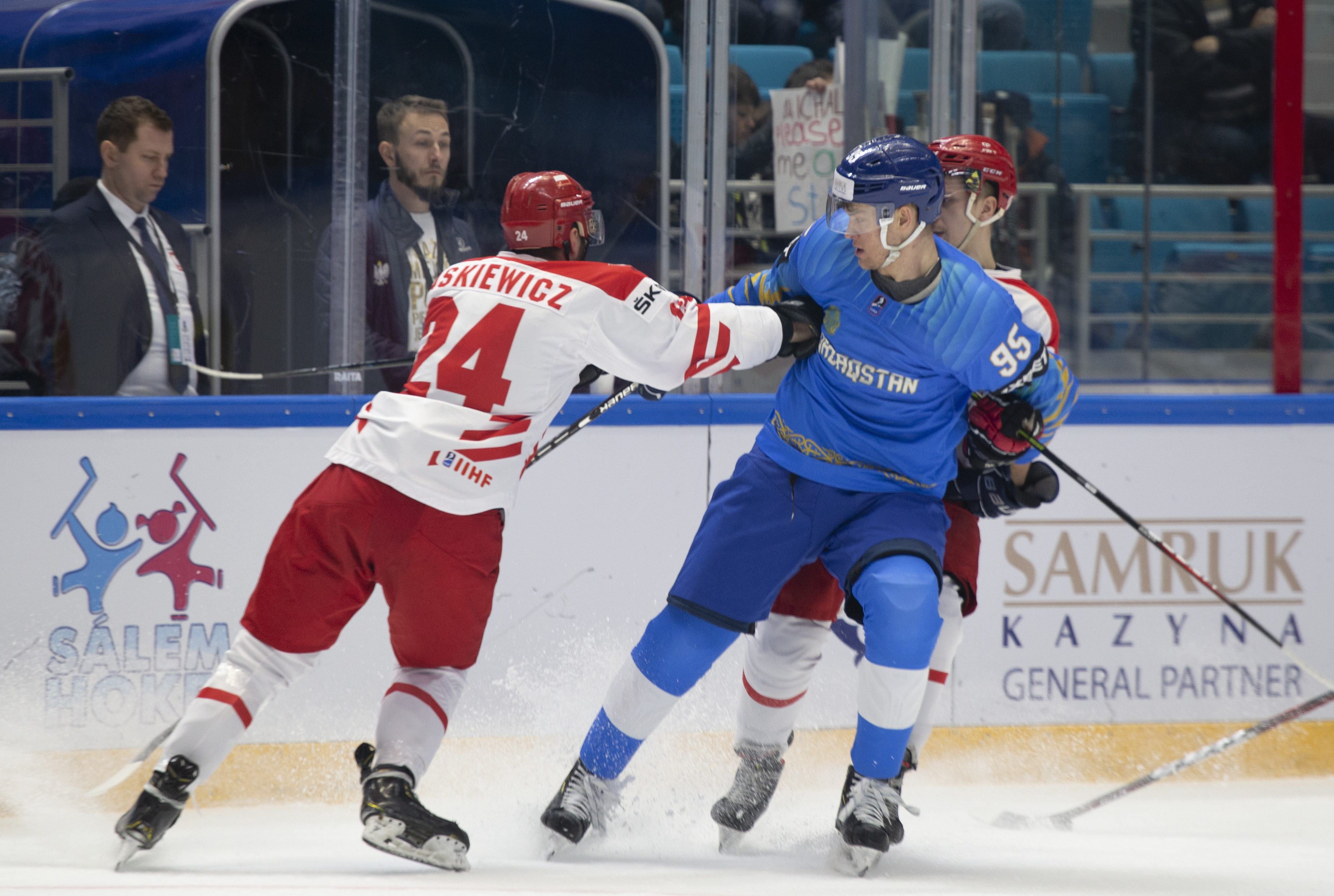 Once again, it was a question of whether Polish endurance could outlast Kazakh flair. The game followed the same pattern as before, with the home side enjoying the bulk of the play and Poland limited to counter-attacks. A Kazakh power play midway through the third saw Dustin Boyd twice fail to connect with straightforward chances, but with both teams tiring, the Polish PK was unable to maintain its shape as effectively as before.