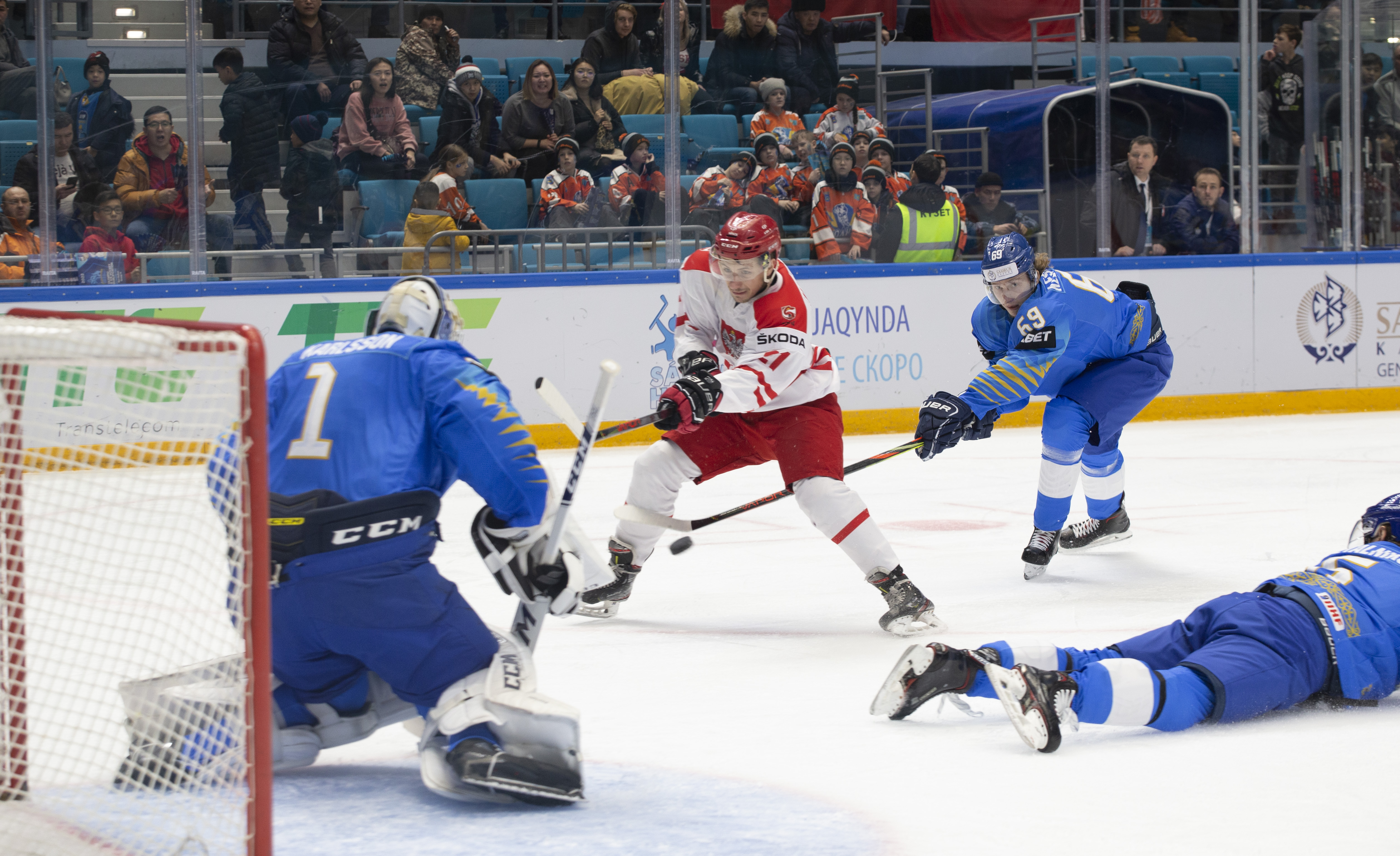 And Komorski played a key role in the first minute of the third period as Poland stunned the Kazakhs by retaking the lead. His shot crashed against the inside of Karlsson’s post and the goalie was left helpless as it dropped straight onto Maciej Urbanowicz’s stick in front of a gaping net.