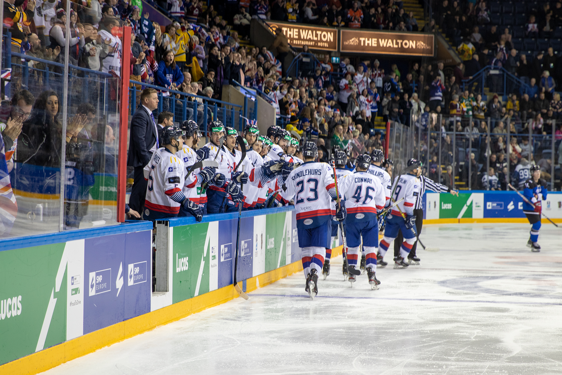 Following a scoreless first period, Great Britain got on the board two minutes into the second frame, as Brett Perlini getting position in front of the net to tip in a shot by David Phillips.