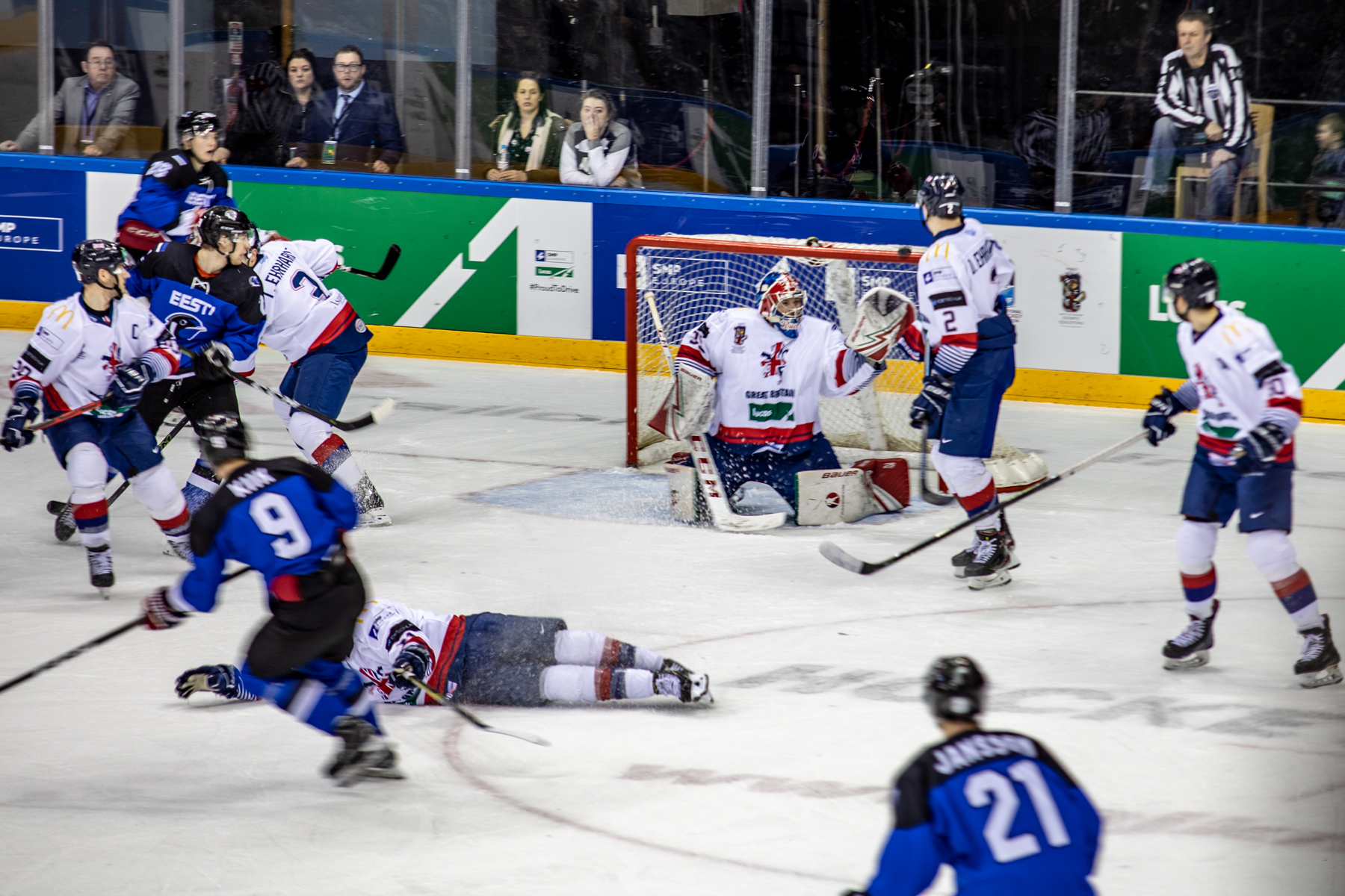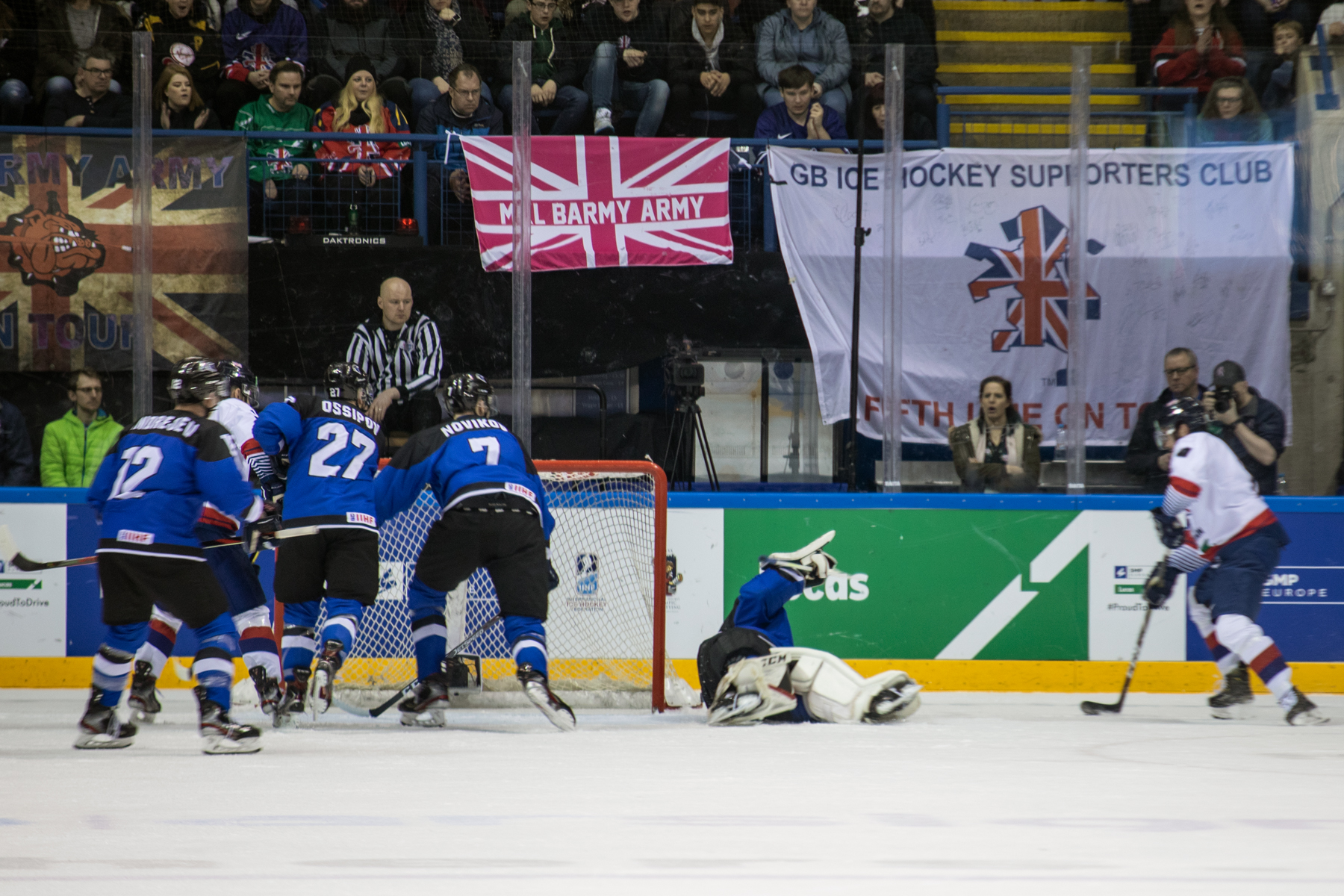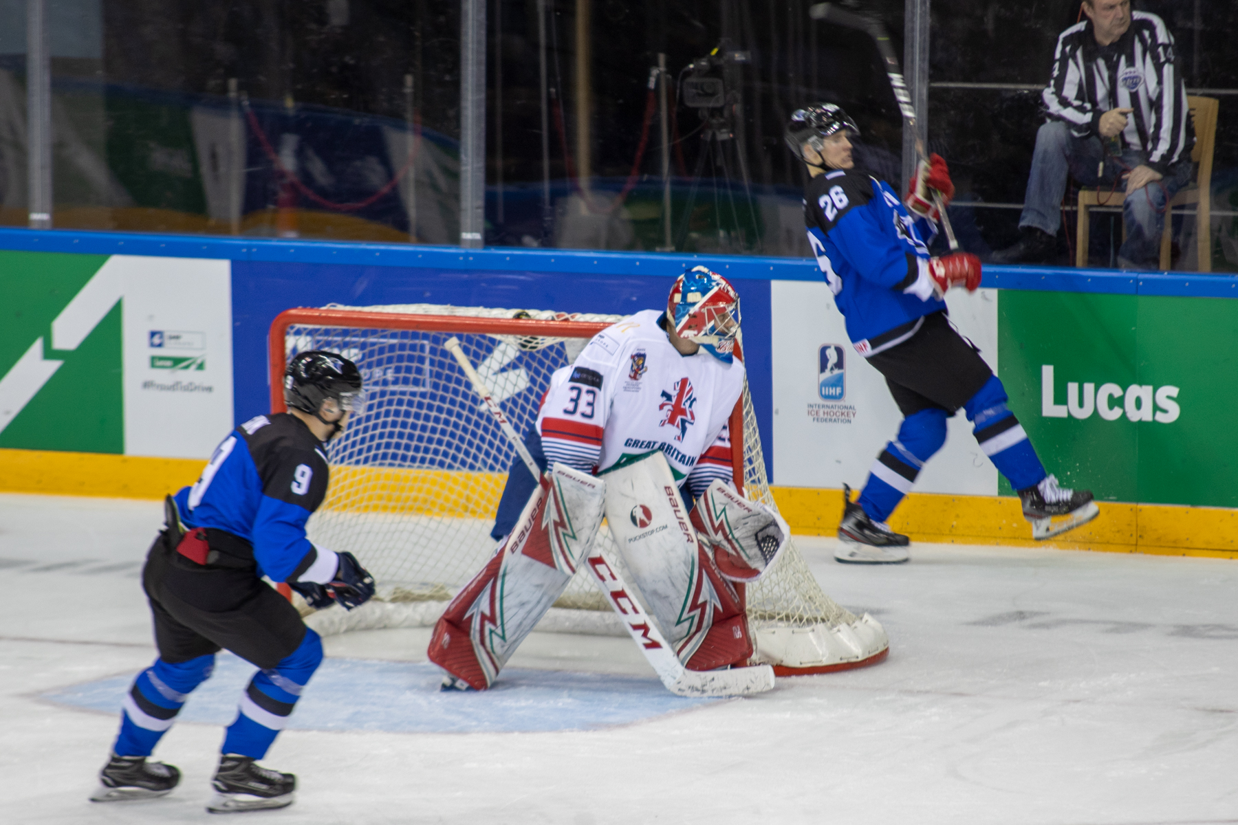 The game was tight in the first period. The Estonians weathered some early pressure from Great Britain and began to generate some scoring chances by clogging up the neutral zone and forcing a few turnovers and scoring chances on the home team.