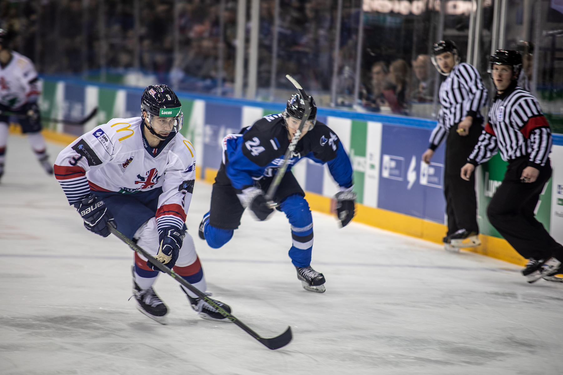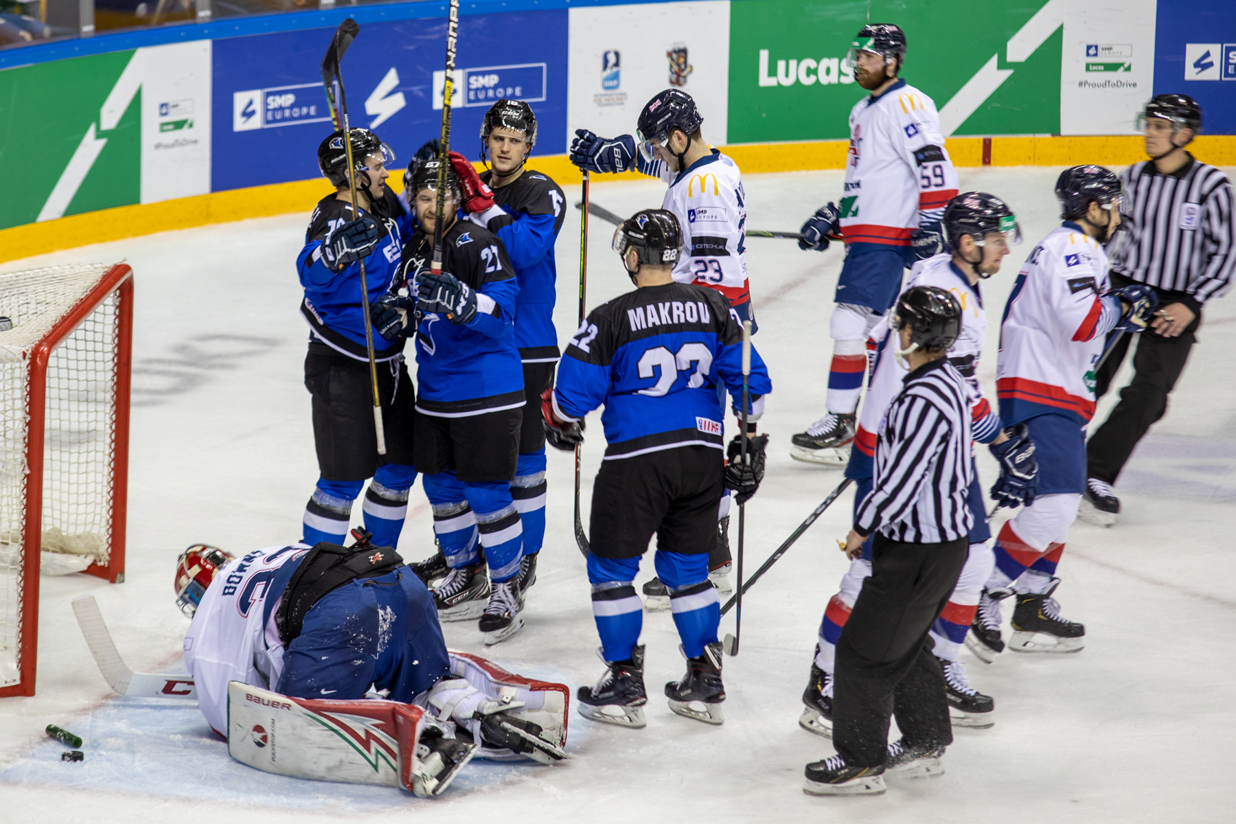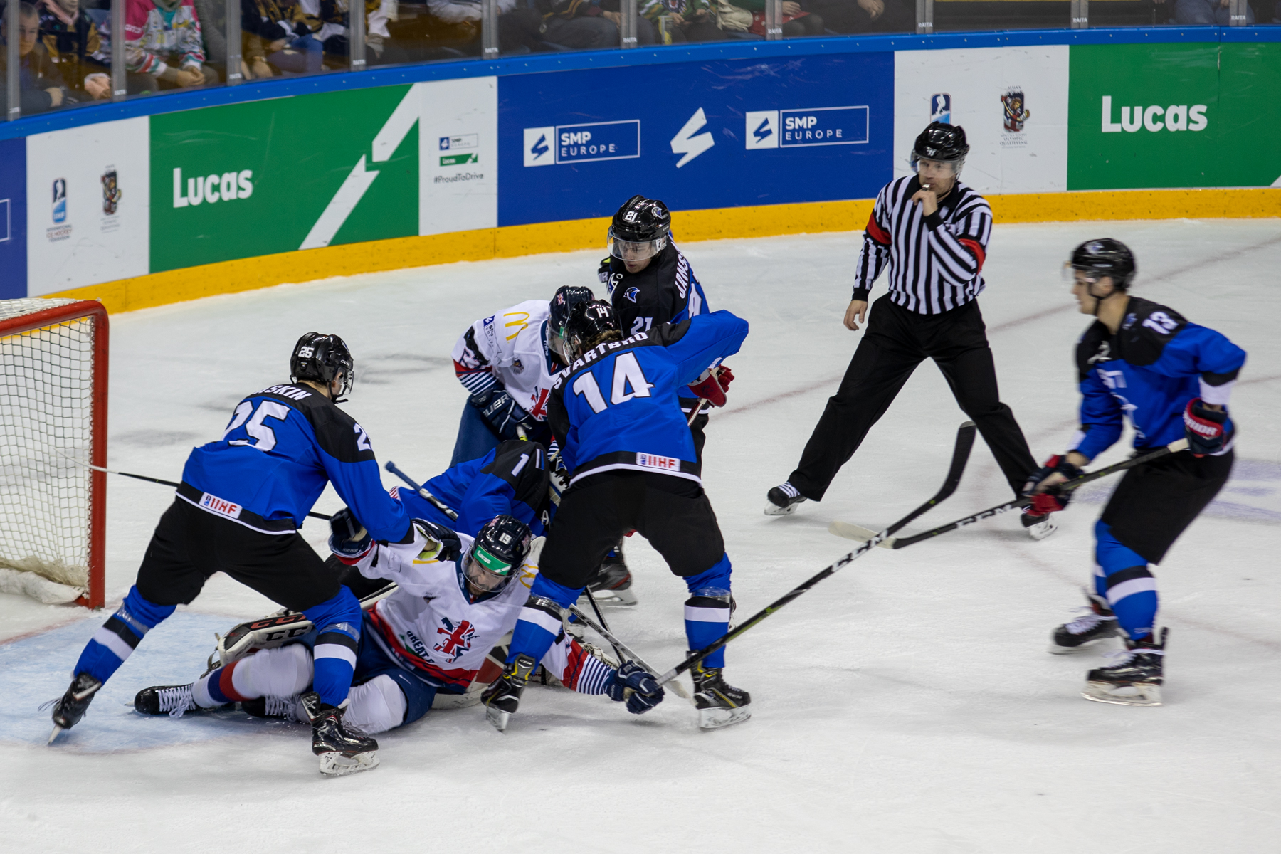 The game was tight in the first period. The Estonians weathered some early pressure from Great Britain and began to generate some scoring chances by clogging up the neutral zone and forcing a few turnovers and scoring chances on the home team.