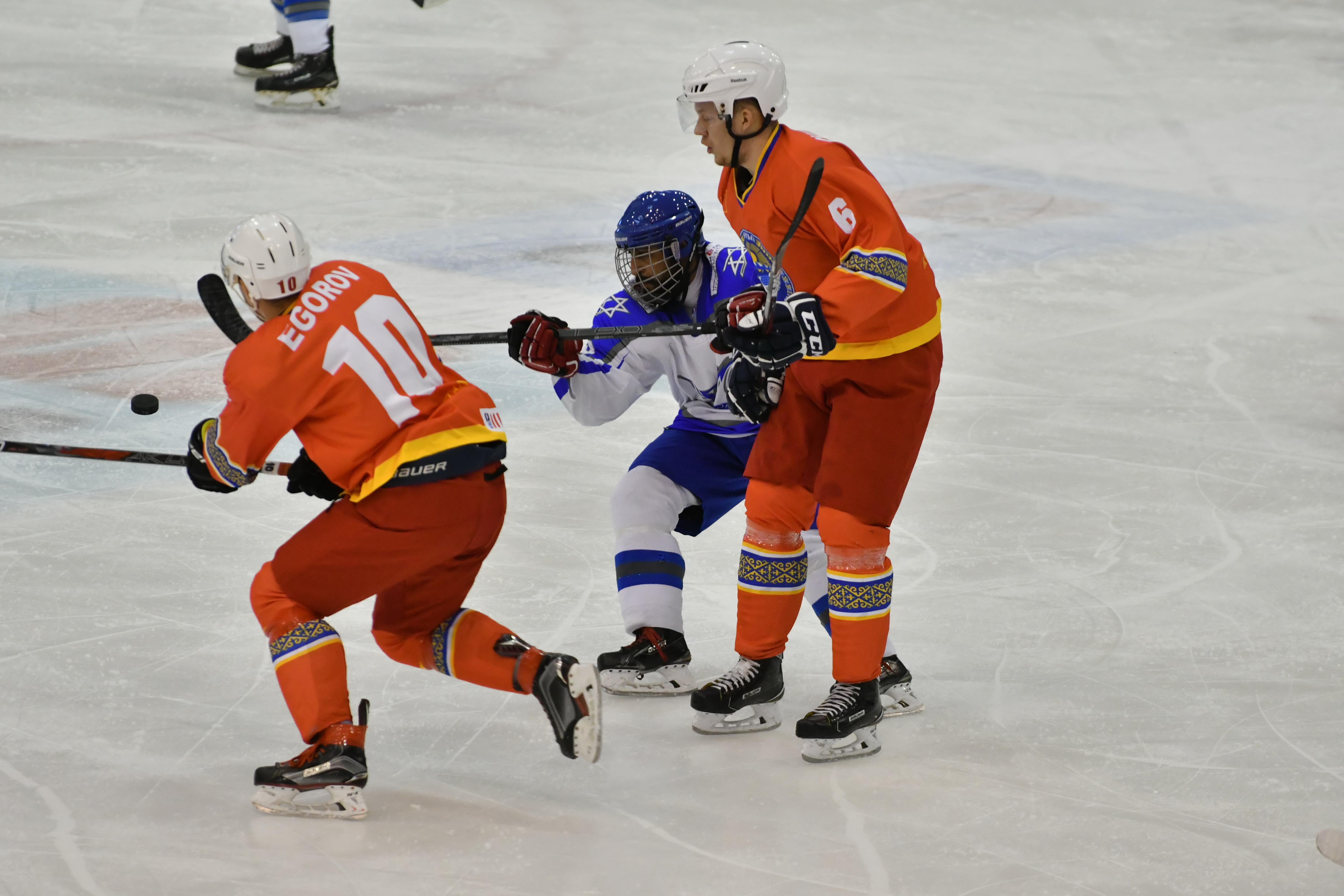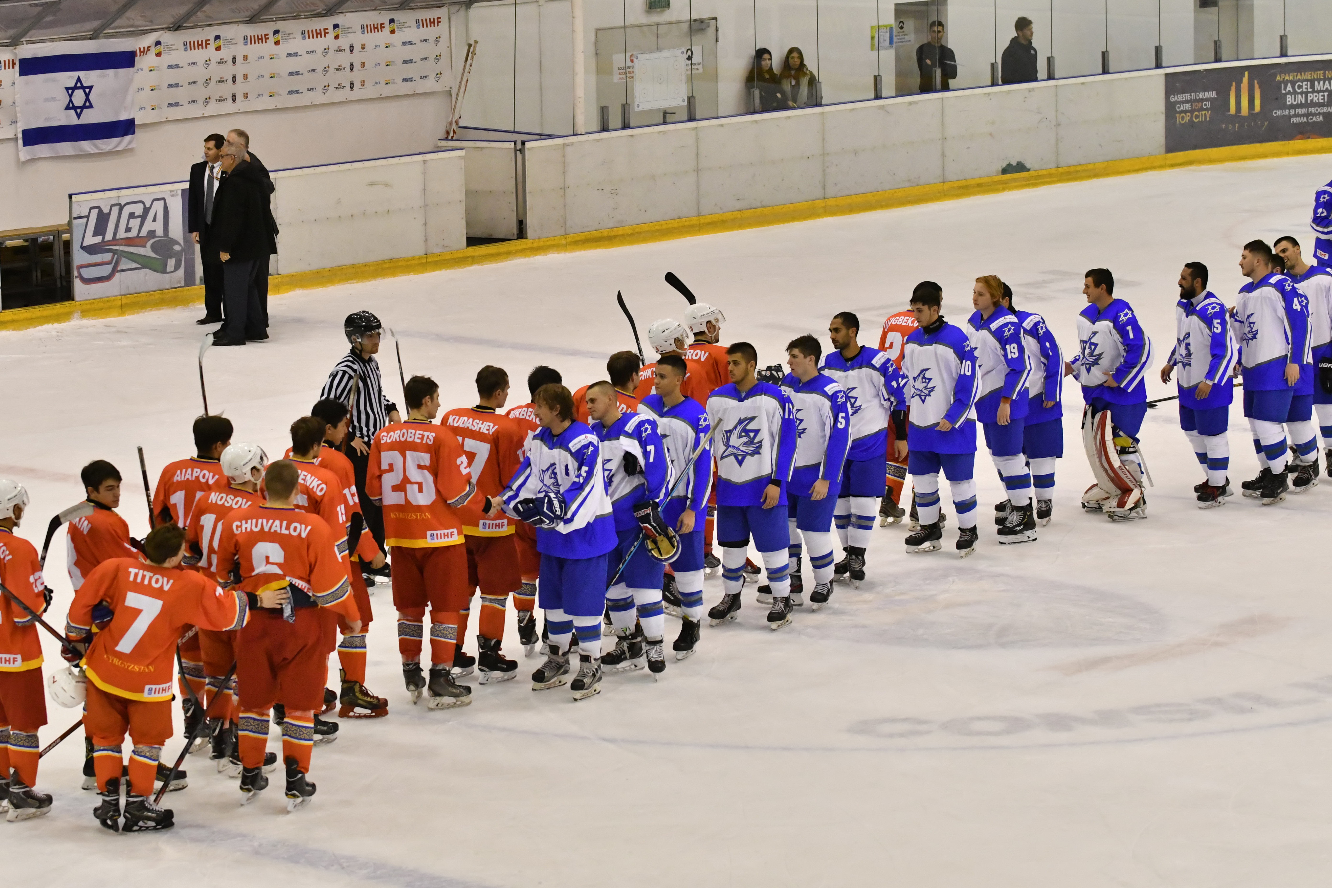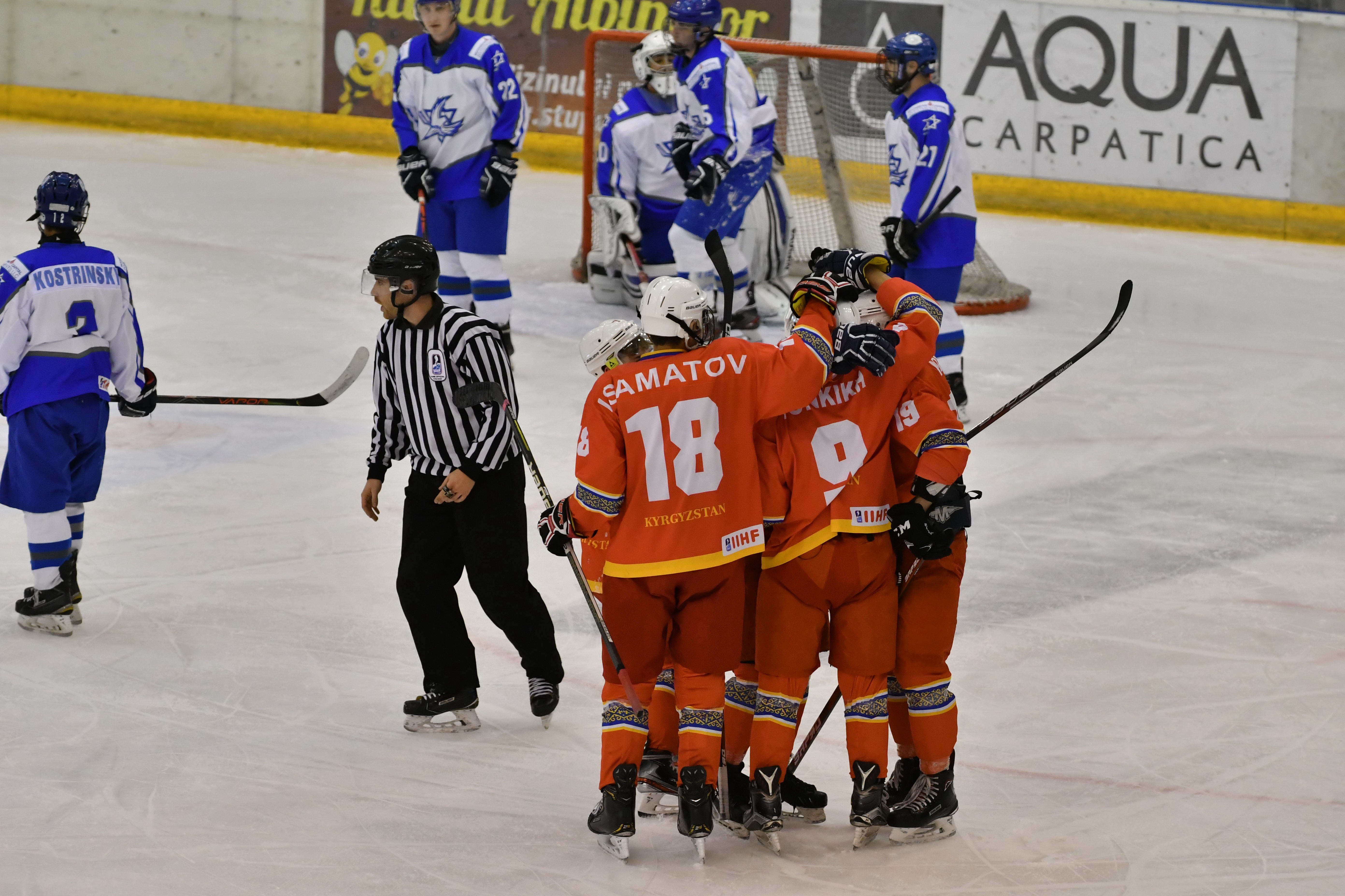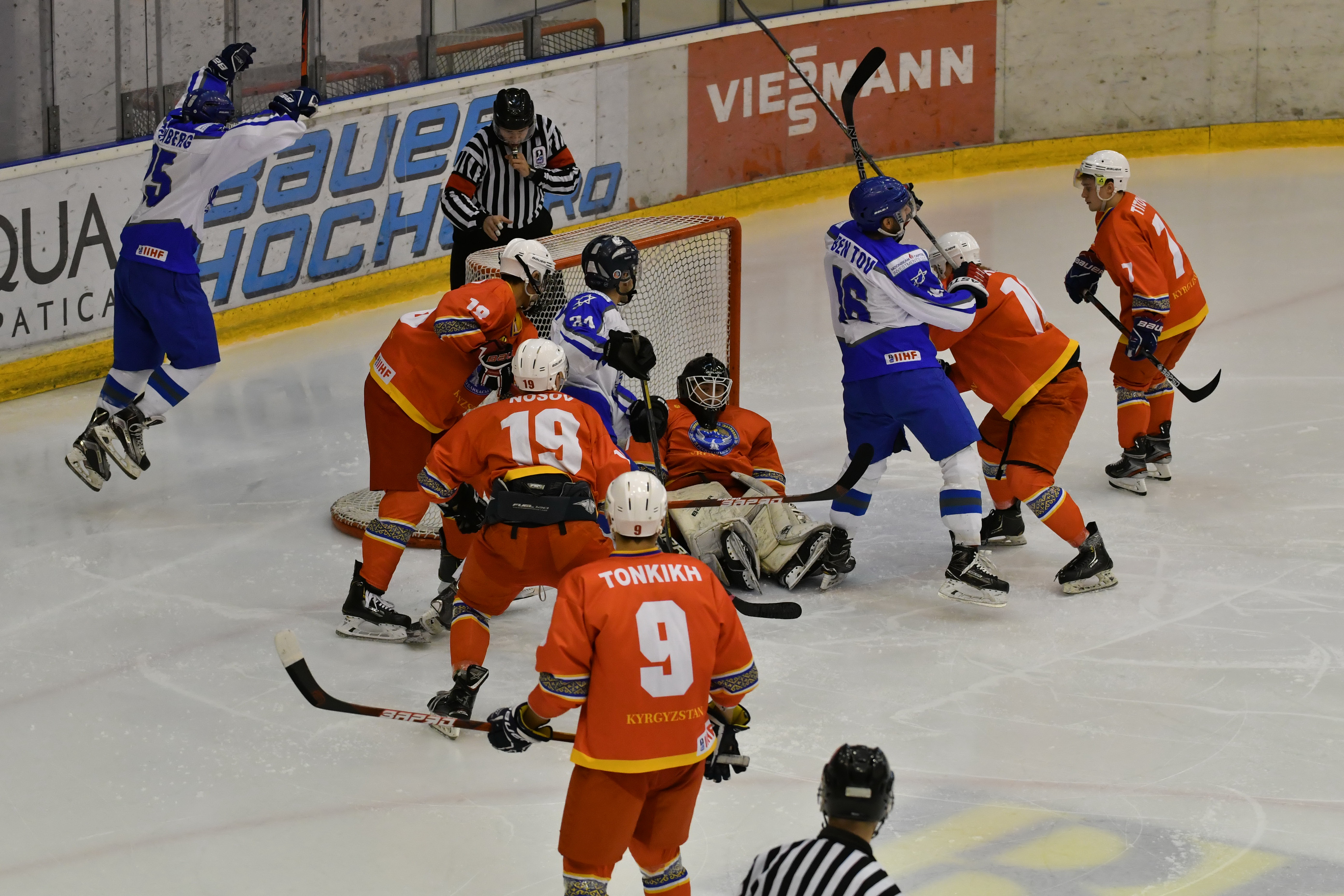 After Kyrgyzstan´s first line lead by Nosov had squandered a few golden opportunities in the third period, Israel surged ahead on a breakaway move that finished with a Sherf backhand slotted past Petrov with 3:51 left of the game.
