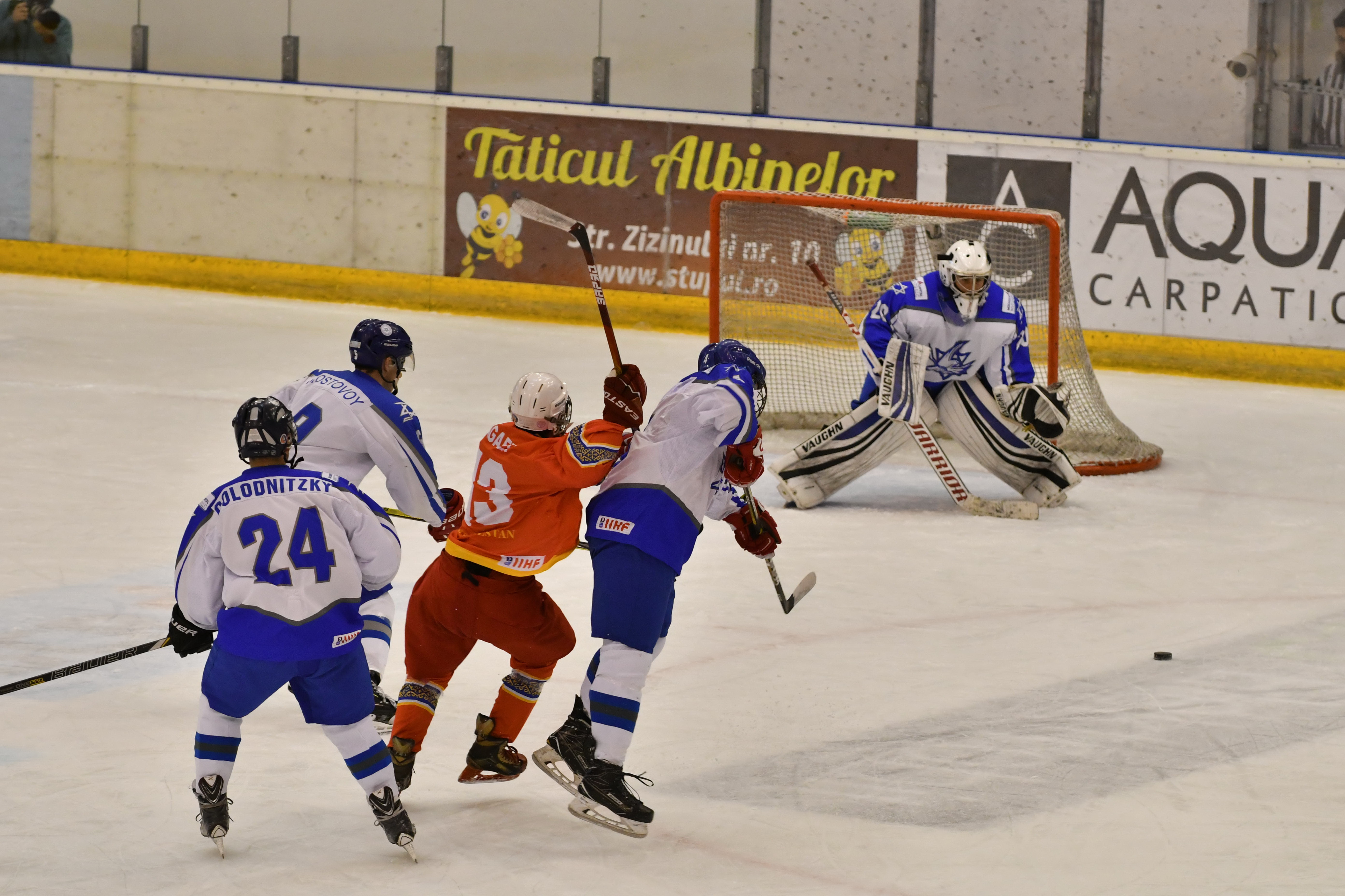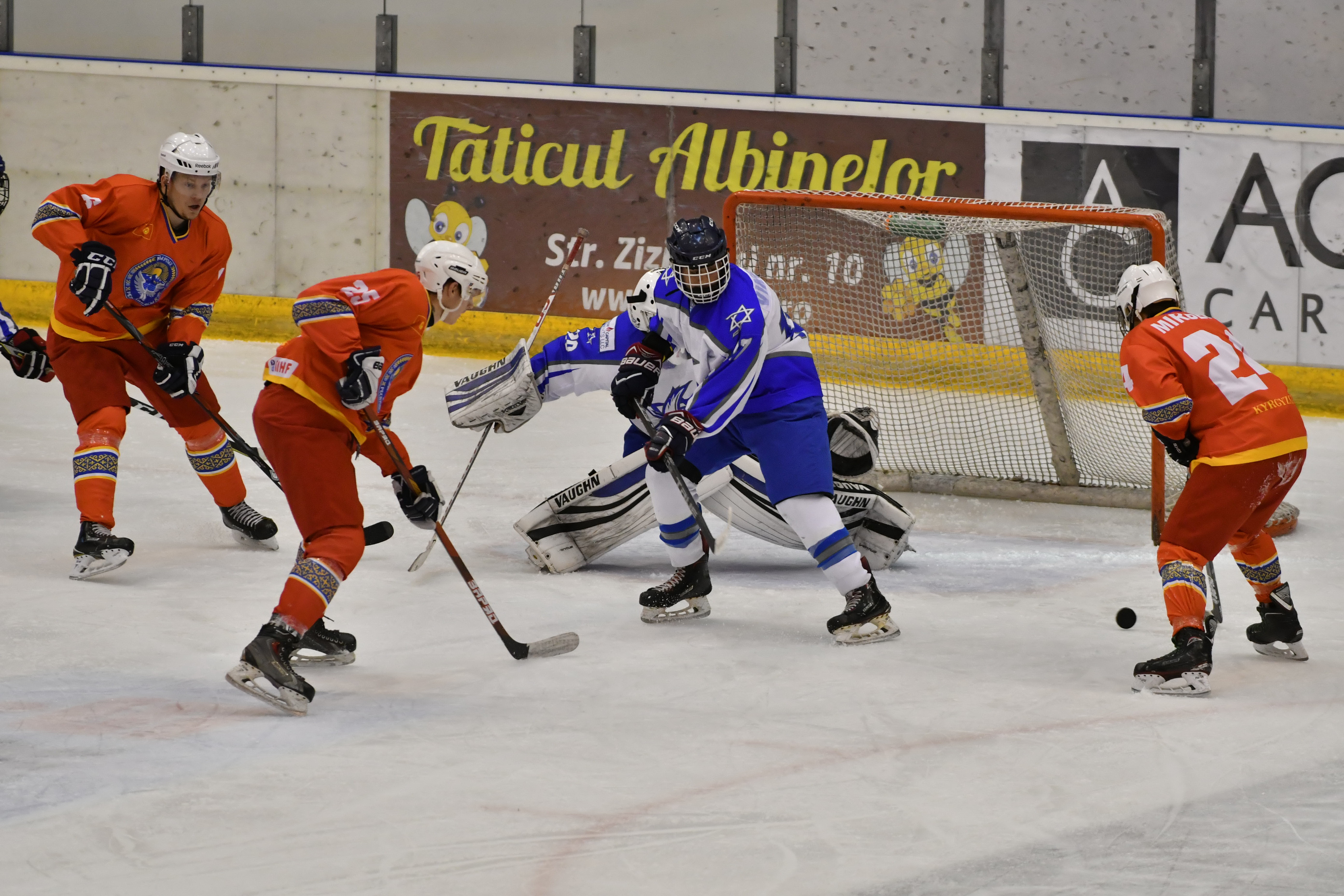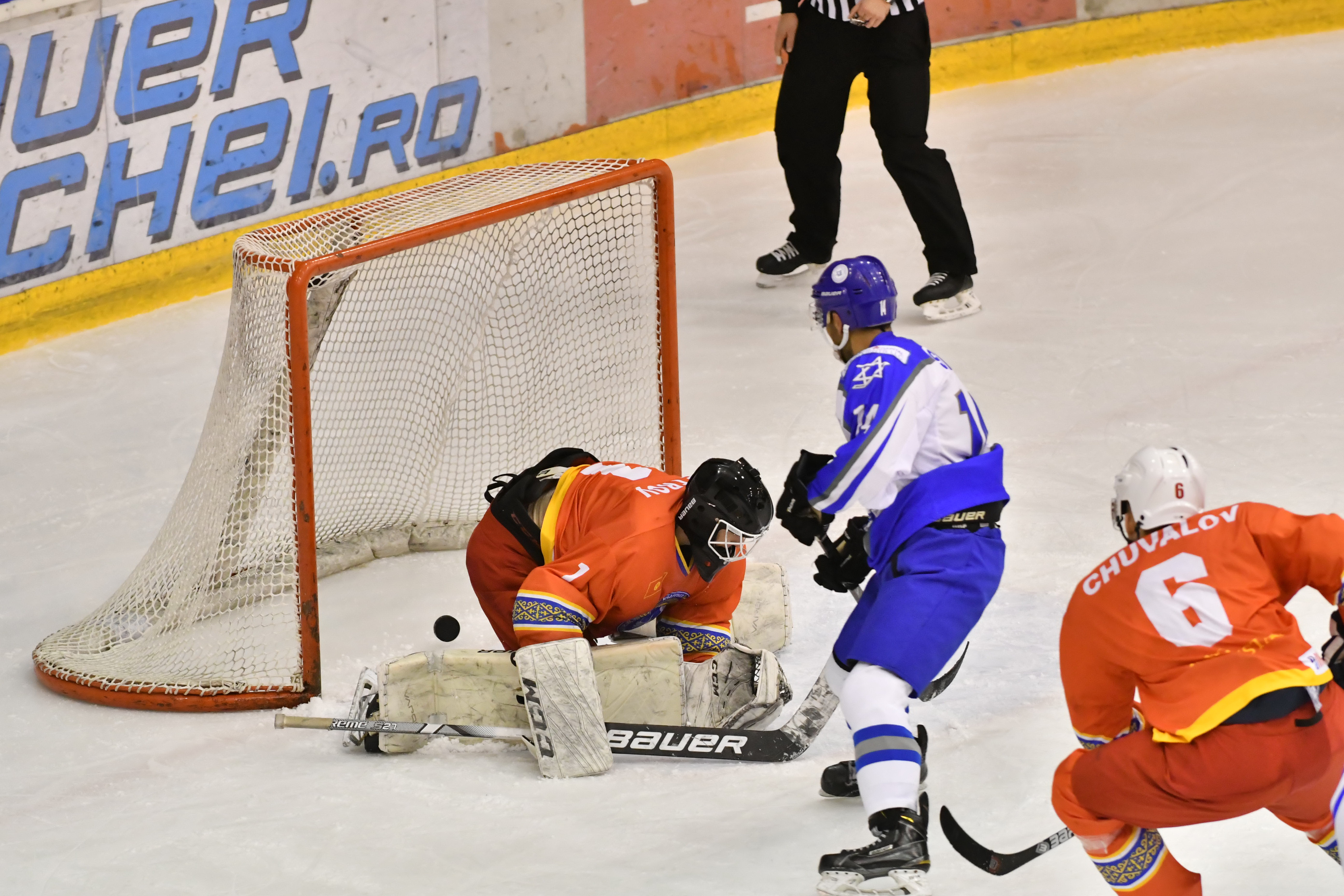 Then during overtime, Kyrgyzstan´s Mikhail Chuvalov was denied brilliantly when through with Reisinger, before with 1:30 left of overtime, Vaitz carried the puck from his defensive zone and from centre ice boomed home a slapshot past the hapless Petrov to the delight of the Israeli players and the two handfuls of their supporters inside Brasov´s Olympice Ice Hall.