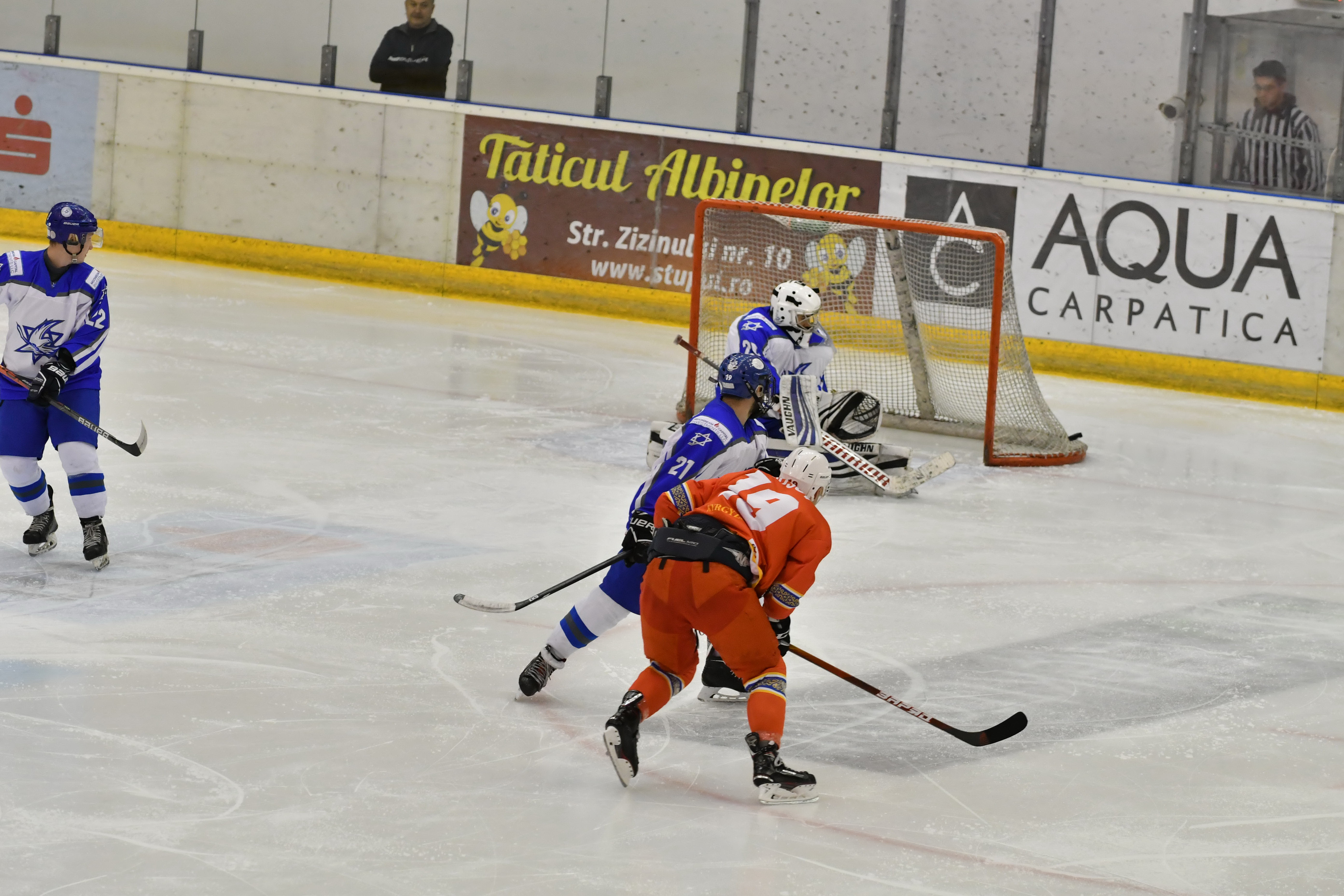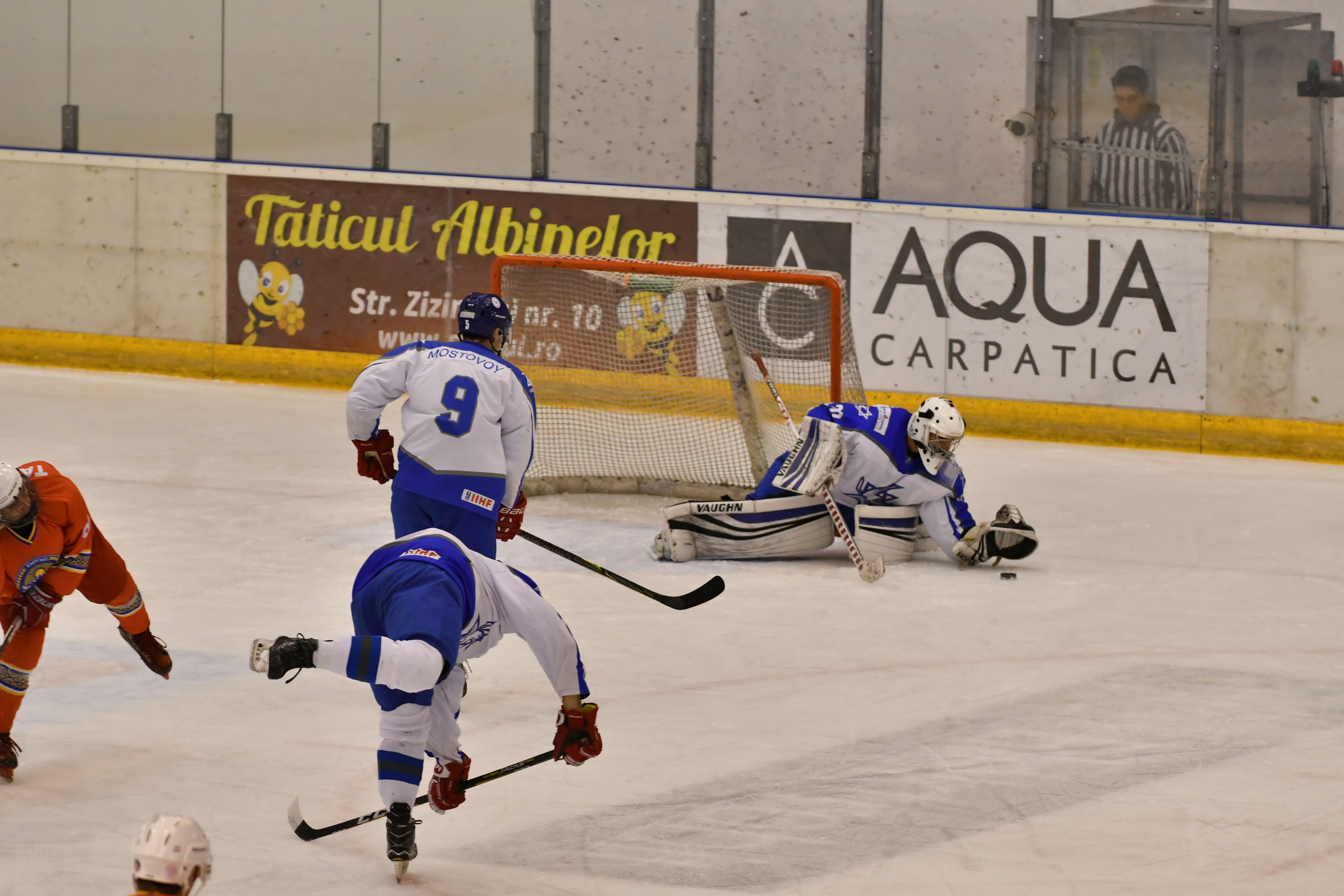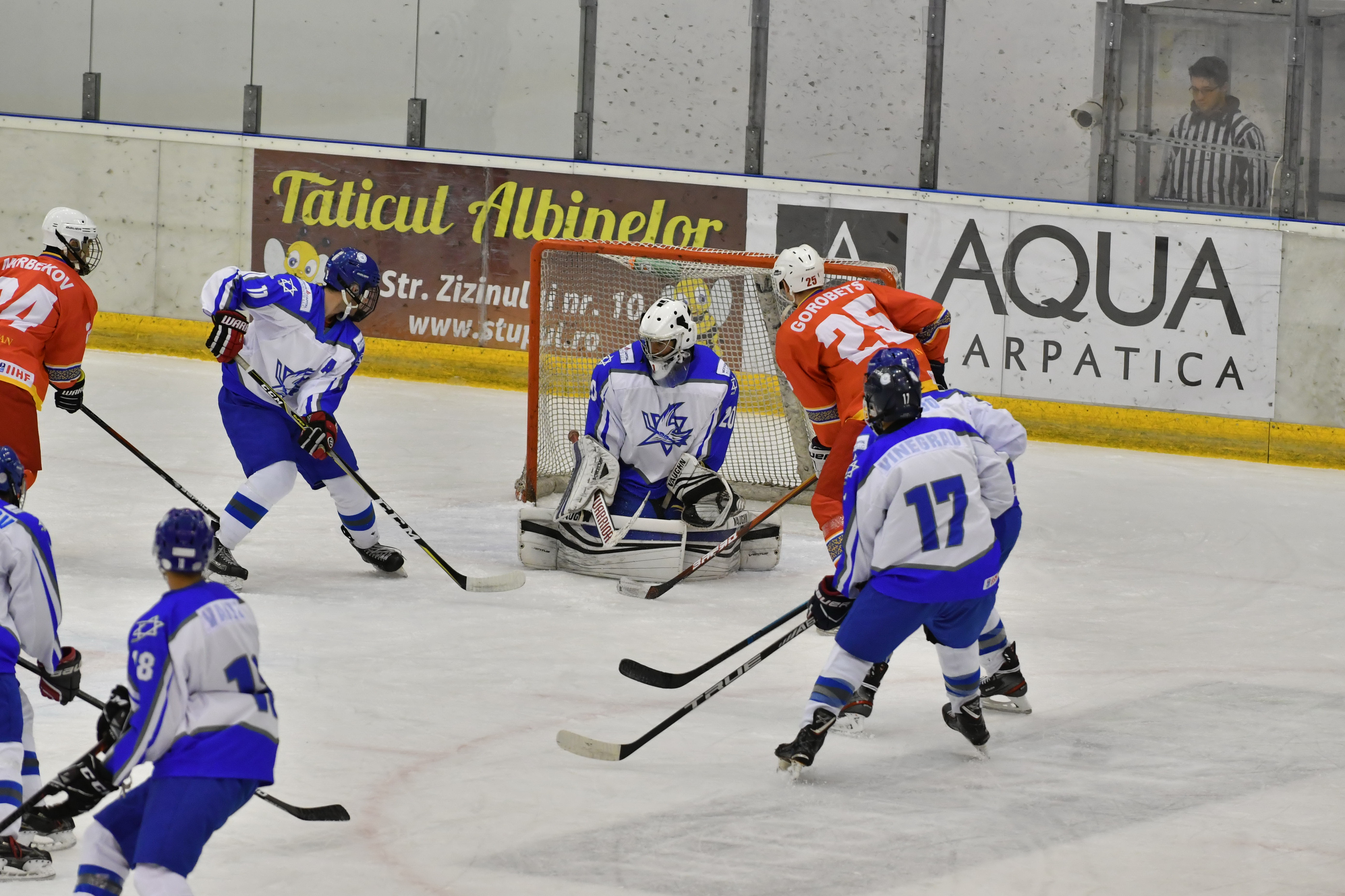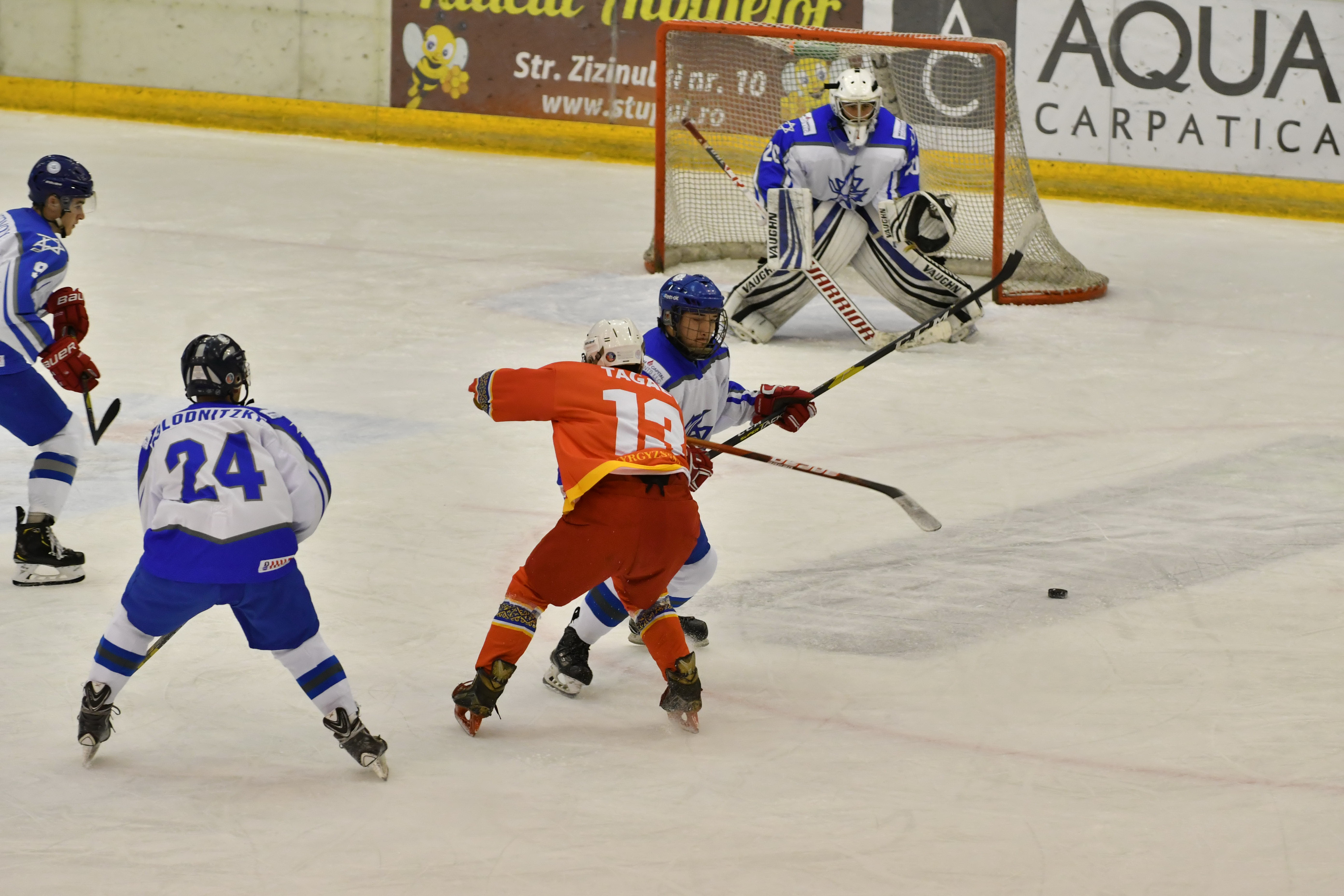 Then during overtime, Kyrgyzstan´s Mikhail Chuvalov was denied brilliantly when through with Reisinger, before with 1:30 left of overtime, Vaitz carried the puck from his defensive zone and from centre ice boomed home a slapshot past the hapless Petrov to the delight of the Israeli players and the two handfuls of their supporters inside Brasov´s Olympice Ice Hall.