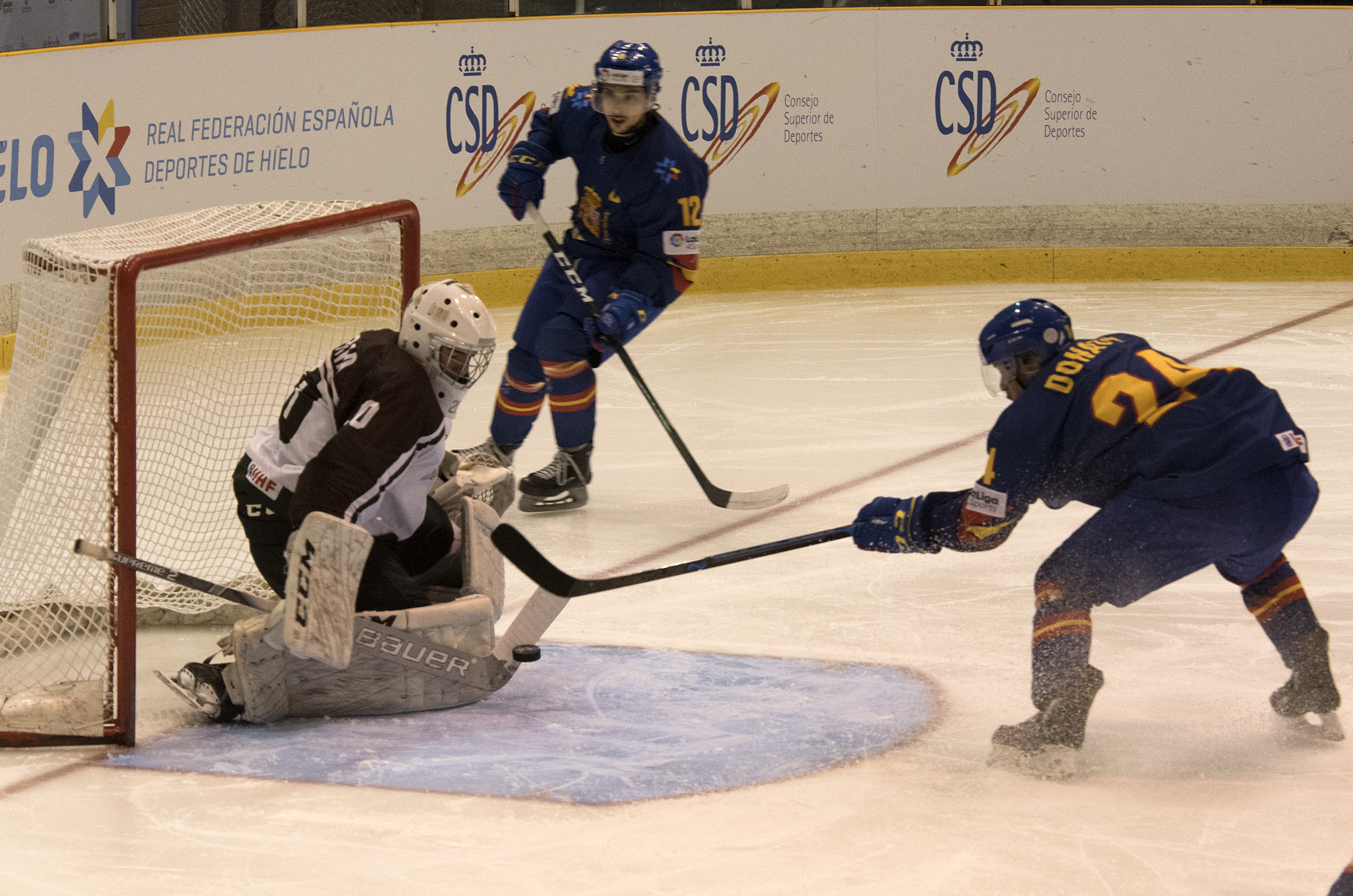 After blow-outs in the first three games of this tournament, the early exchanges on Saturday evening provided a welcome change of pace. Both teams carved out chances in a competitive first period and it was not until the last couple of minutes that Spain built the kind of commanding lead expected of it before the puck was dropped.