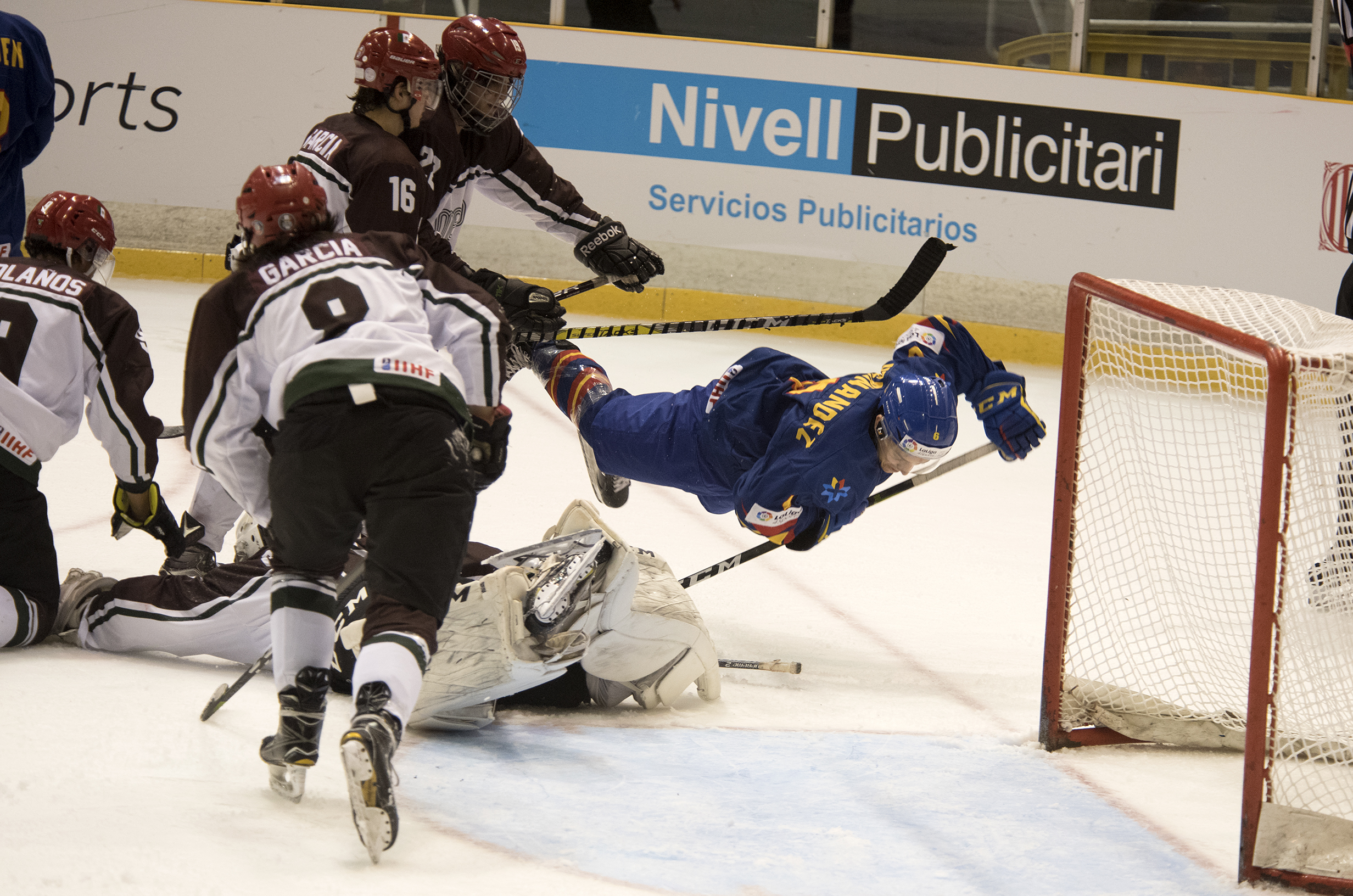 Indeed, Mexico might have got in front itself as it put on a vastly improved performance after losing 17-1 on Friday afternoon. Jorge Perez gave Raul Barbo an early test; the young Spanish goalie stood up well to repel a flurry of close-range attempts. And Barbo was alert again moments later when Augusto Bolanos got a shooting chance right in front of the net. It was far from one-way traffic, and Spain came close when Pablo Zaballa’s point shot dinged off the crossbar.