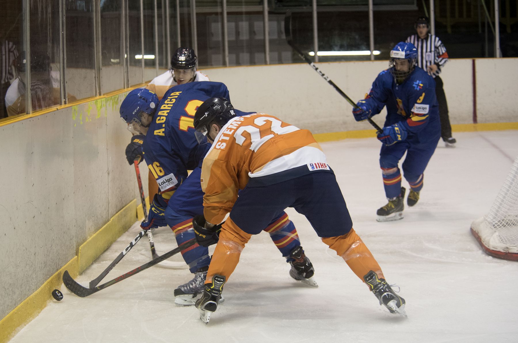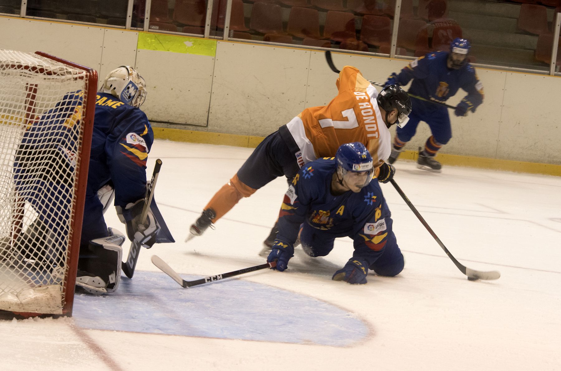 But it took a pair of goals in the third-period to separate the teams in a hard-fought clash in the Catalan capital. Spain matched its higher-ranked opponent for much of the game but could not recover when Raymond van der Schuit got a breakaway goal early in the third to make it 4-3. To make it more painful for the Spanish, the play began after the Dutch iced the puck then won the face-off in their own end.