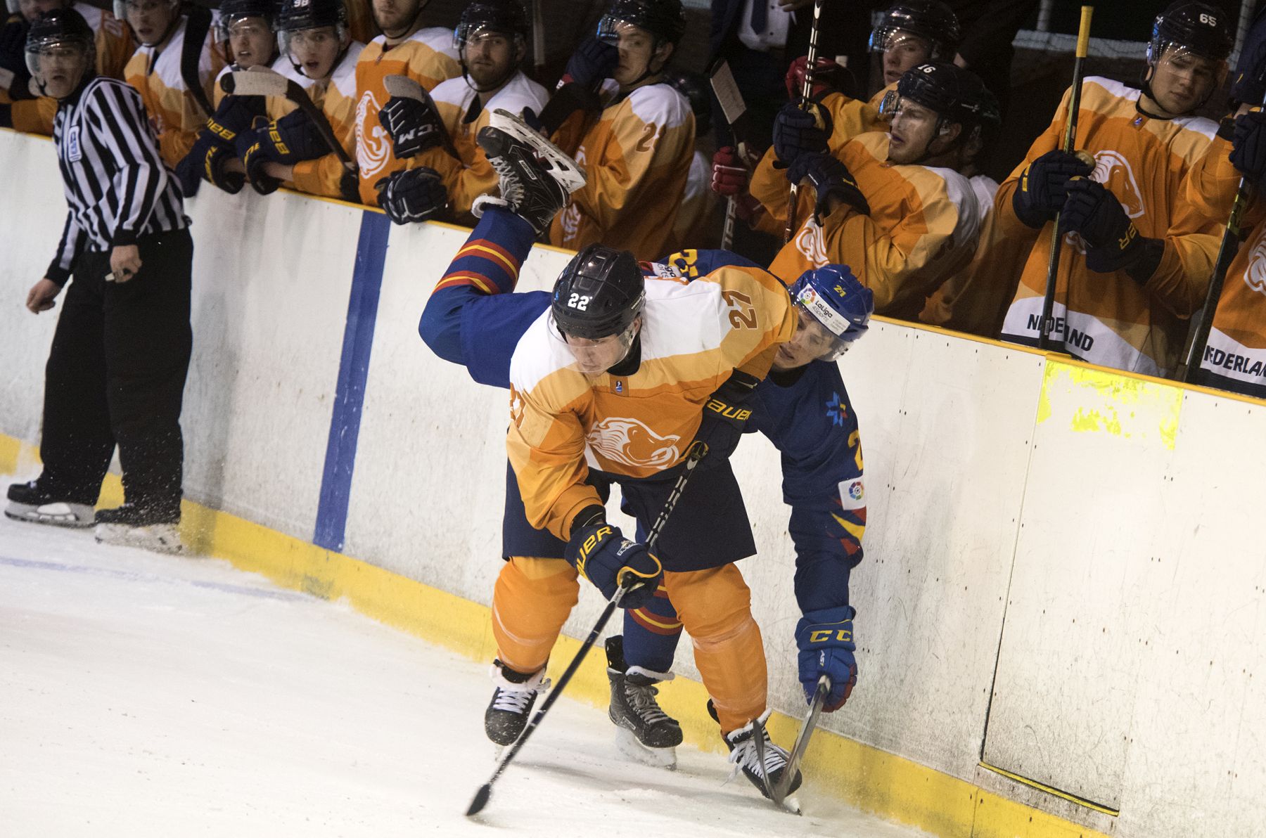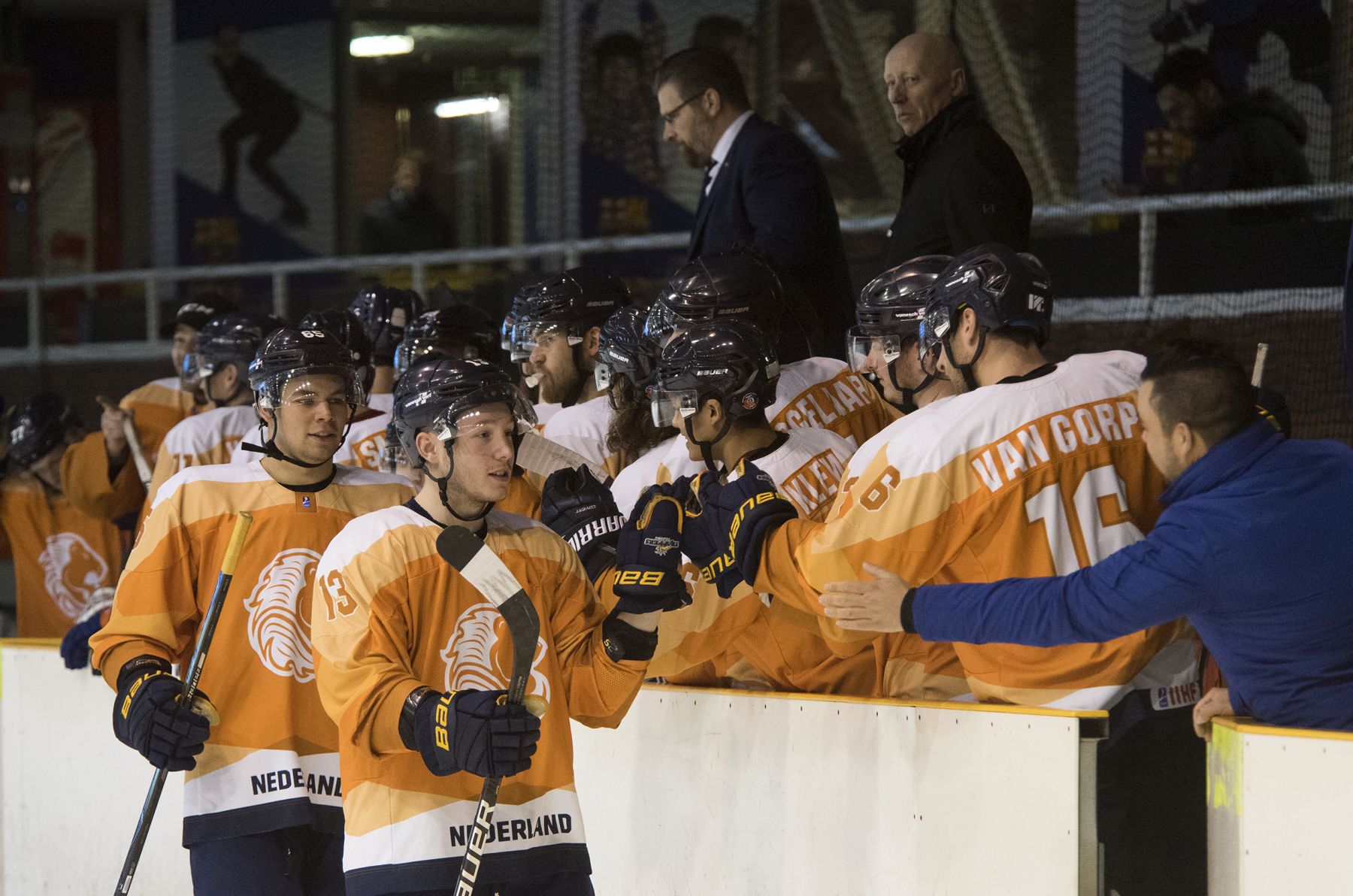 One of the new faces on the Dutch roster was instrumental in the first goal of the day. Giovanni Vogelaar fired in a point shot that Ander Alcaine could only pad on to the stick of Bartek Bison for a fourth-minute opener.