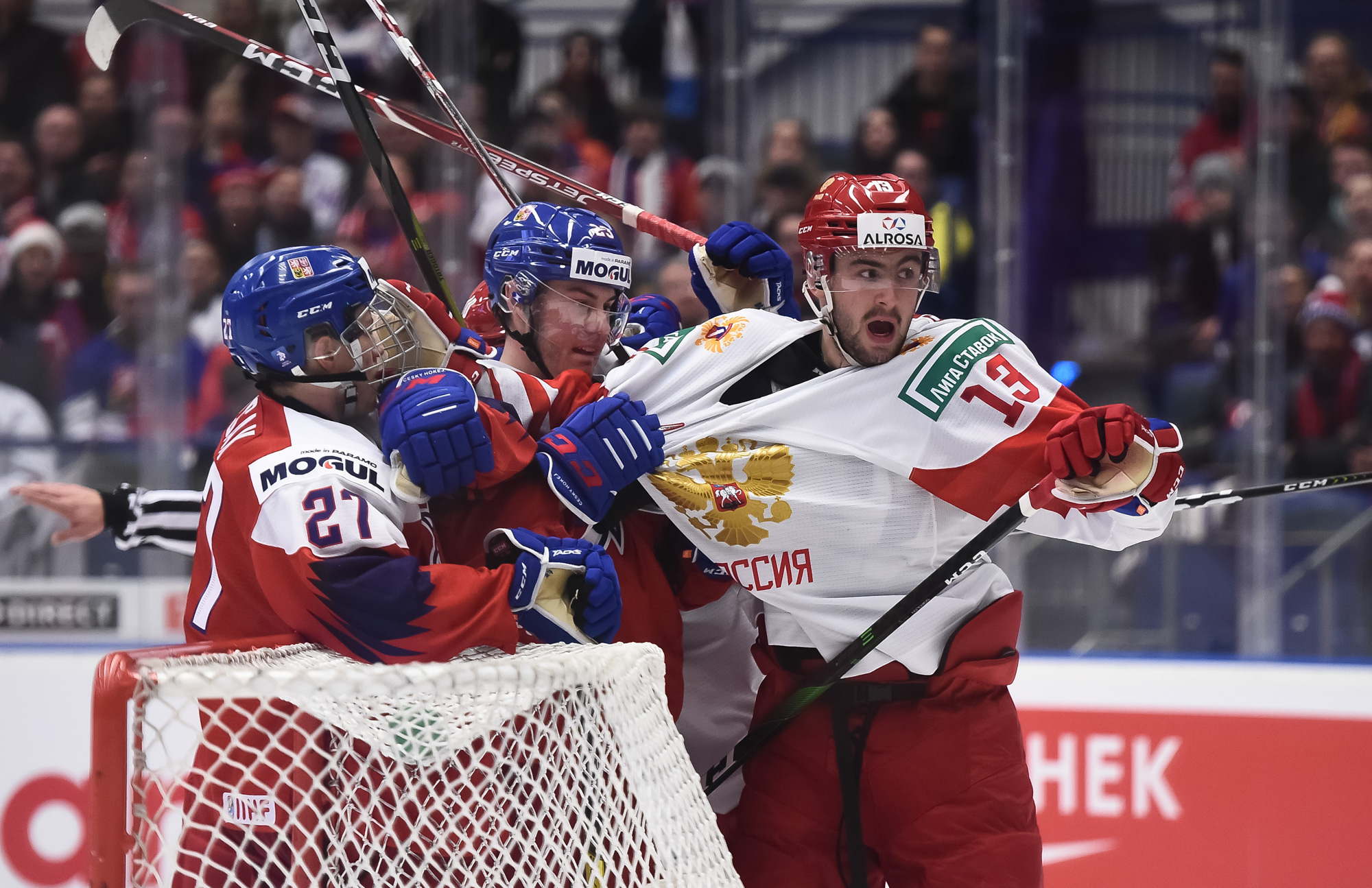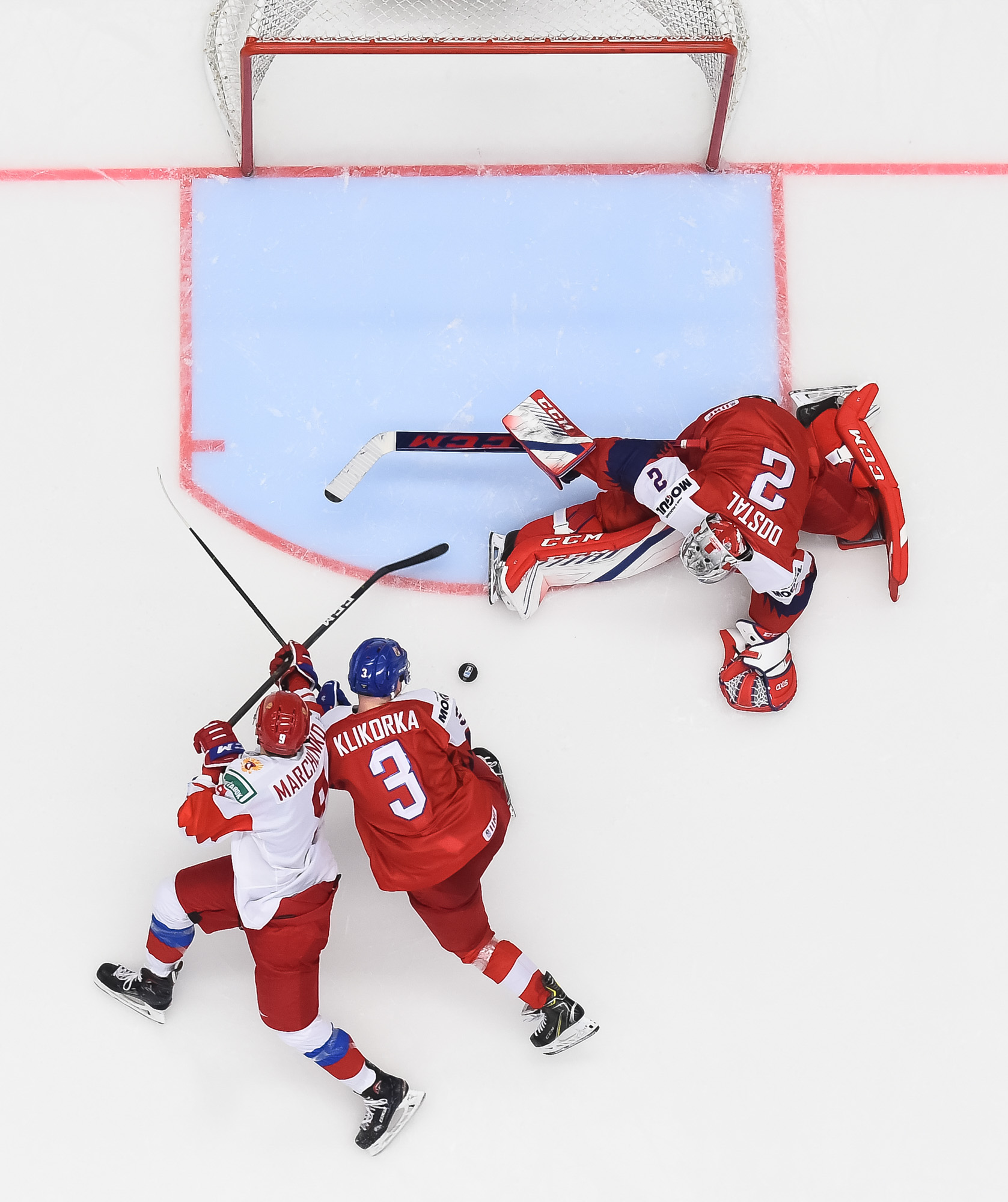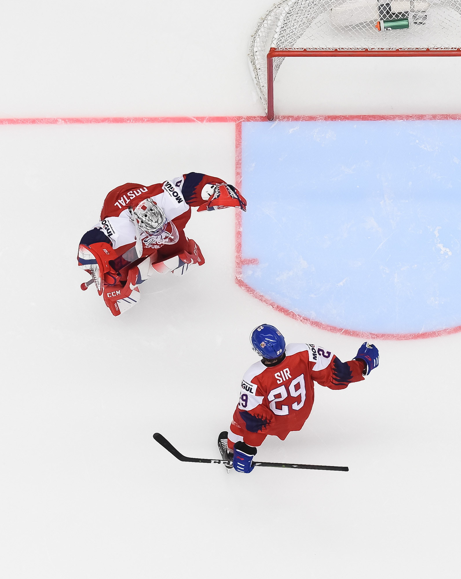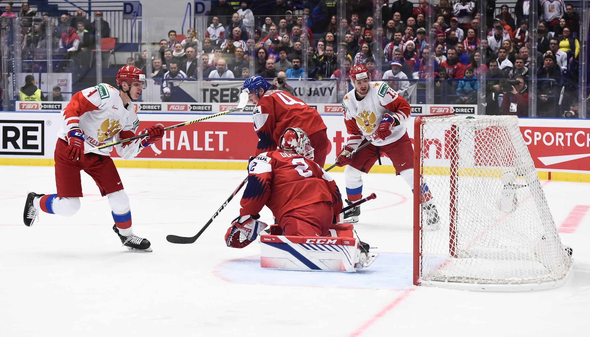 Buoyed by their fans, the Czechs came out with an energy the Russians couldn’t match, scoring twice before the game was eight minutes old. Simon Kubicek opened the scoring at 2:46 on the power play when his one-timer from the point went all the way.