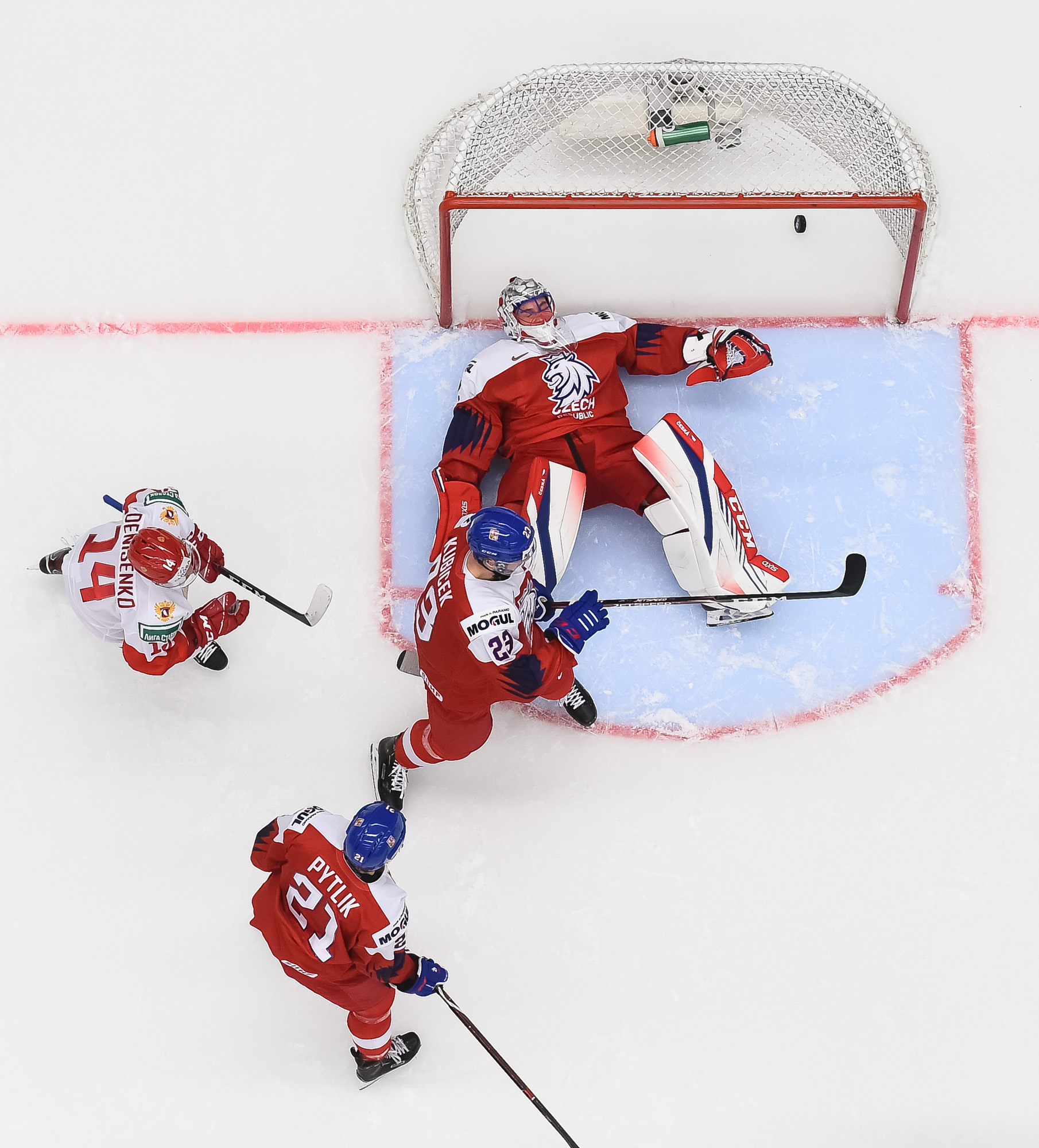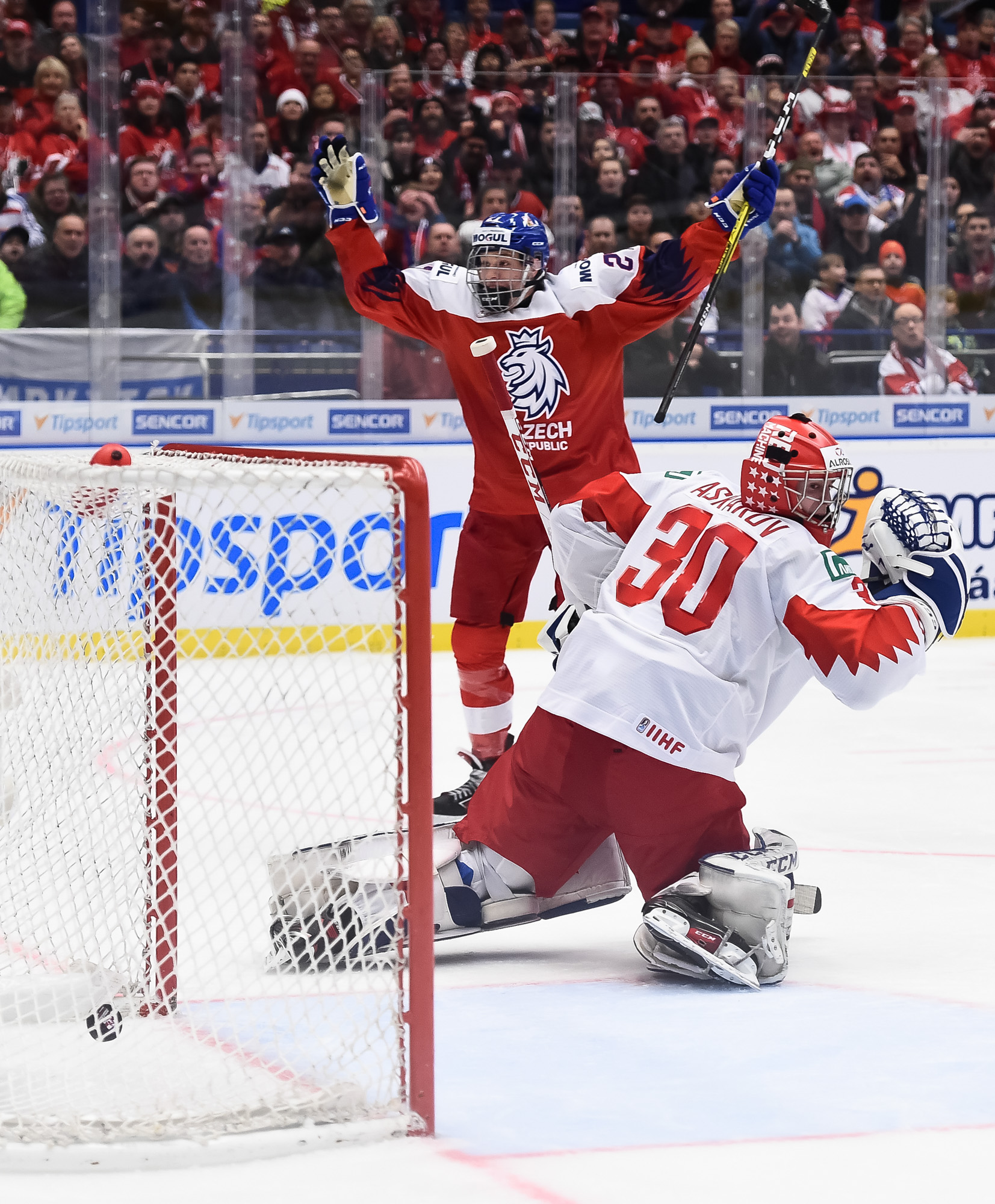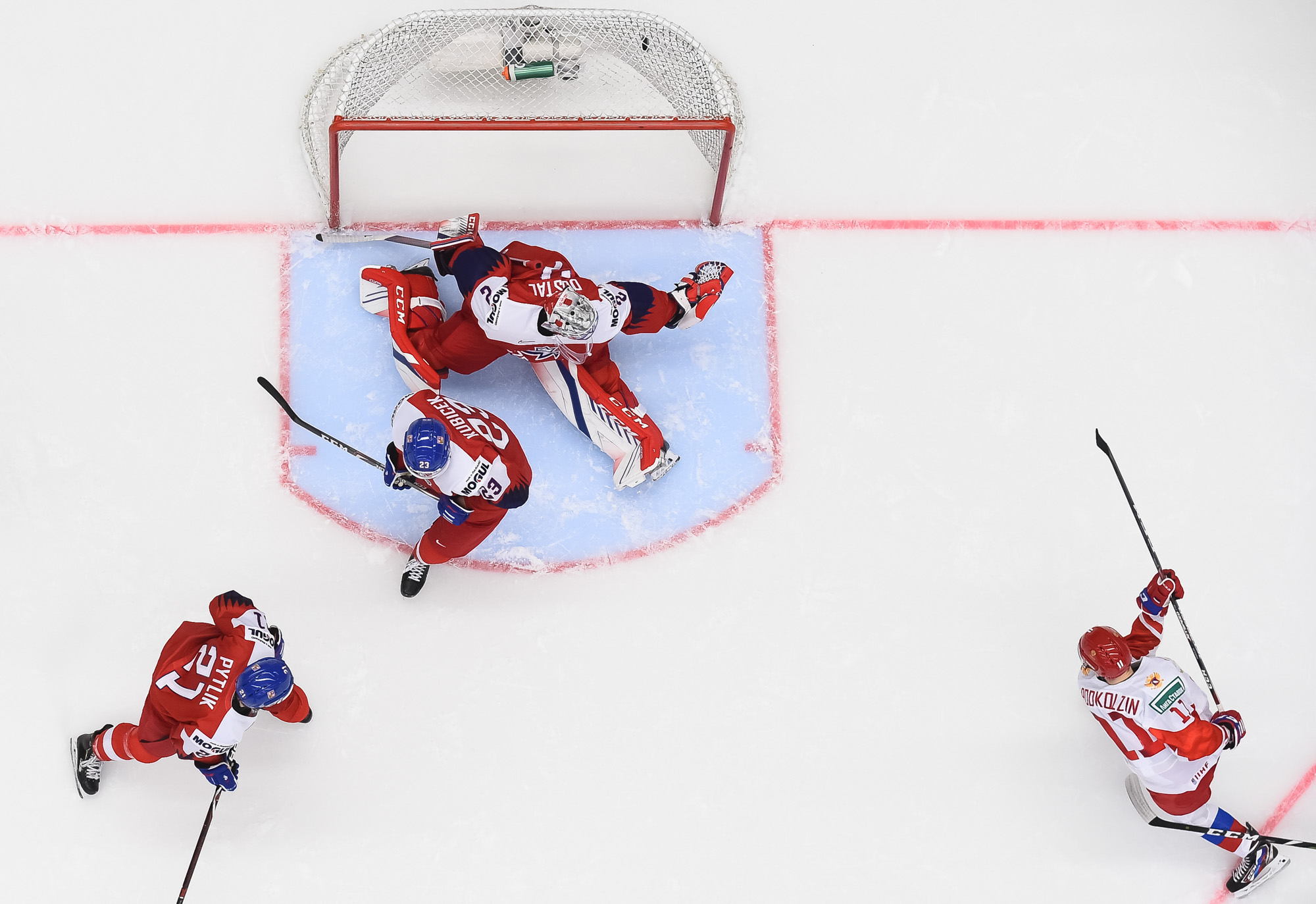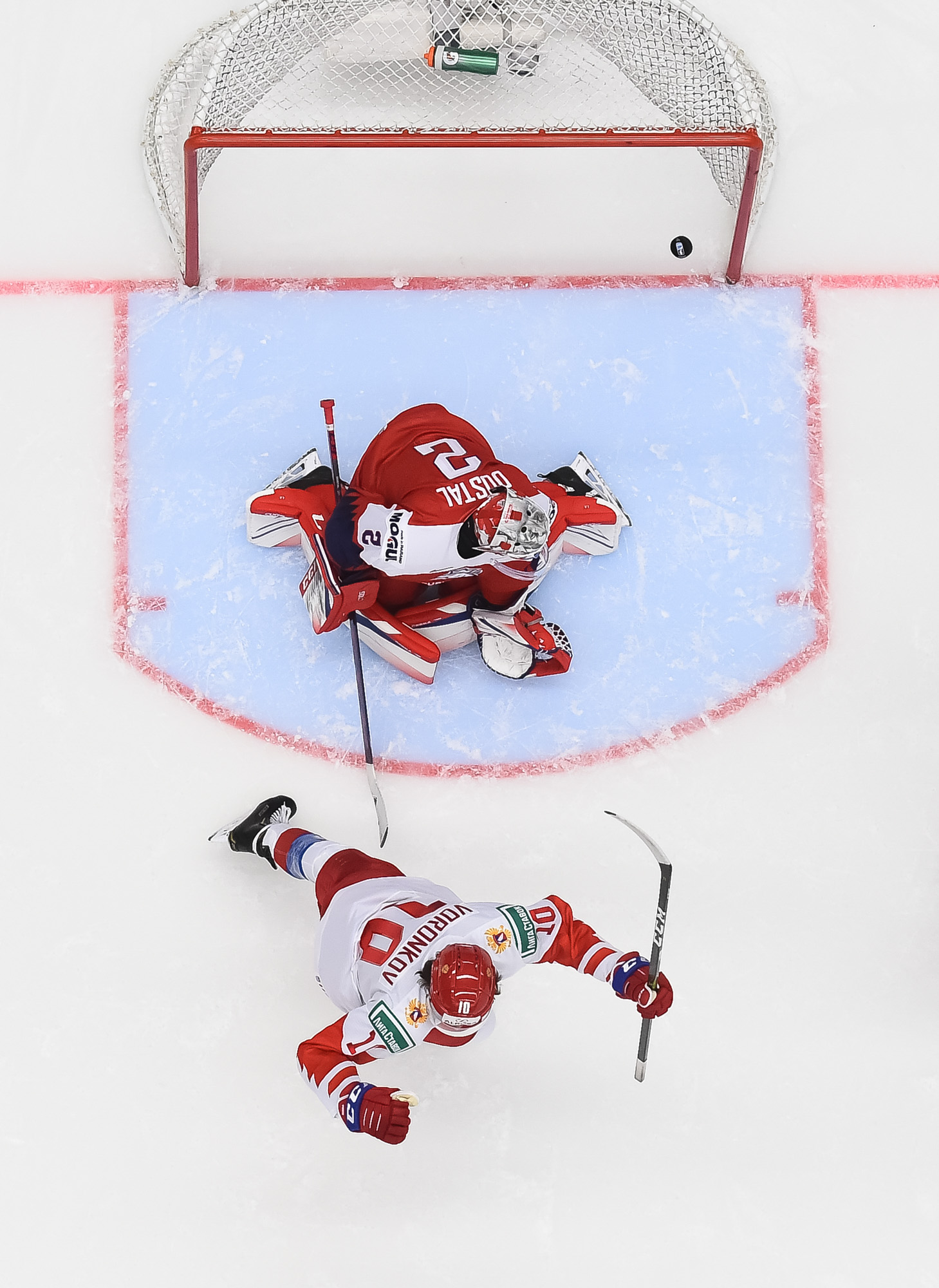 Buoyed by their fans, the Czechs came out with an energy the Russians couldn’t match, scoring twice before the game was eight minutes old. Simon Kubicek opened the scoring at 2:46 on the power play when his one-timer from the point went all the way.
