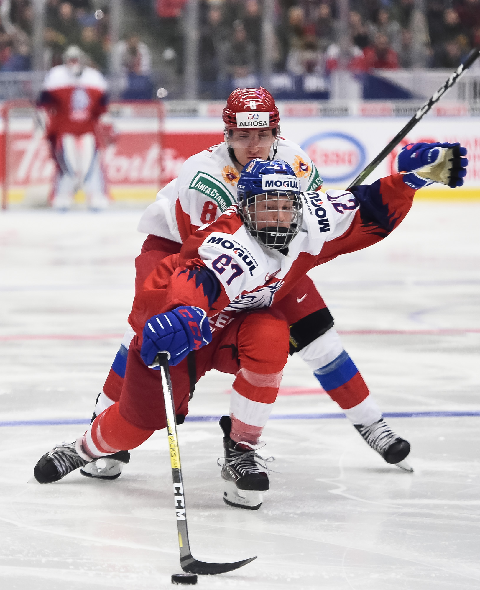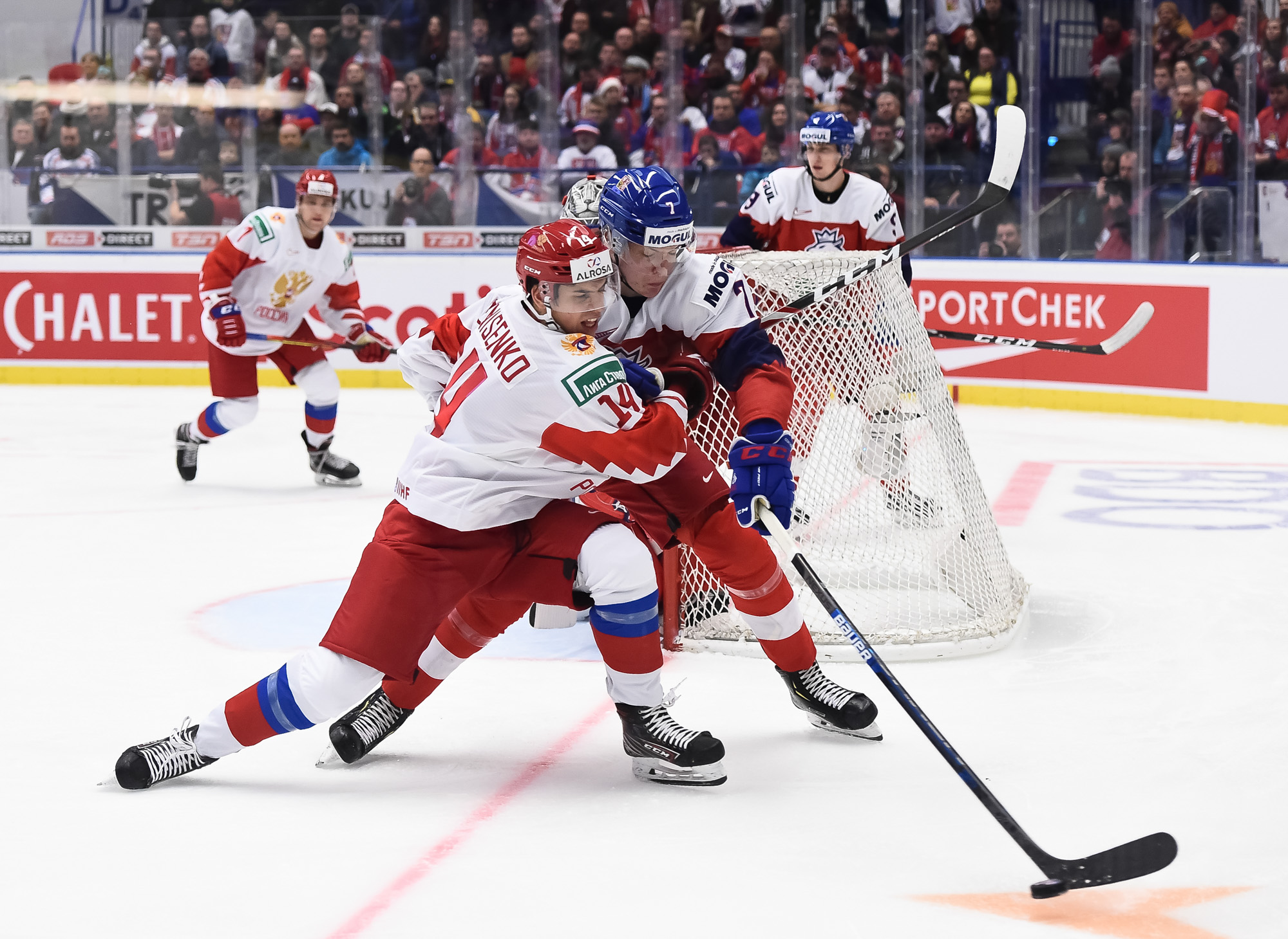 But as the fans chanted in celebration, Russia responded. Zamula got his second of the game, charging to the net and taking a pass from Dmitri Voronkov before burying his shot just 45 seconds after Blumel’s goal.
