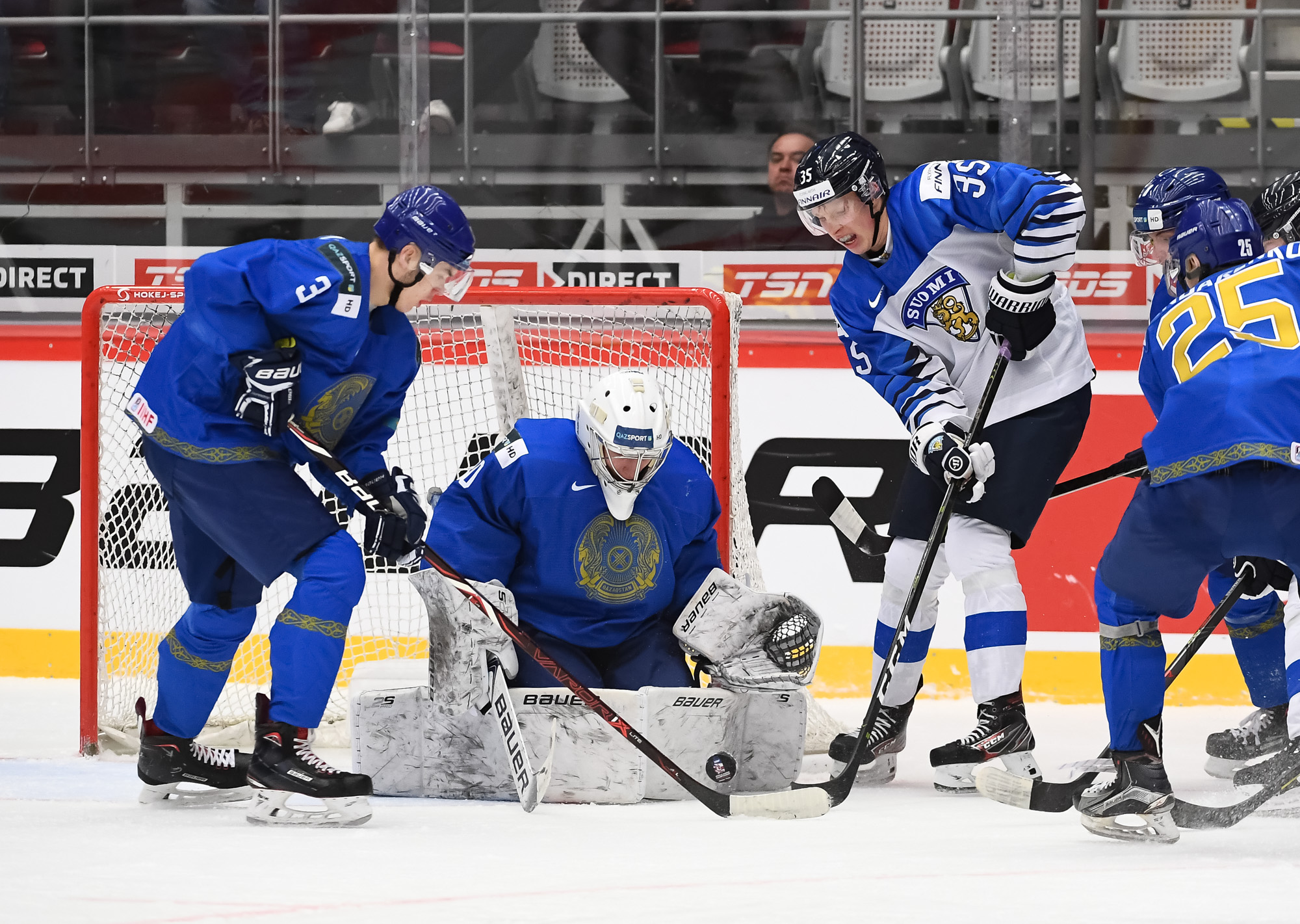 In a battle of backup goalies seeing their first World Junior action, Finland’s Kari Piiroinen prevailed over Kazakhstan’s Roman Kalmykov. Shots favoured the Finns 34-22, and they played a strong two-way game.