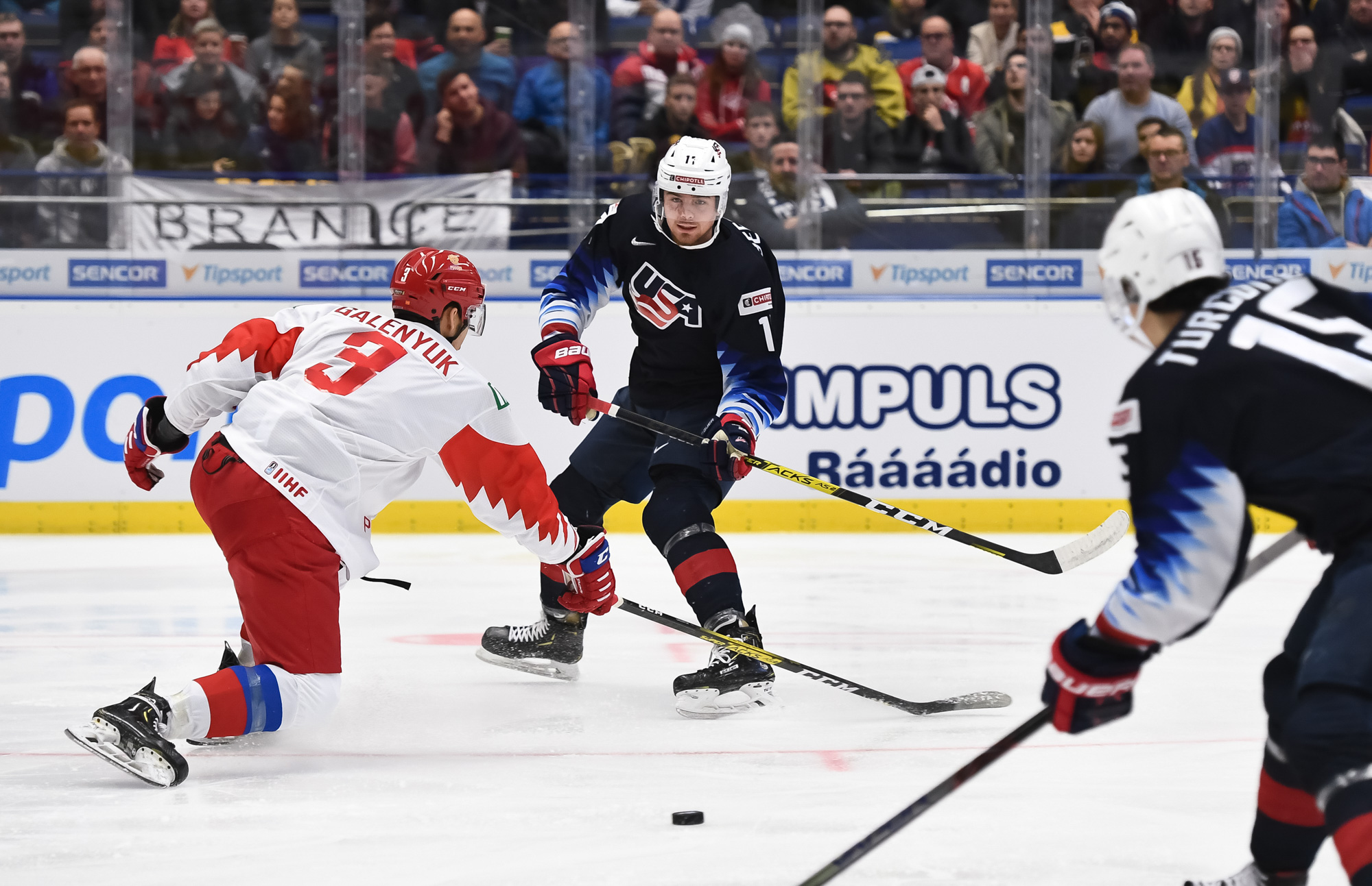 The U.S. was playing after a day’s rest, but the first period was a fairly tentative one as neither team took many chances. The four power plays, two both ways, yielded no goals and precious few good chances, although Knight had more tougher saves than Amir Miftakhov, who posted the shutout 24 hours earlier.