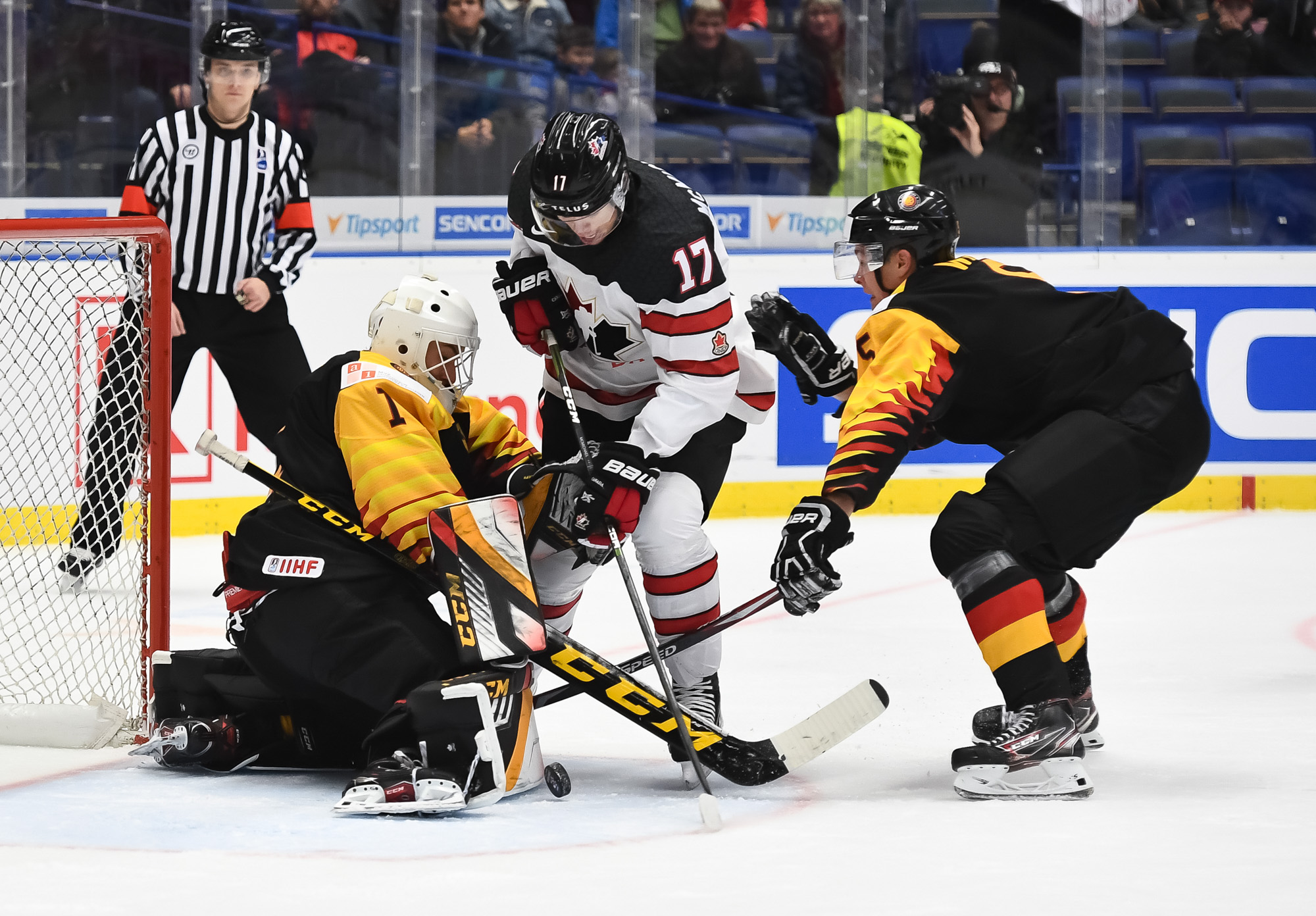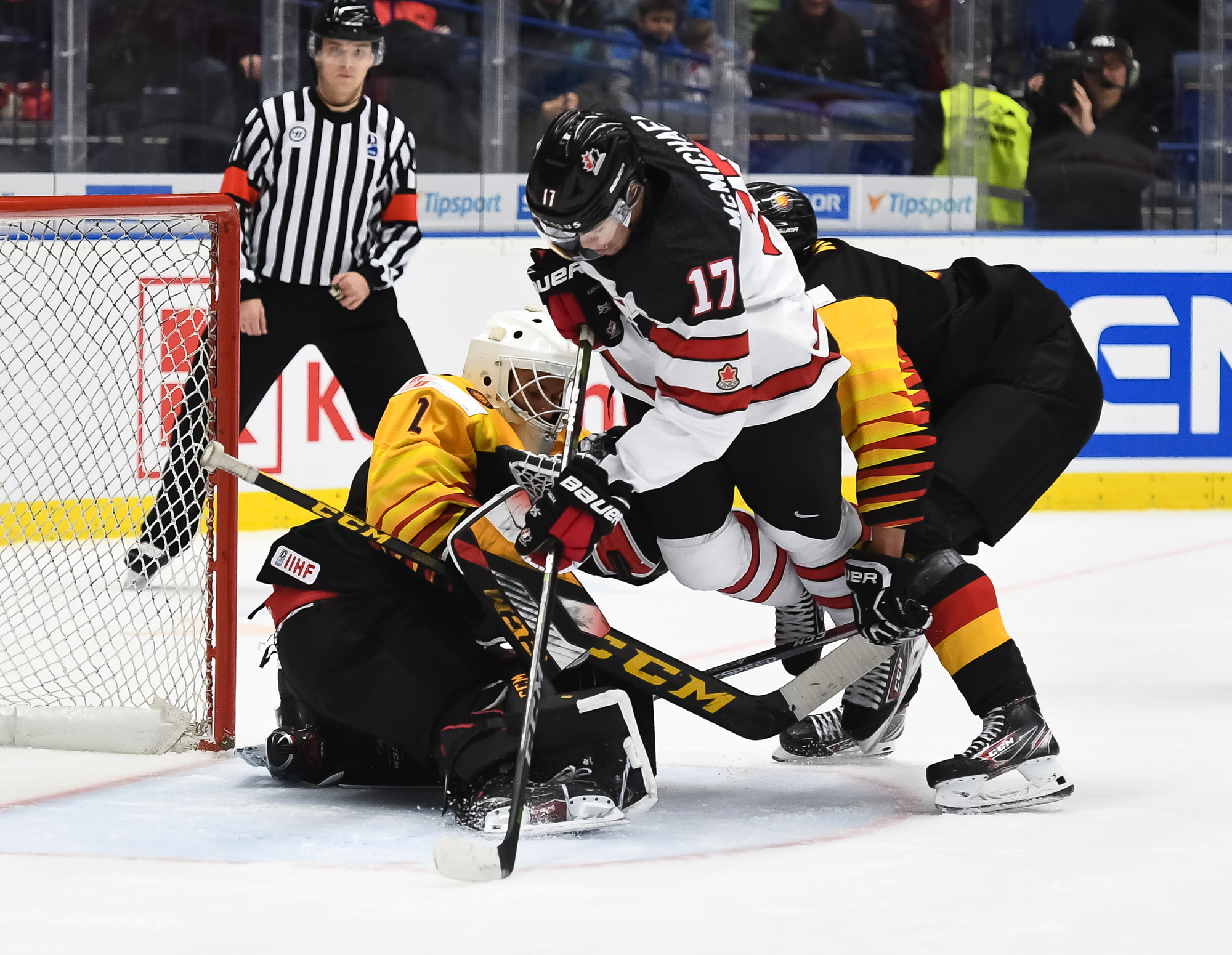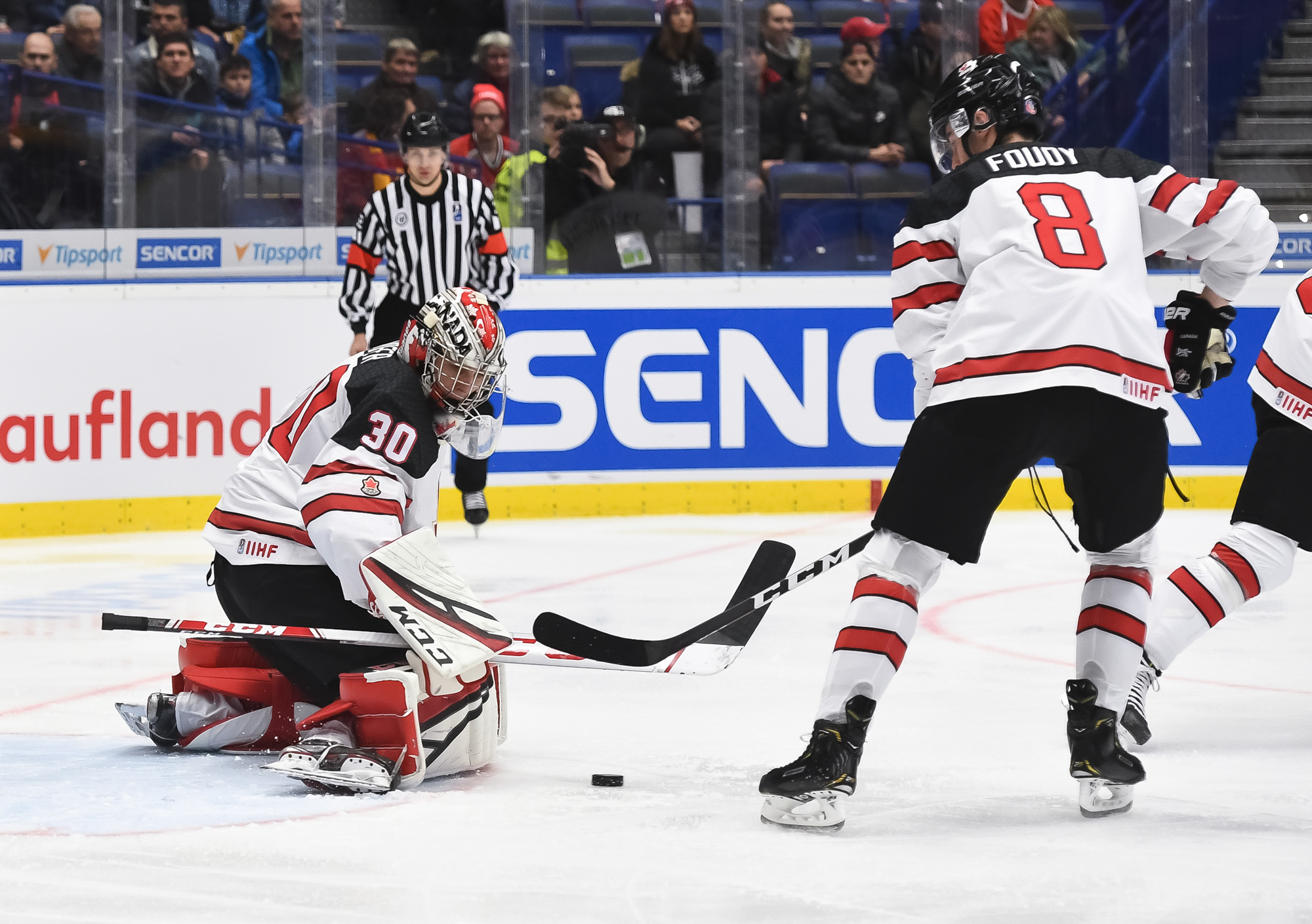 Soon after that last save, Canada made it 2-0. Foudy got the puck at the German blue line and skated in unmolested before snapping a shot through traffic to the short side at 12:24."I wasn't sure what happened," he explained. "I kept walking in and walking in. The goalie didn't even see it, and I managed to put it in."