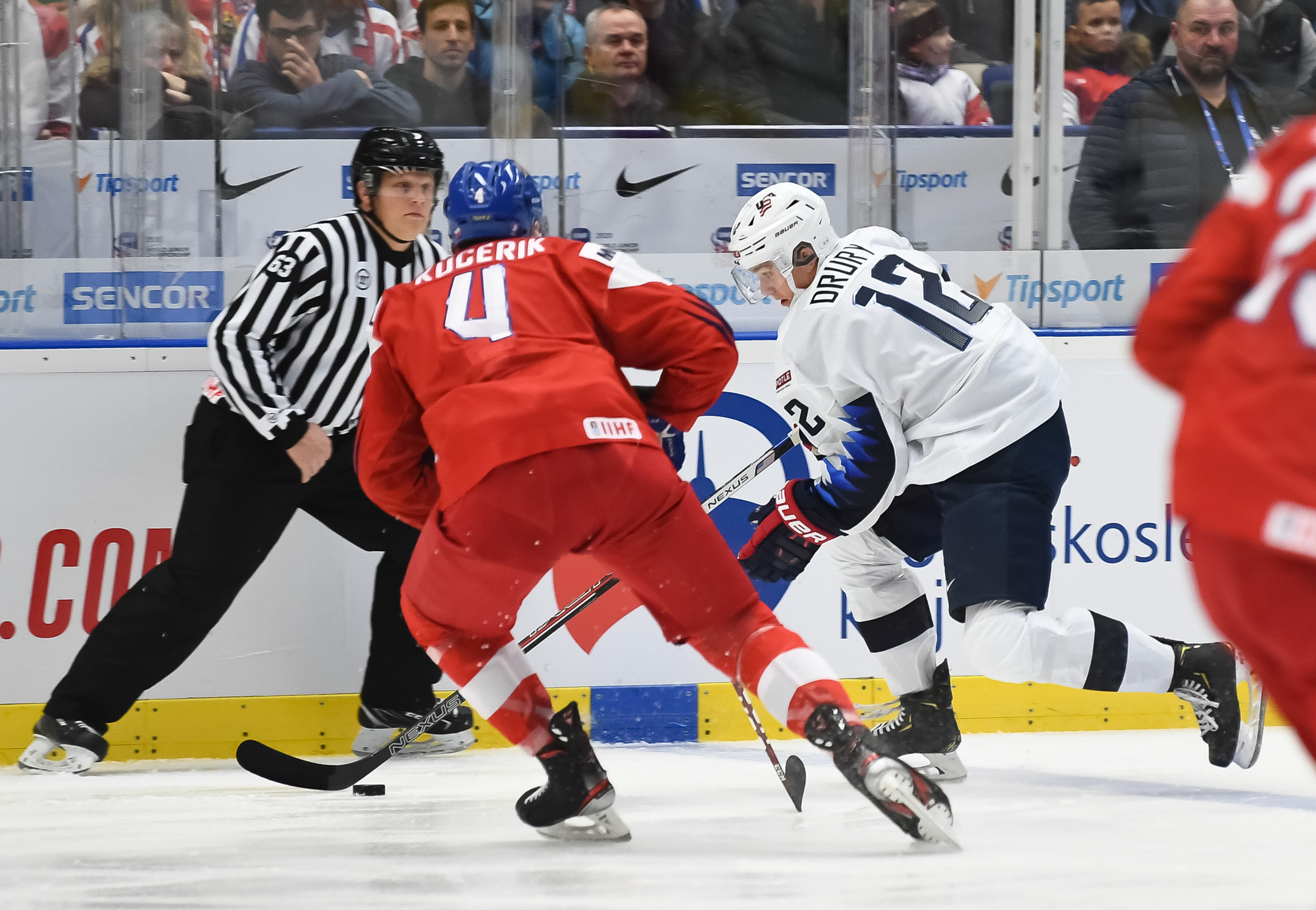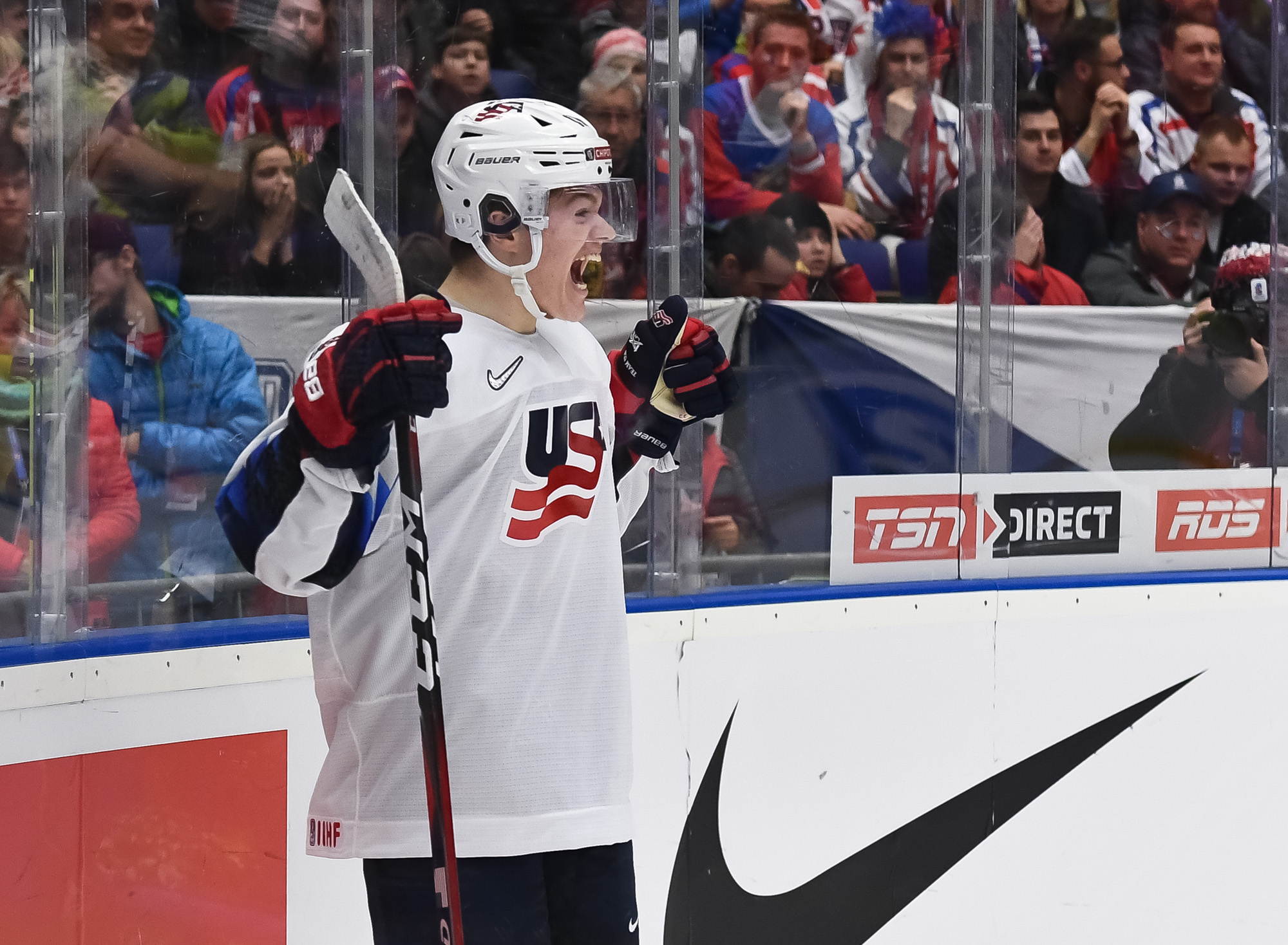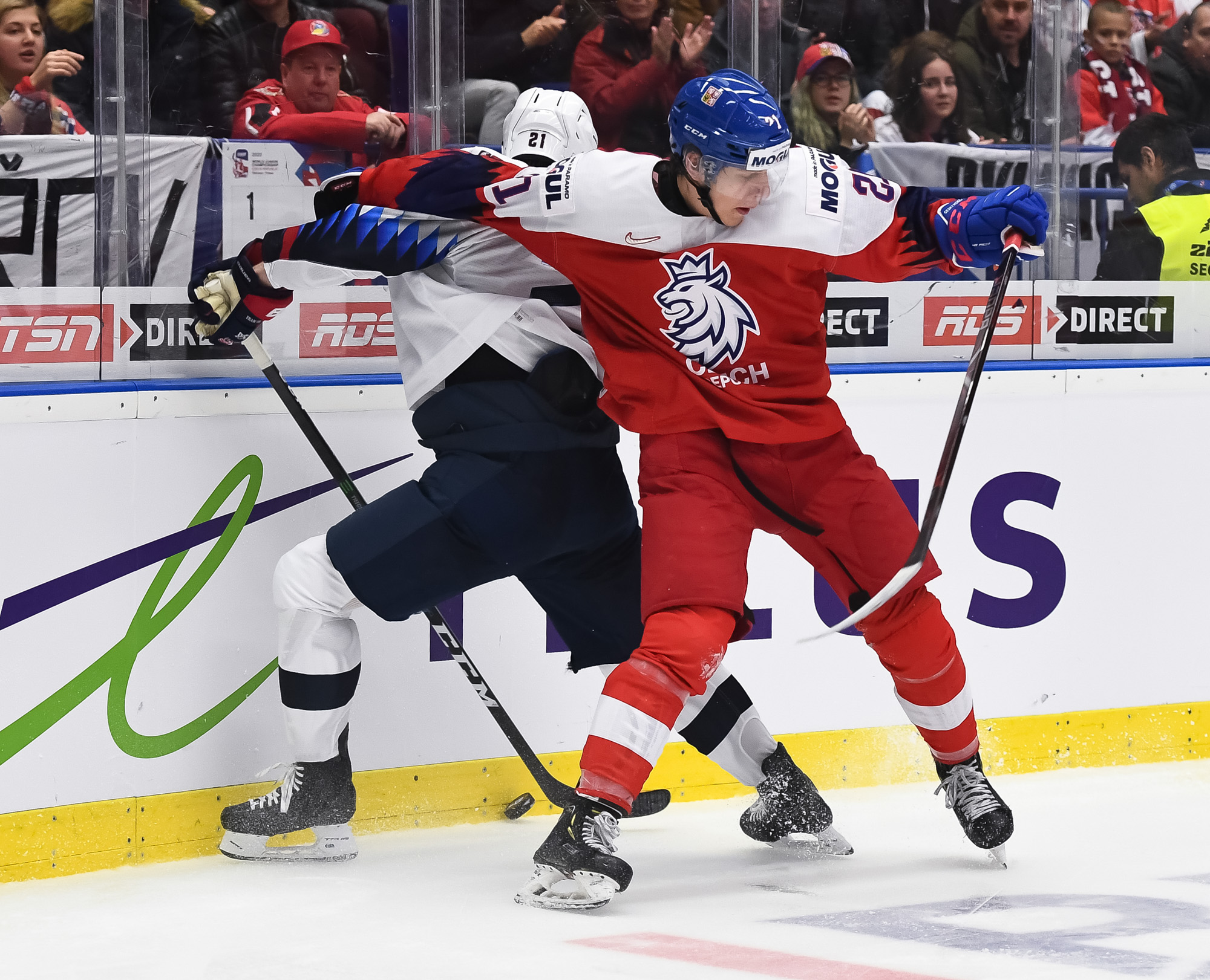 Cole Caufield scored his first goal of the tournament at 3:14 of overtime to give the Americans a 4-3 win over the Czechs. The win leaves the Czechs' playoff hopes in doubt until tomorrow's games.