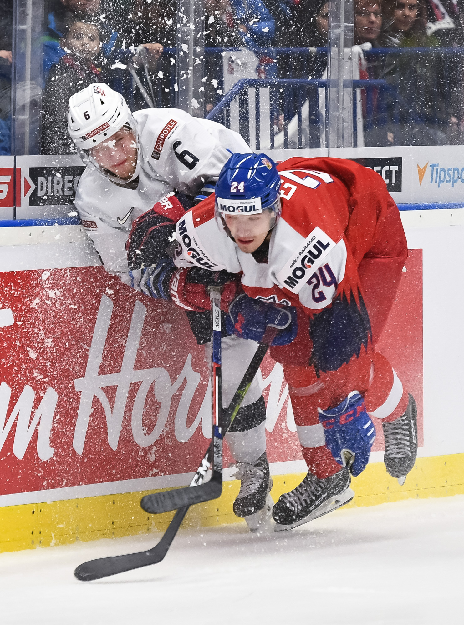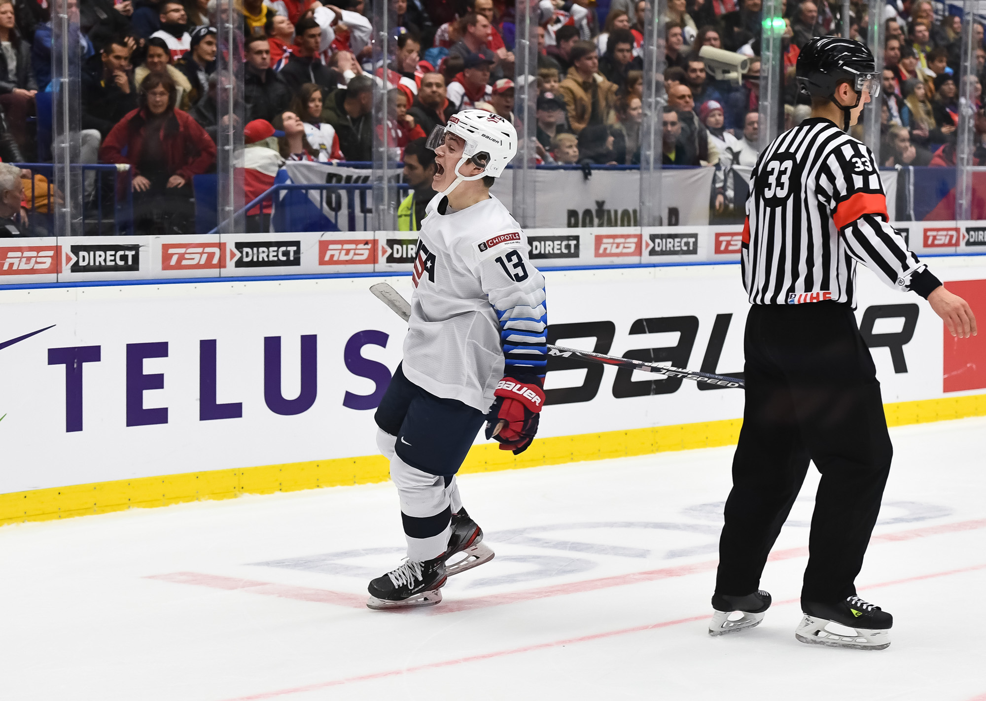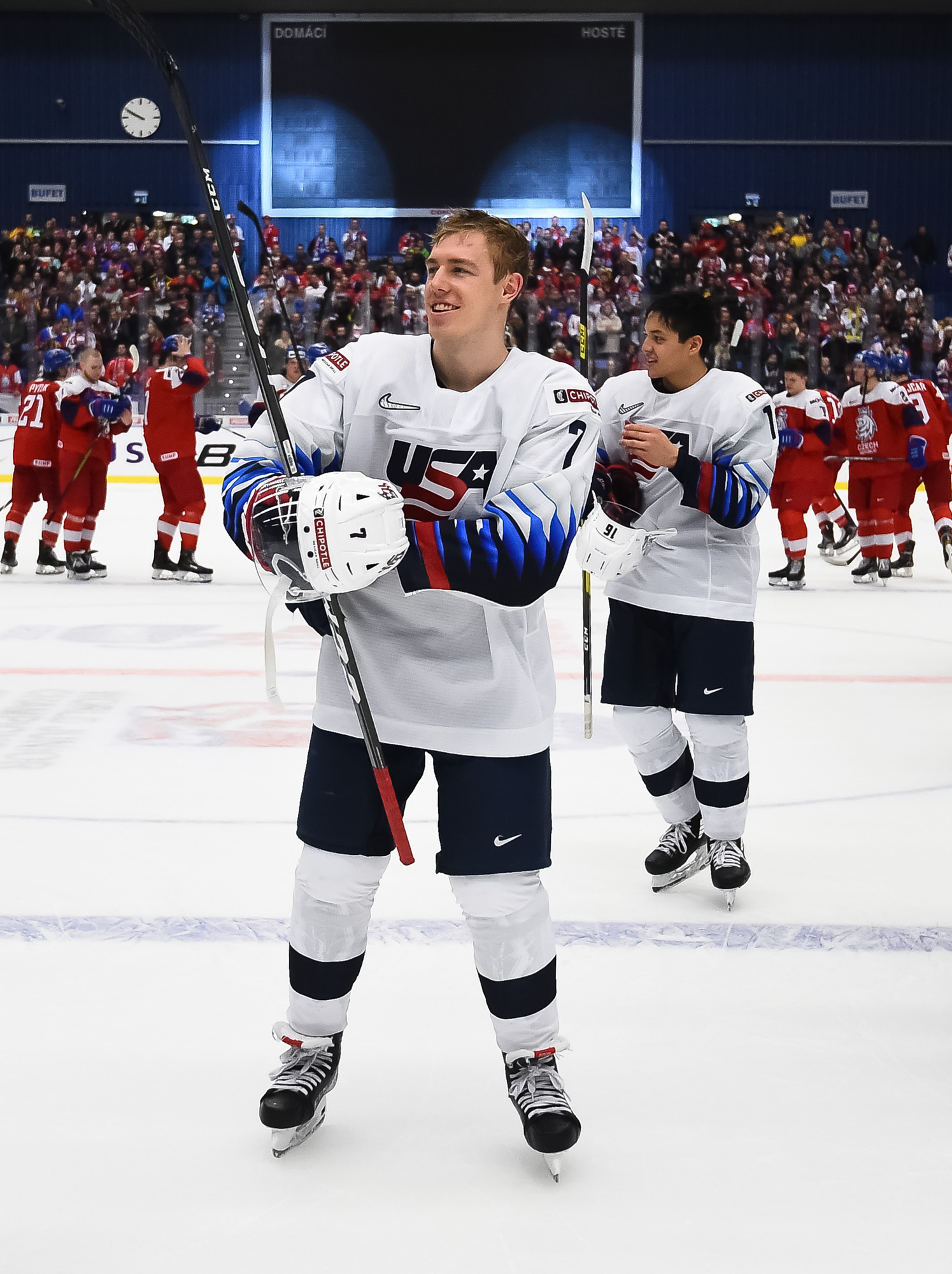 Cole Caufield scored his first goal of the tournament at 3:14 of overtime to give the Americans a 4-3 win over the Czechs. The win leaves the Czechs' playoff hopes in doubt until tomorrow's games.